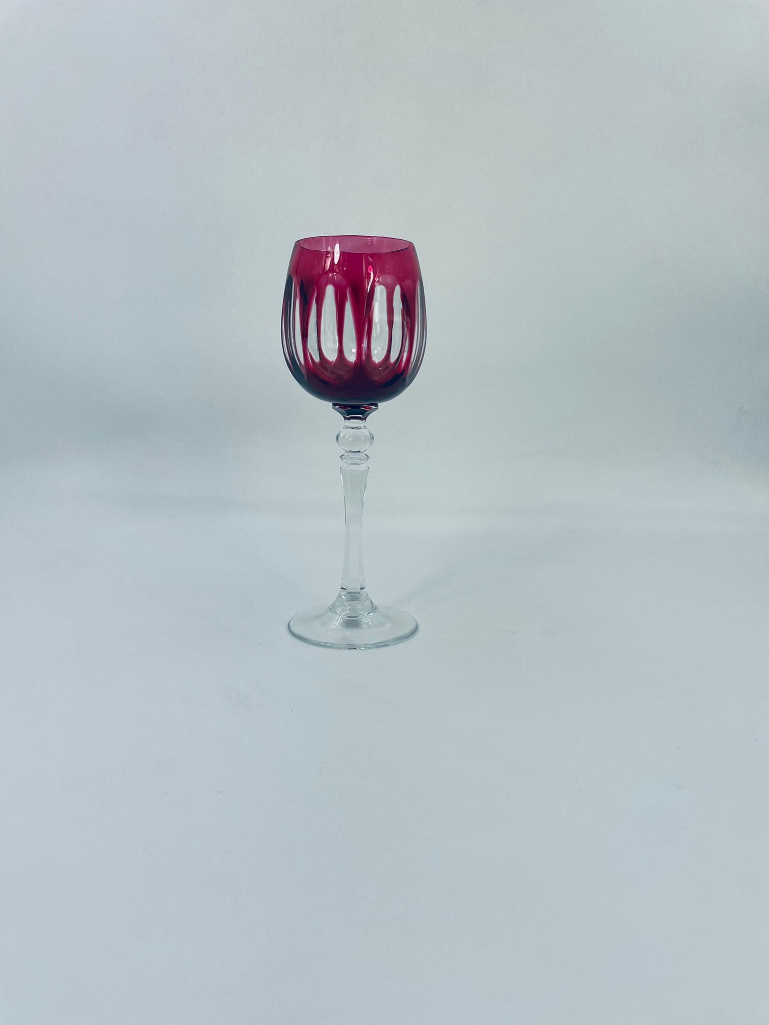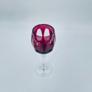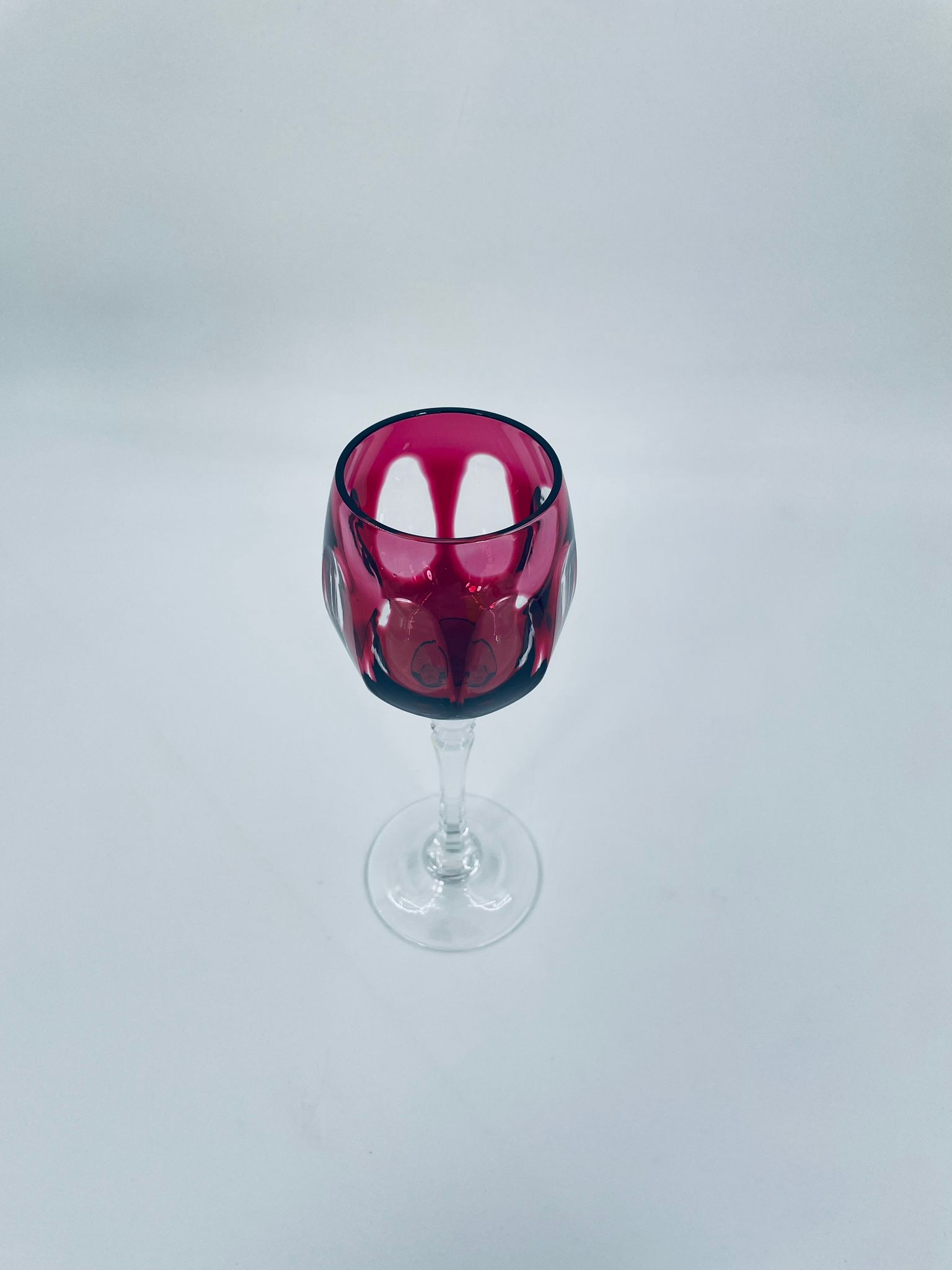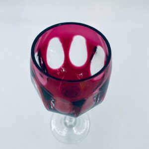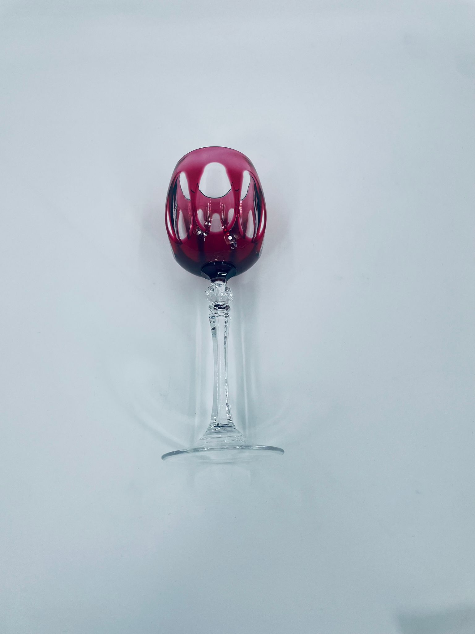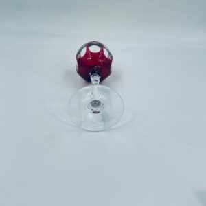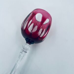 Kieliszek do wina renomowanej firmy WMF, wykonany z wysokiej jakości szkła kryształowego dwuwarstwowego, barwiony na kolor czerwony. Kieliszek ręcznie formowany, fasetowany i szlifowany.