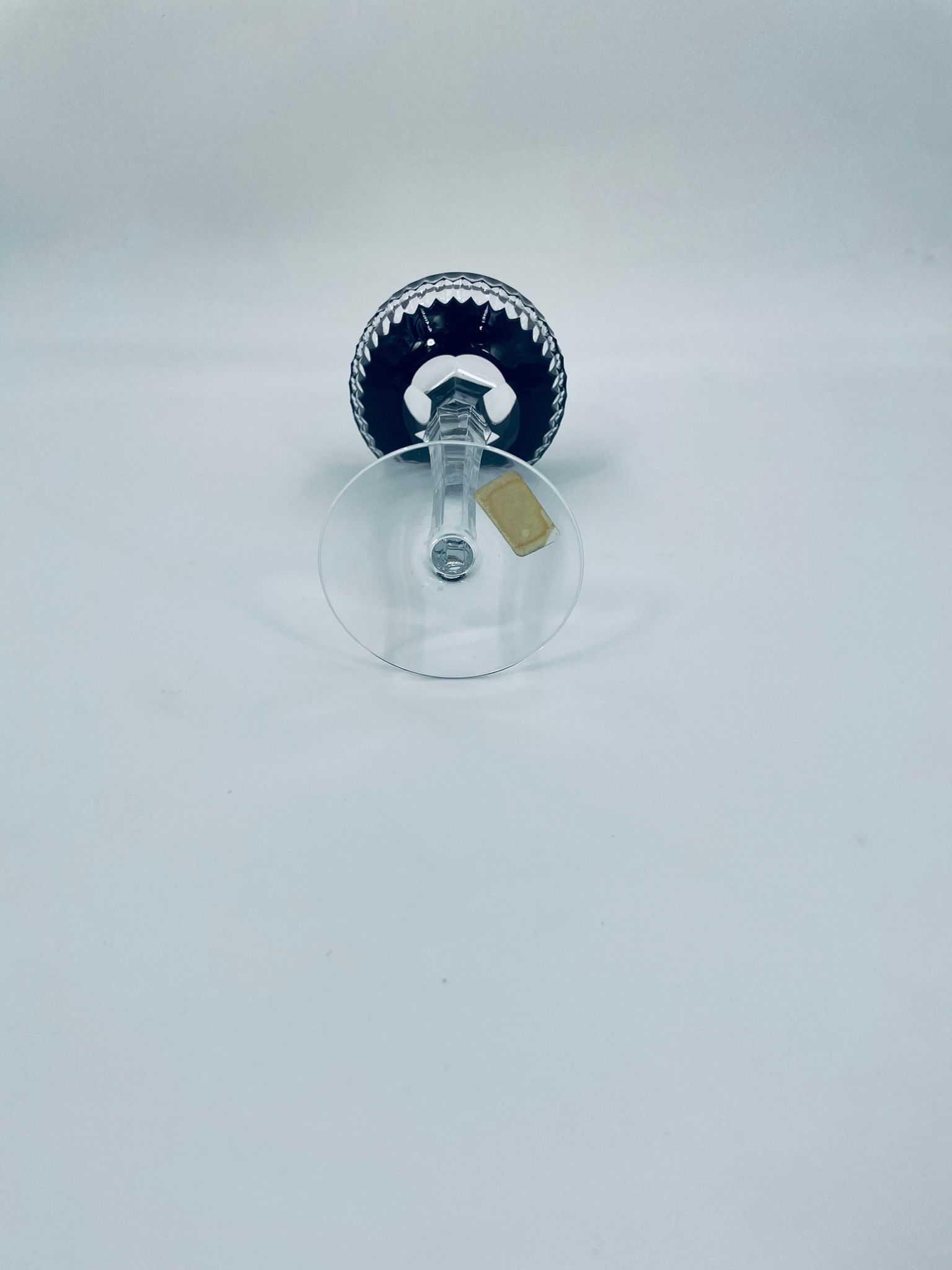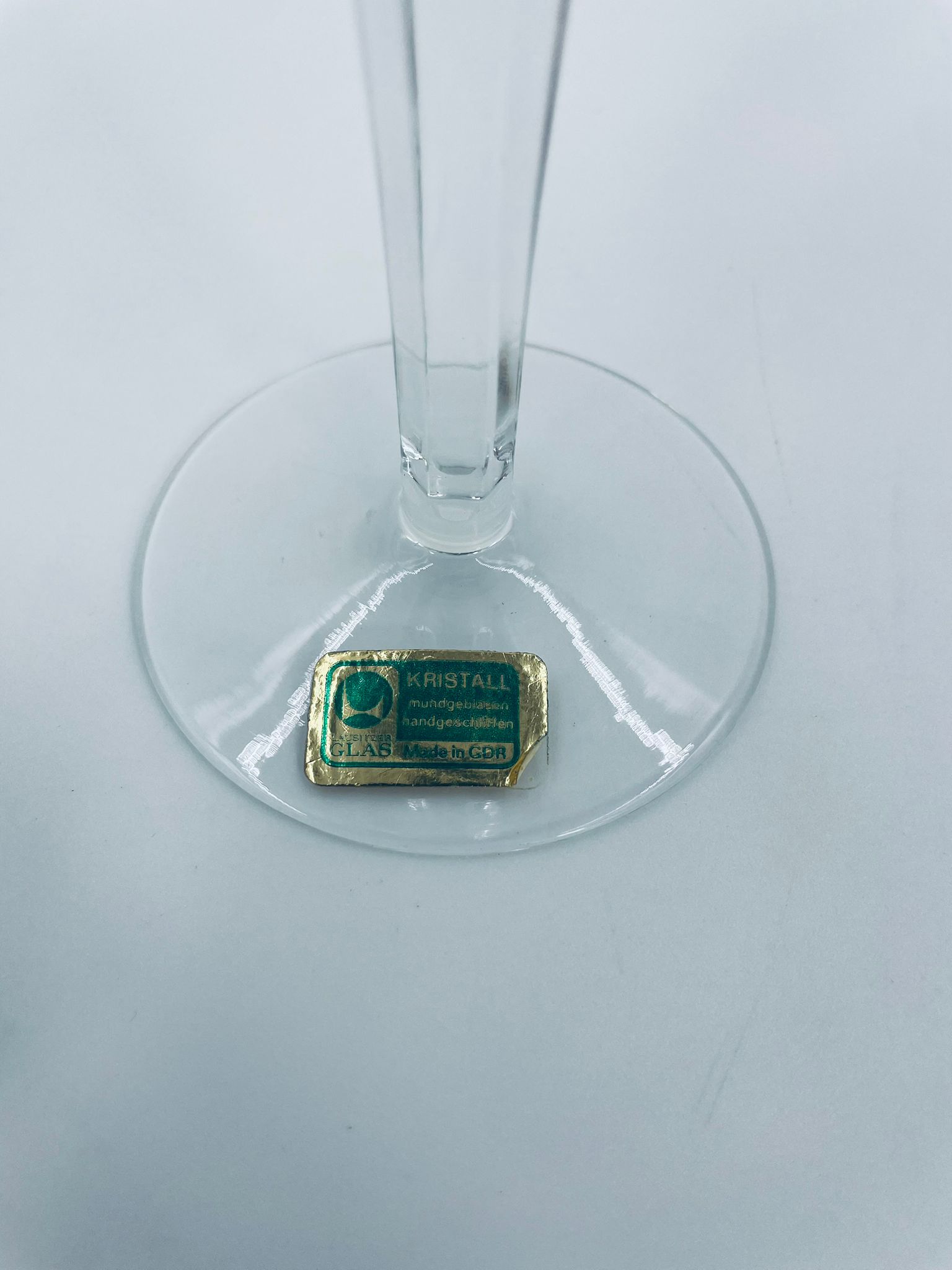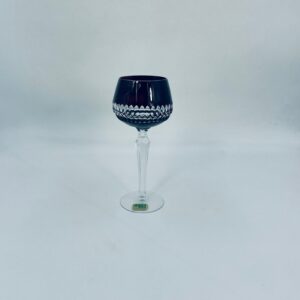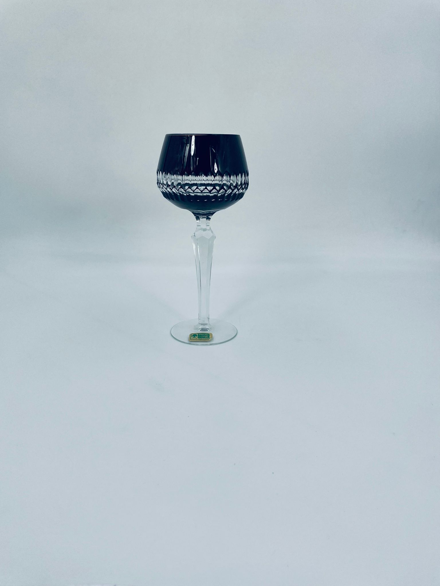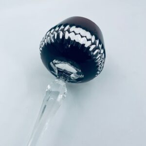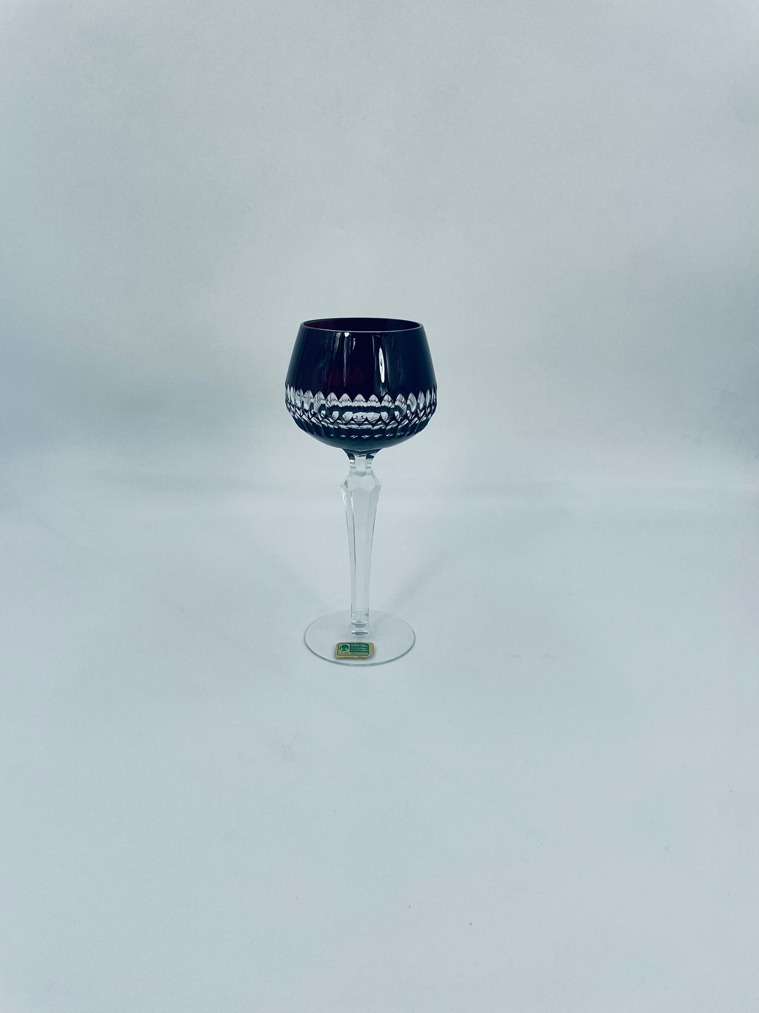 Kieliszek do wina marki Lausitzer Glas GDR, wykonany z wysokiej jakości szkła kryształowego barwionego na kolor rubinowej czerwieni. Czaszą posiada charakterystyczne, precyzyjne szlify, nóżka przezroczysta, fasetowana.