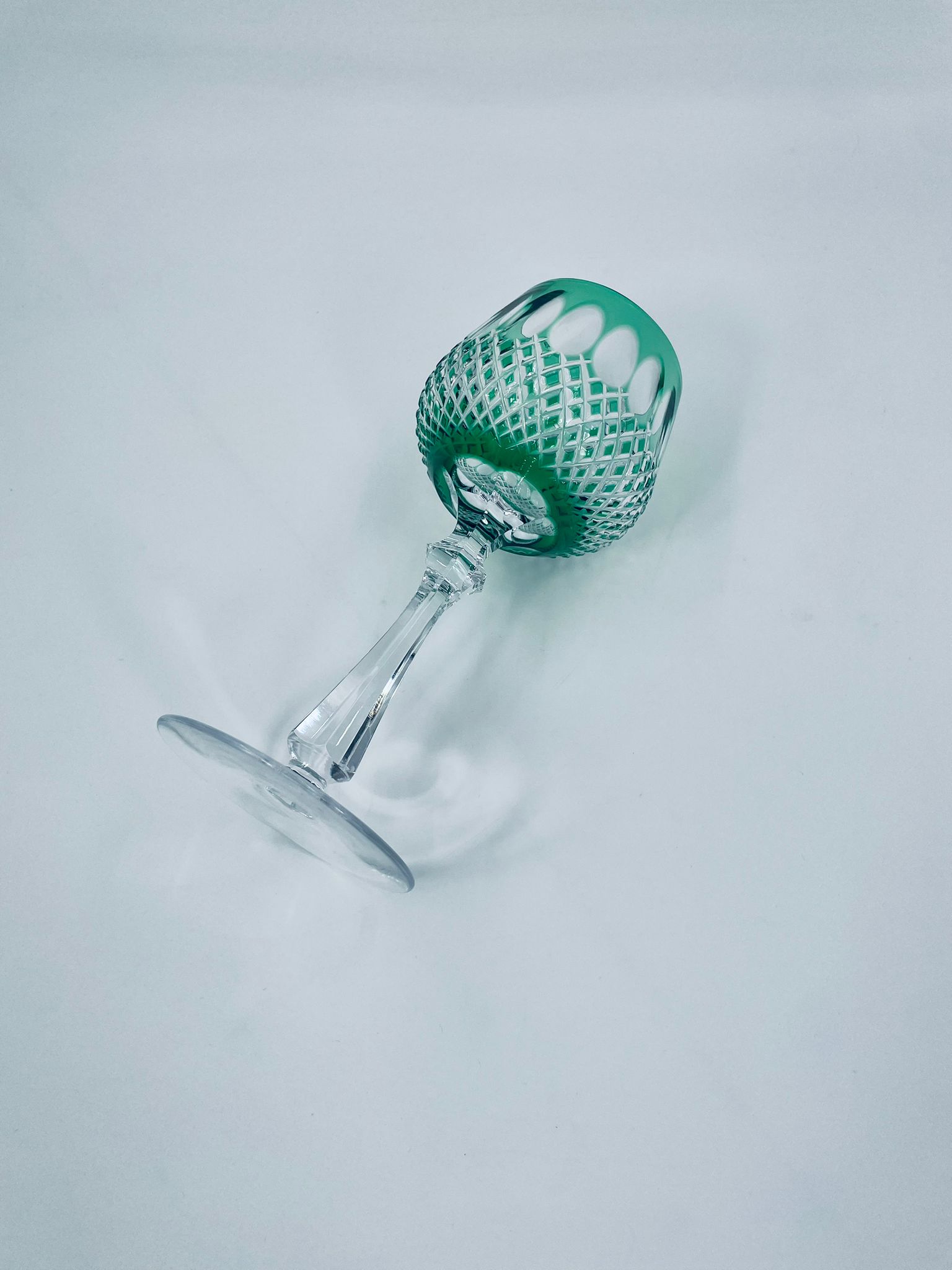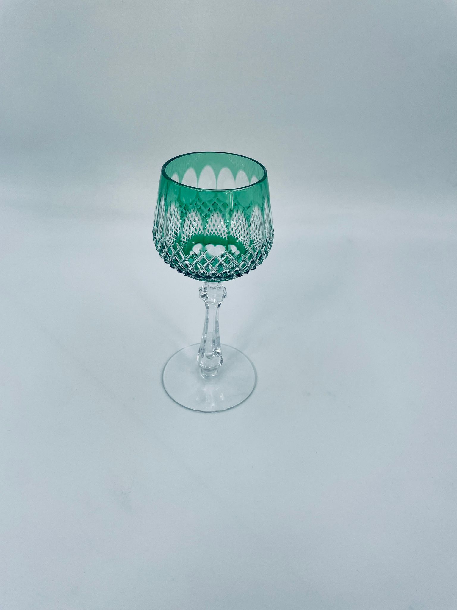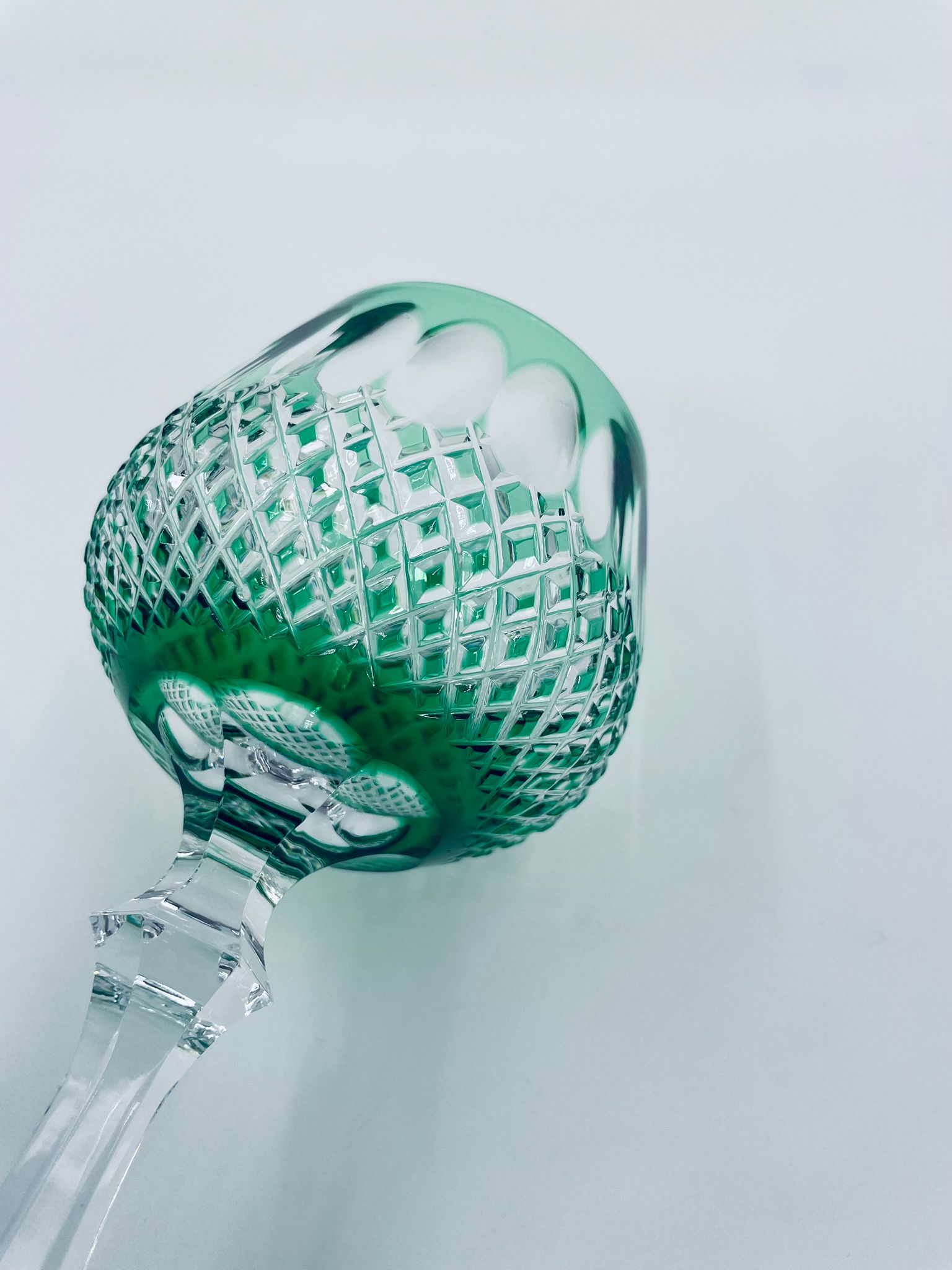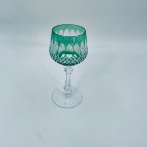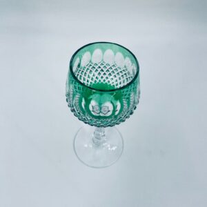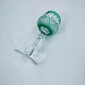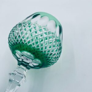 Kieliszek do wina typu Römer Uberfang Bleikristall , wykonany z wysokiej jakości szkła kryształowego ołowiowego. Charakteryzuje się zielonym kolorem i ciekawym szlifowanym wzorem.