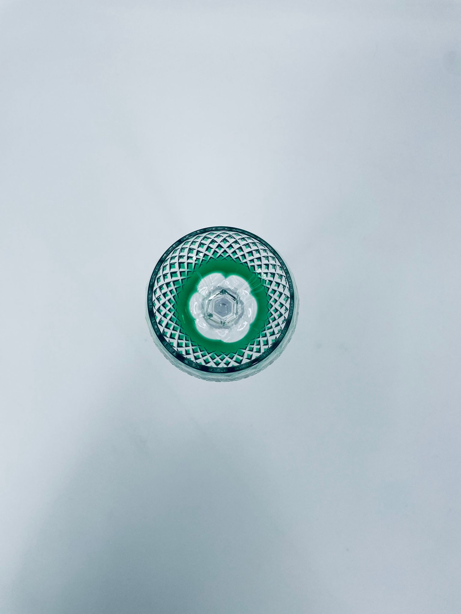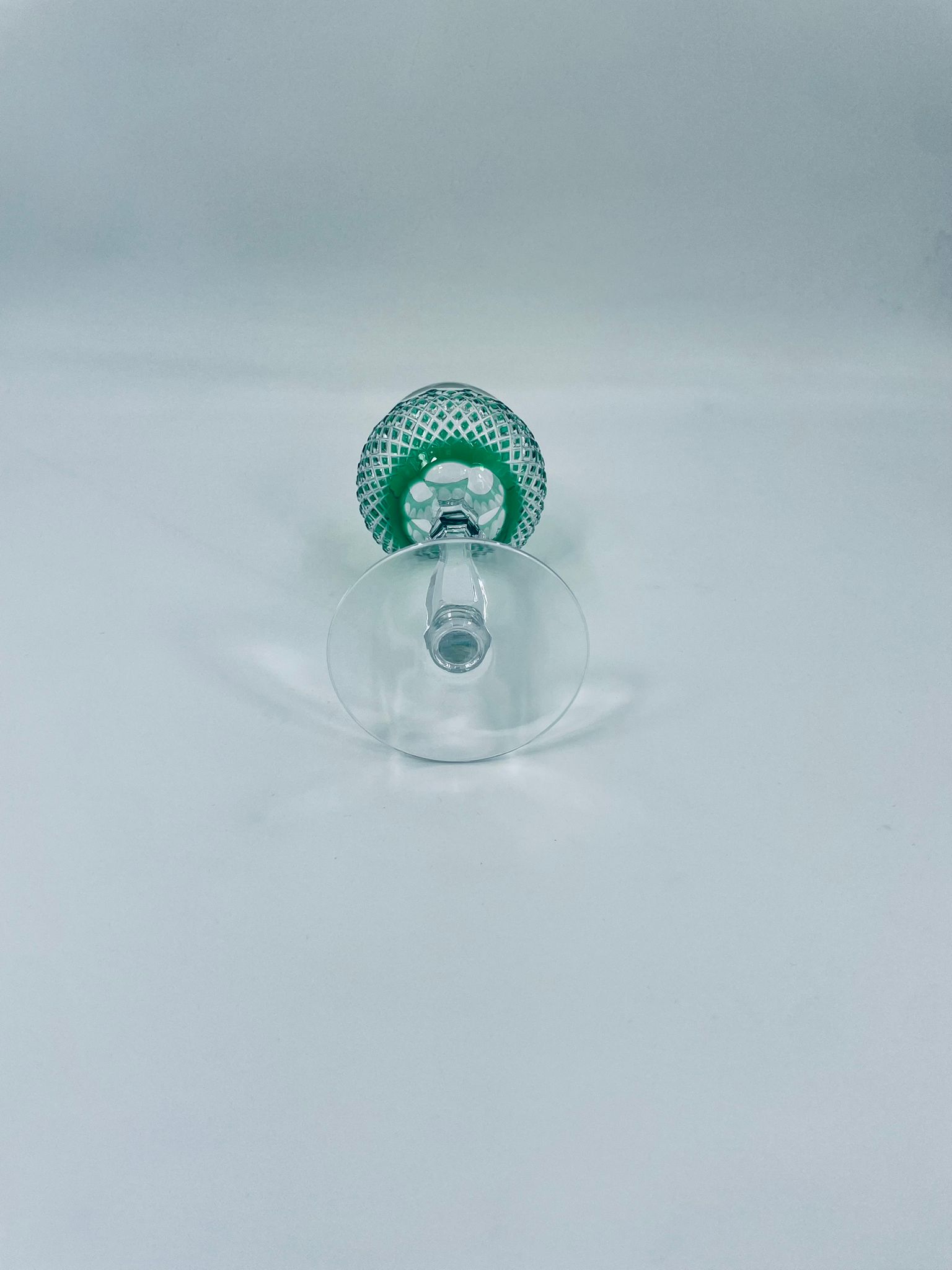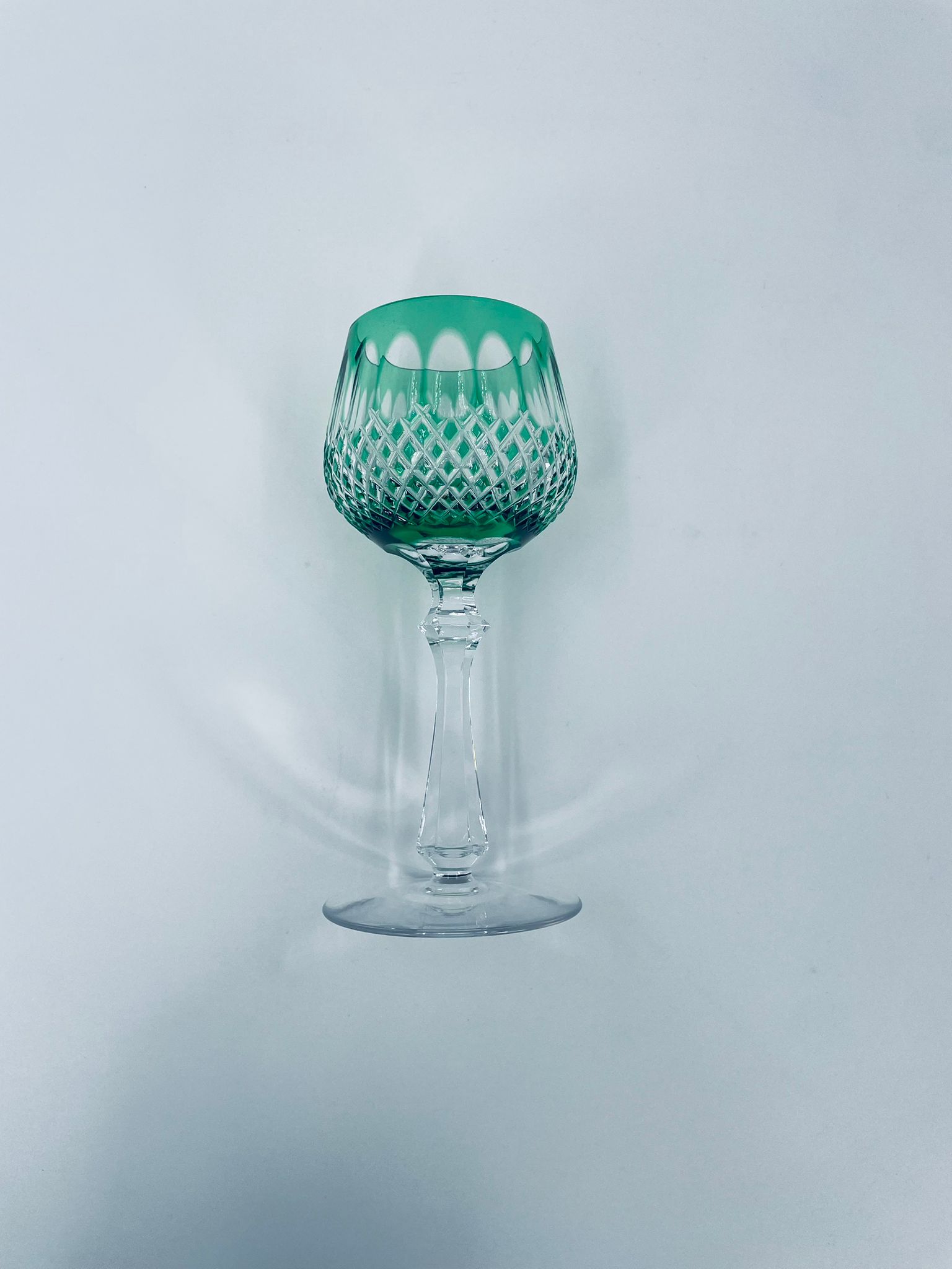 Kieliszek do wina typu Römer Uberfang Bleikristall , wykonany z wysokiej jakości szkła kryształowego ołowiowego. Charakteryzuje się zielonym kolorem i ciekawym szlifowanym wzorem.
