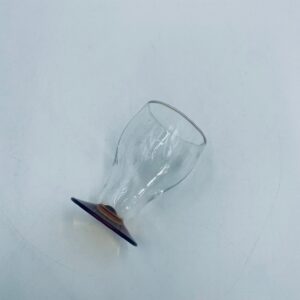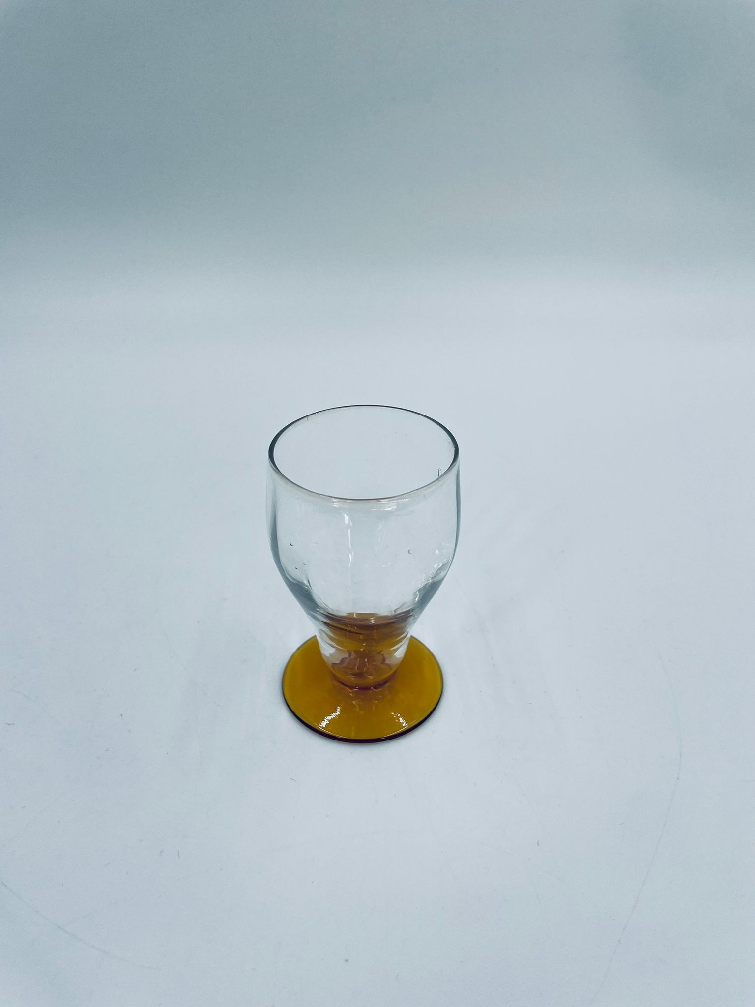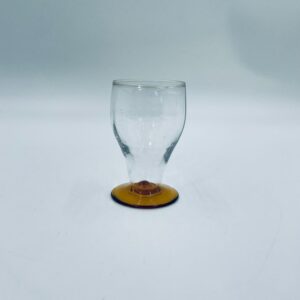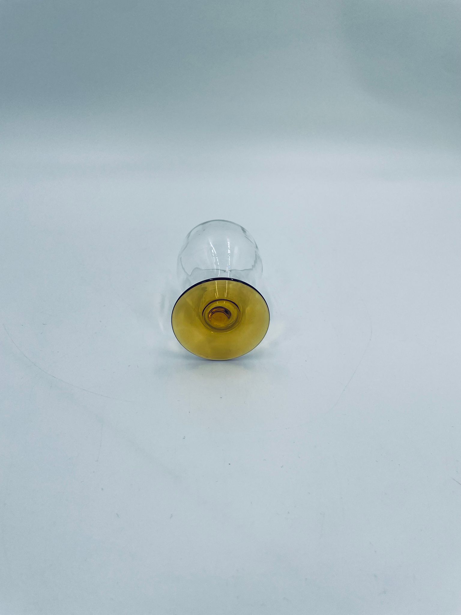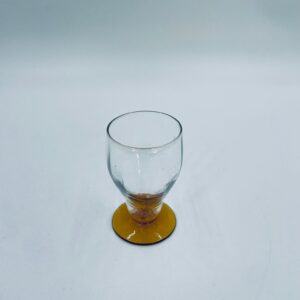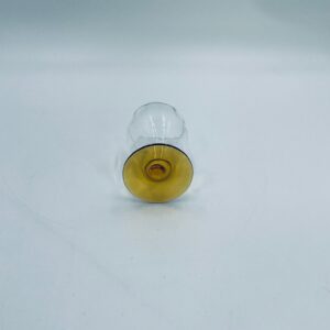 Kieliszek do wódki, nalewki w stylu Vintage z czasów PRL-u , wykonany z wysokiej jakości szkła kryształowego. Kieliszek przezroczysty z wypukłym wzorem na czaszy oraz z bursztynową podstawą.