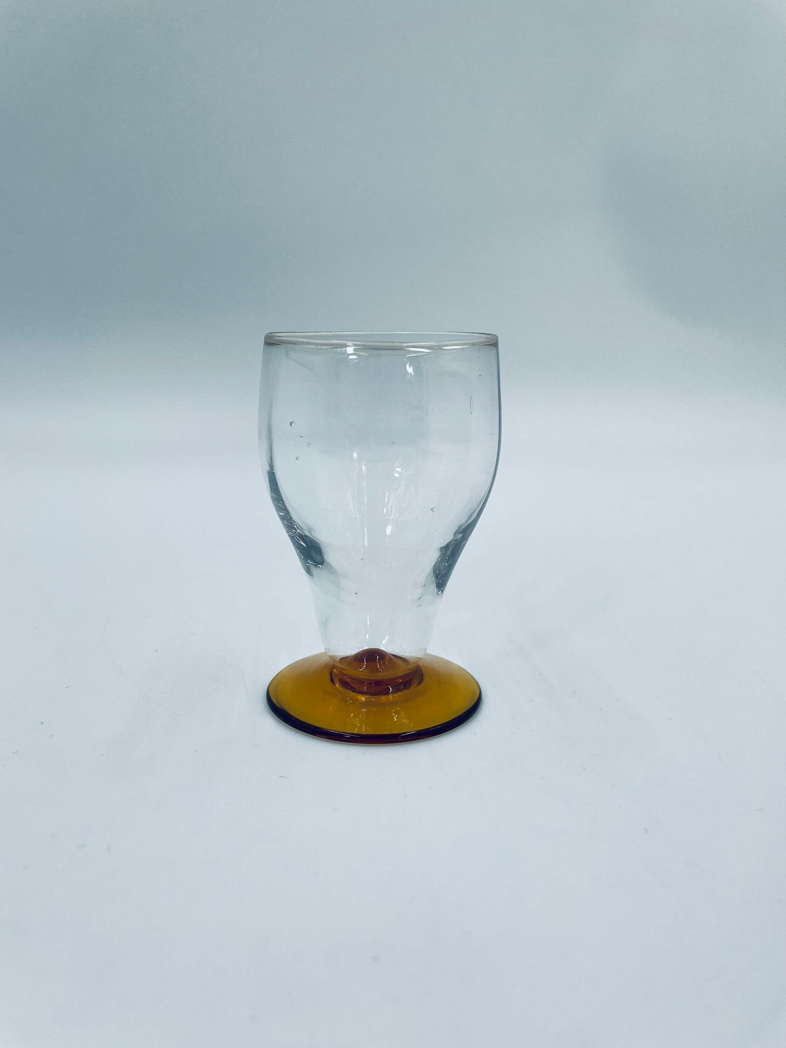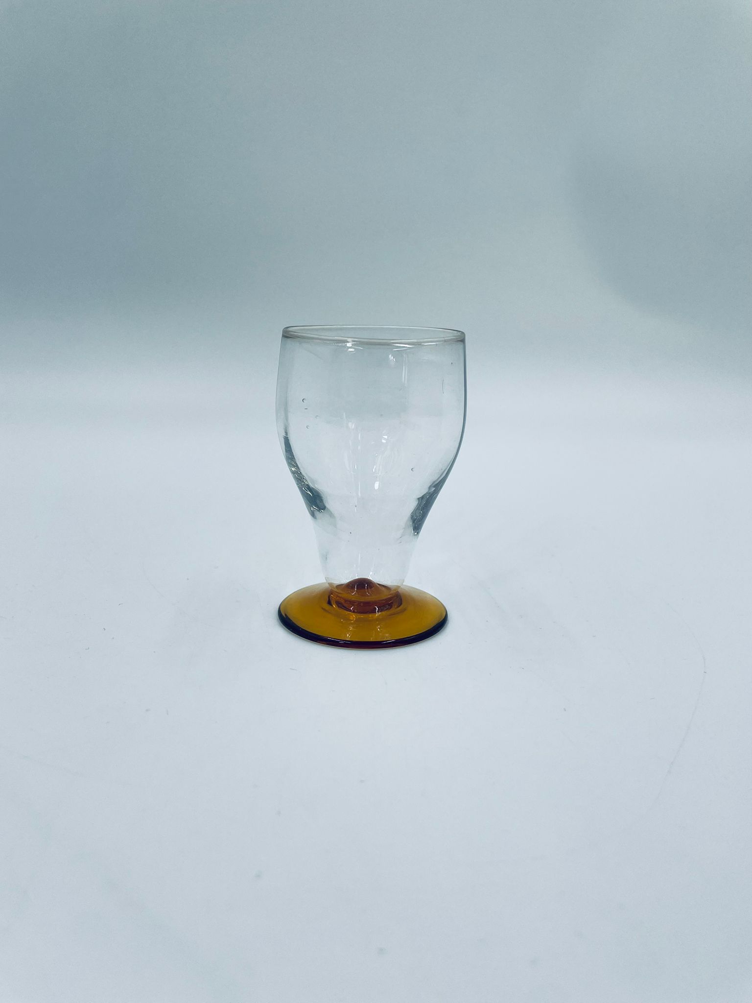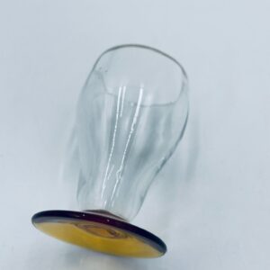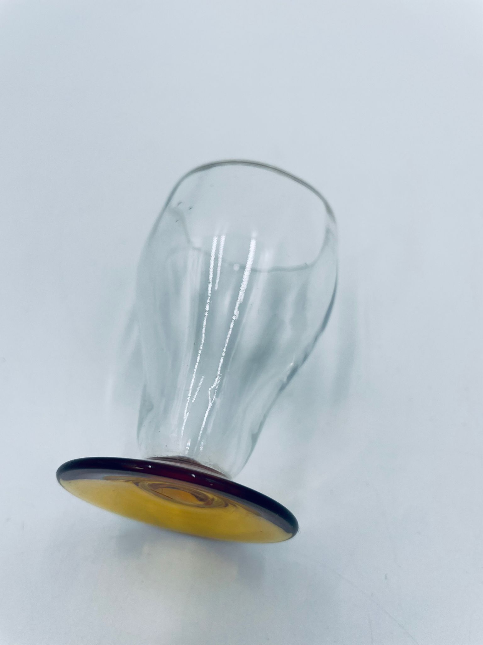 Kieliszek do wódki, nalewki w stylu Vintage z czasów PRL-u , wykonany z wysokiej jakości szkła kryształowego. Kieliszek przezroczysty z wypukłym wzorem na czaszy oraz z bursztynową podstawą.