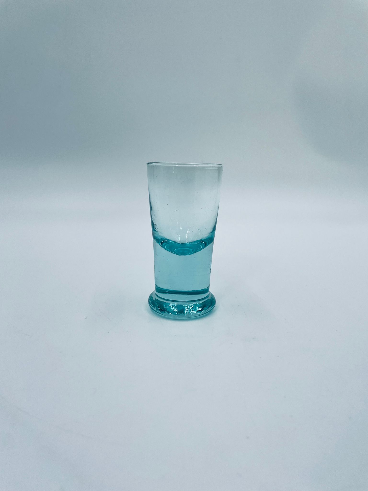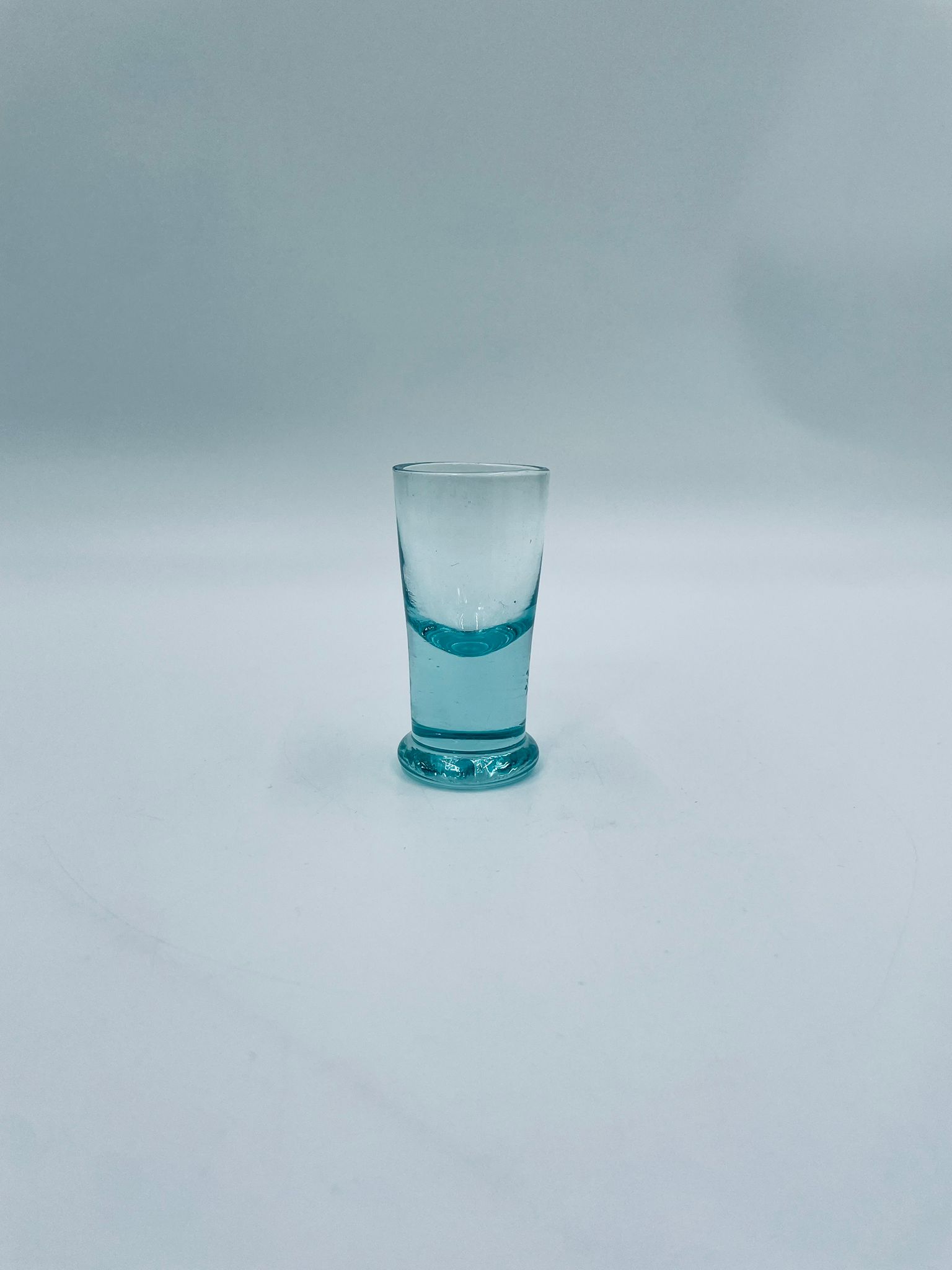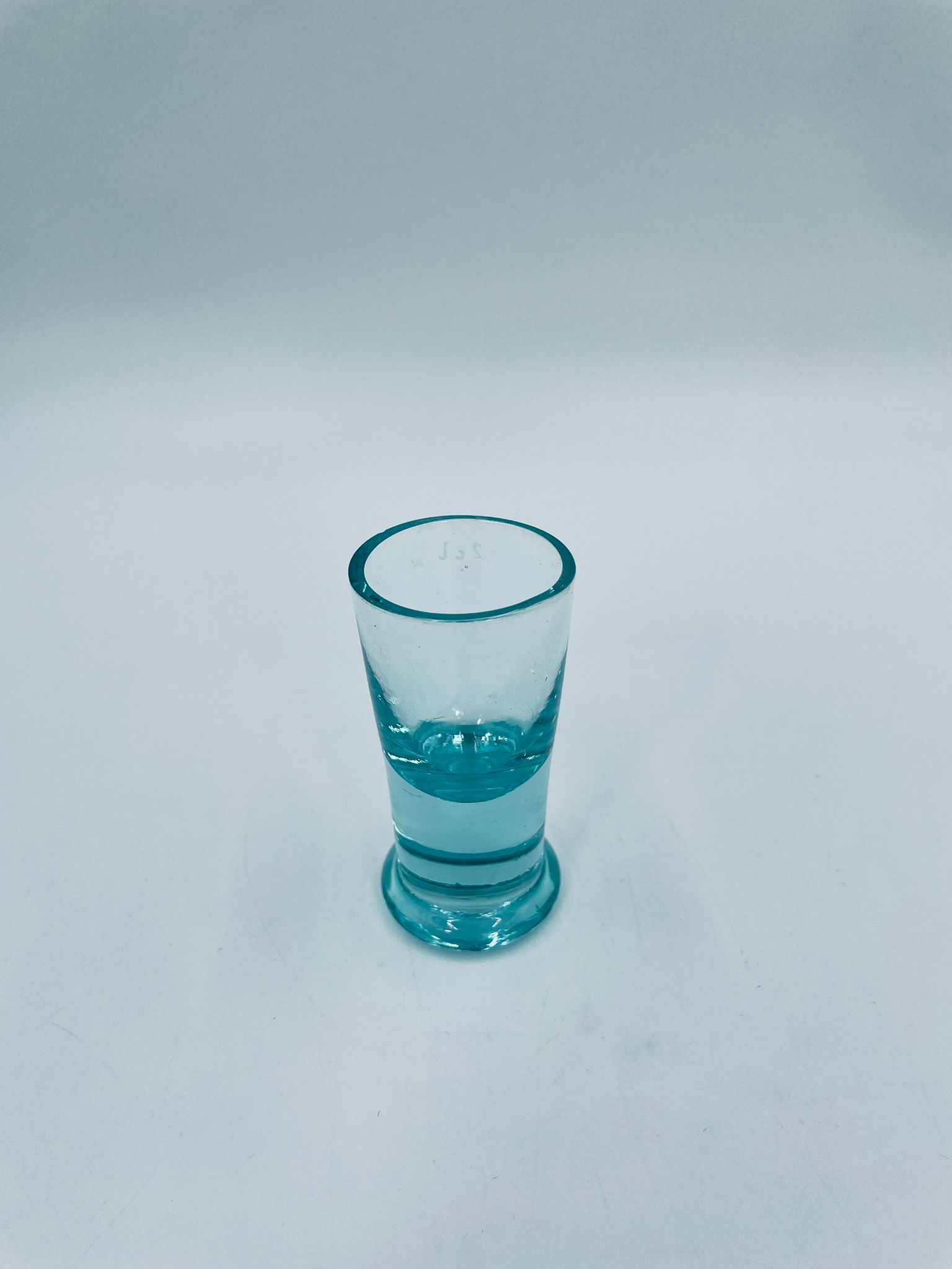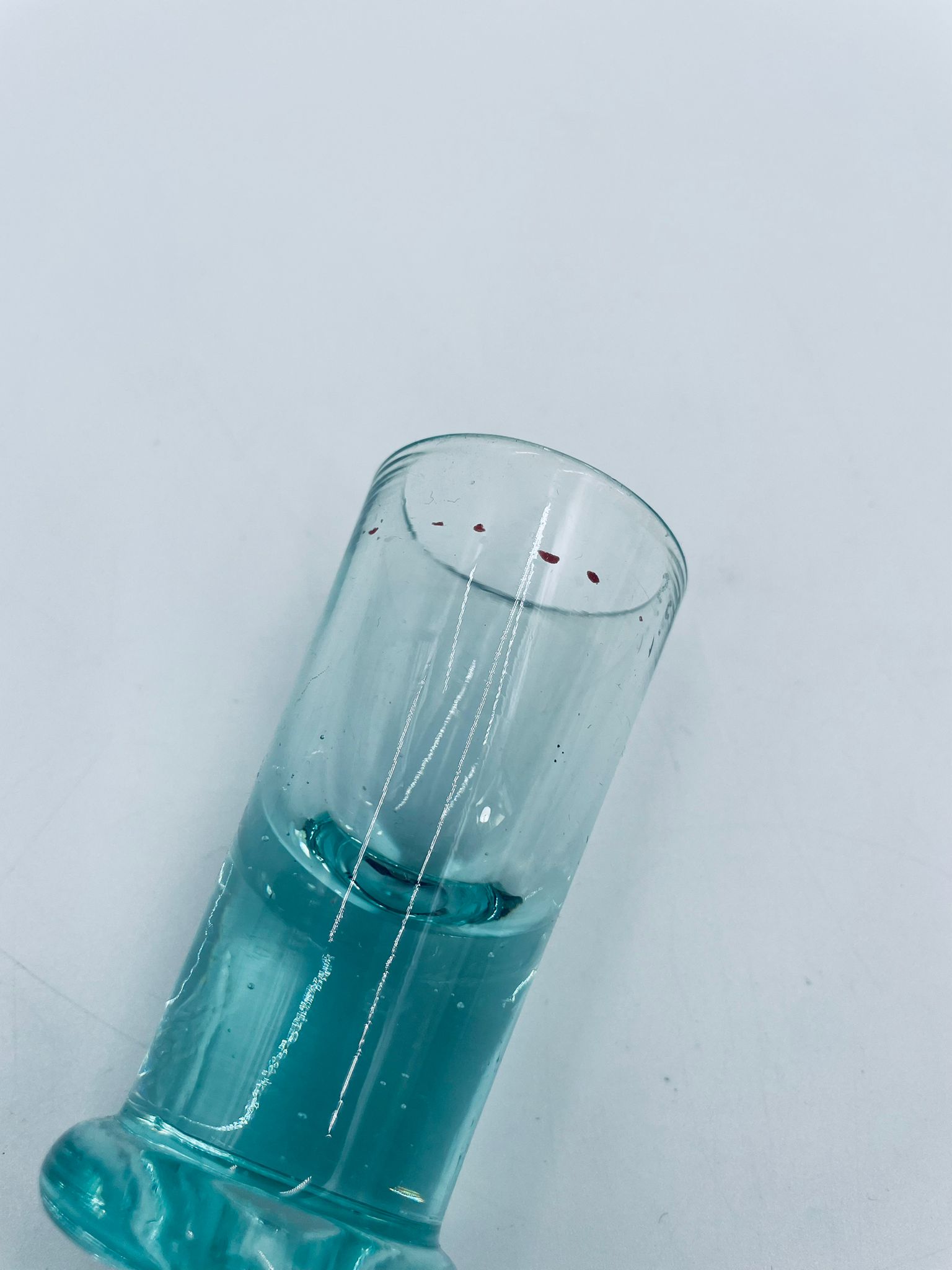 Kieliszek do wódki w stylu Vintage wykonany z wysokiej jakości szkła. Kieliszek grubszy, solidny, przezroczysty z turkusowym kolorem. Posiada przebarwienie.