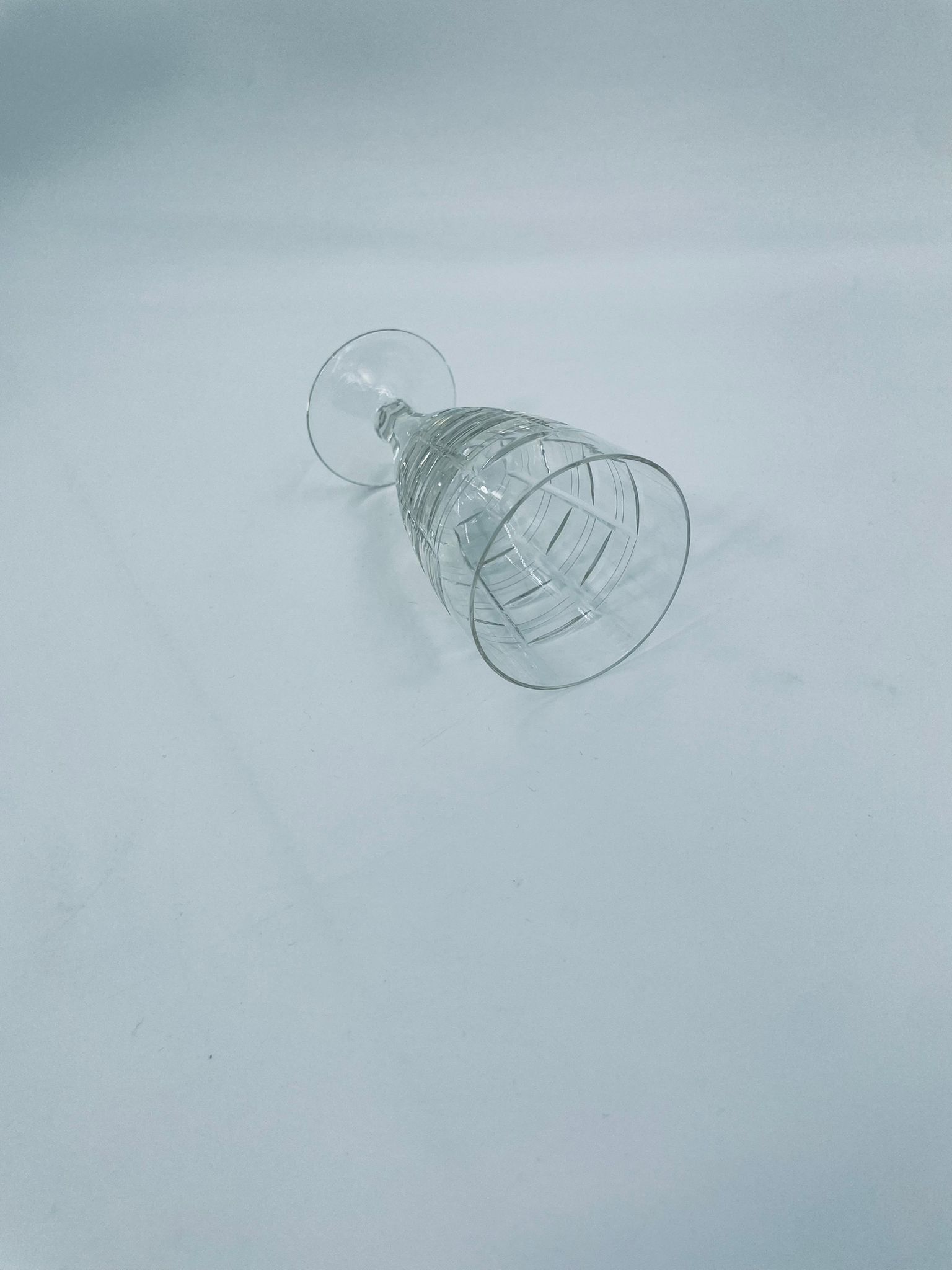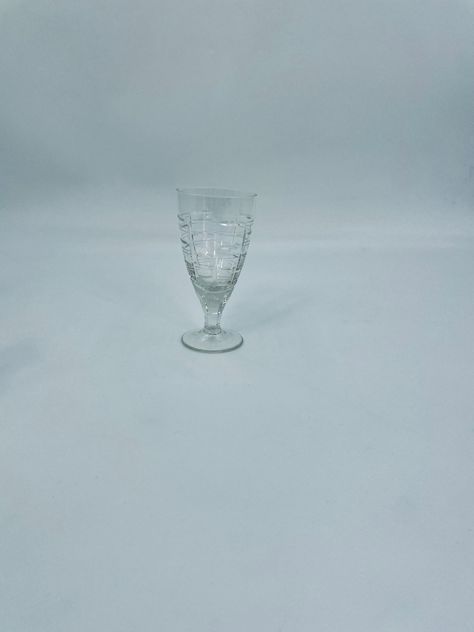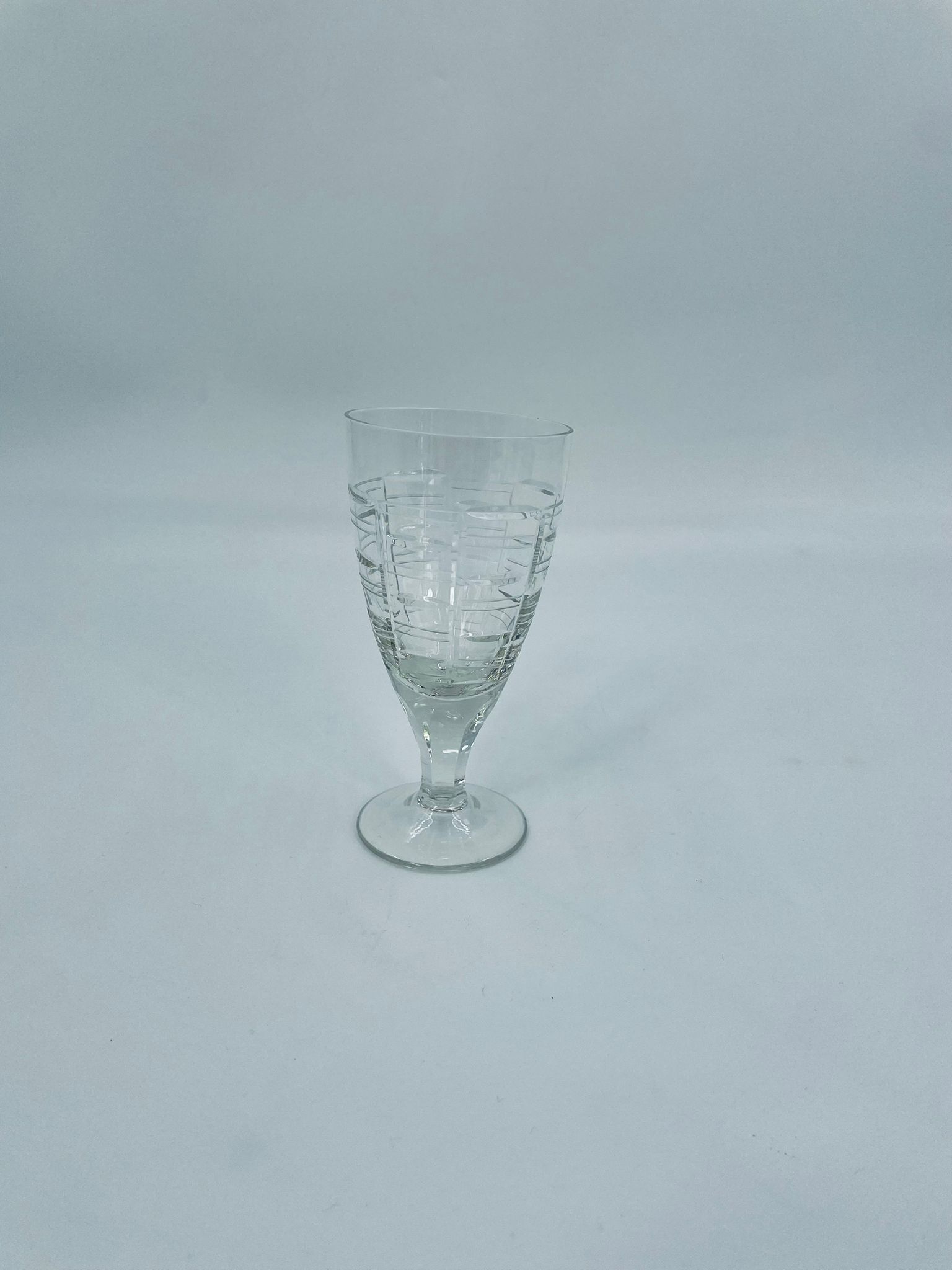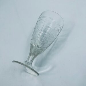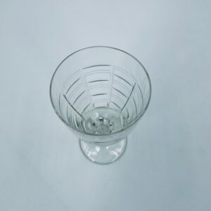 Kieliszek do wody, wina, Sirrus Clear, marki Libbey, wykonany ze szkła, przezroczysty. Charakteryzuje się ozdobnym, nowoczesnym, zebrowanym wzorem. Posiada drobne odpryski na podstawie.