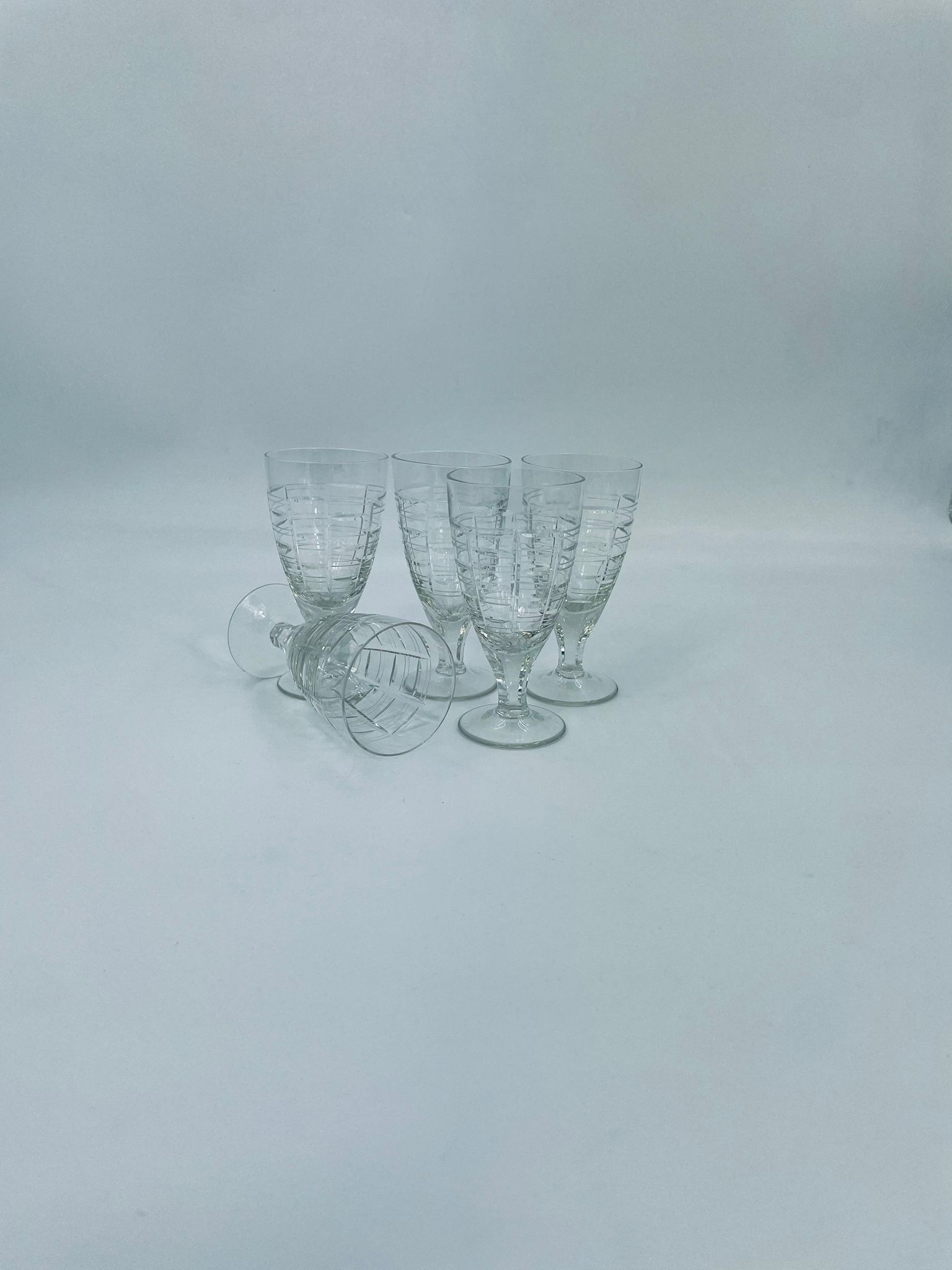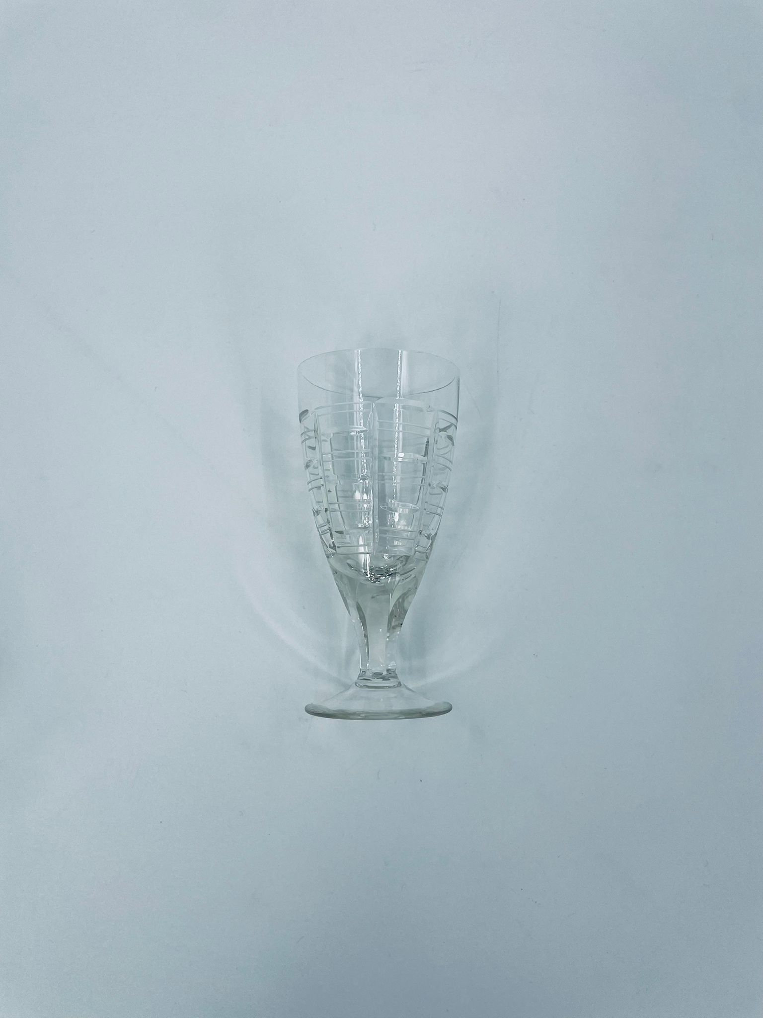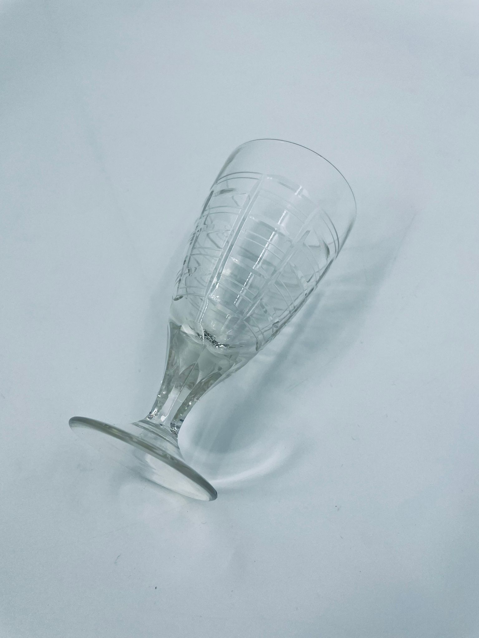 Kieliszek do wody, wina, Sirrus Clear, marki Libbey, wykonany ze szkła, przezroczysty. Charakteryzuje się ozdobnym, nowoczesnym, zebrowanym wzorem. Posiada drobne odpryski na podstawie.