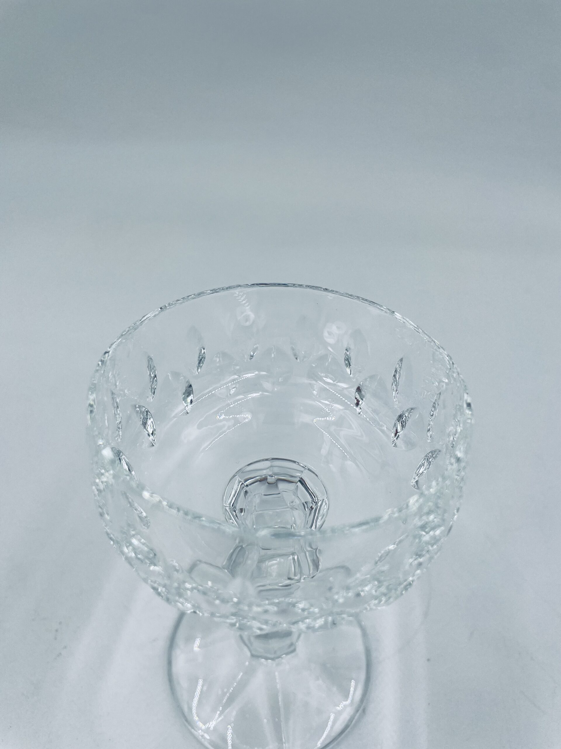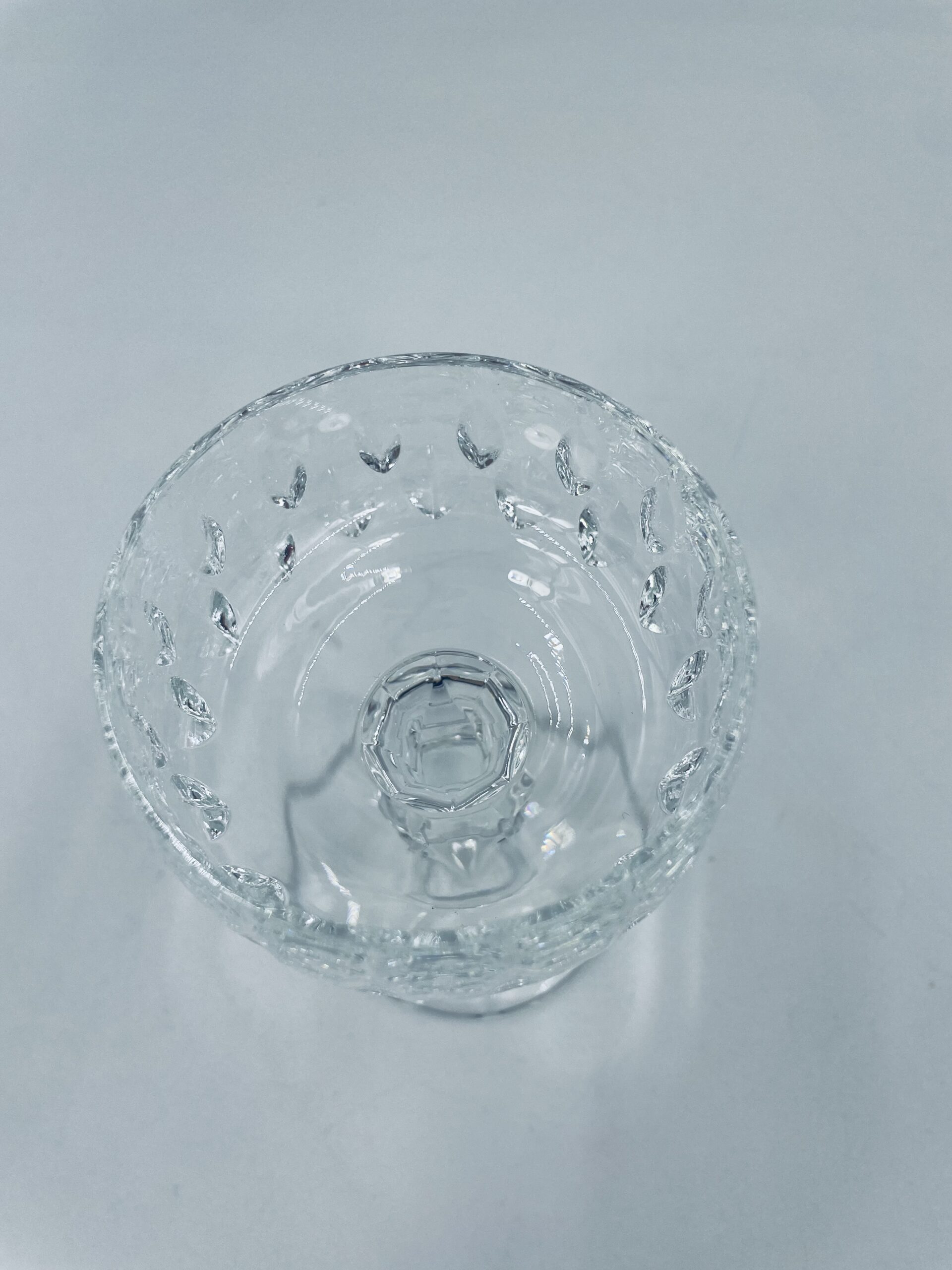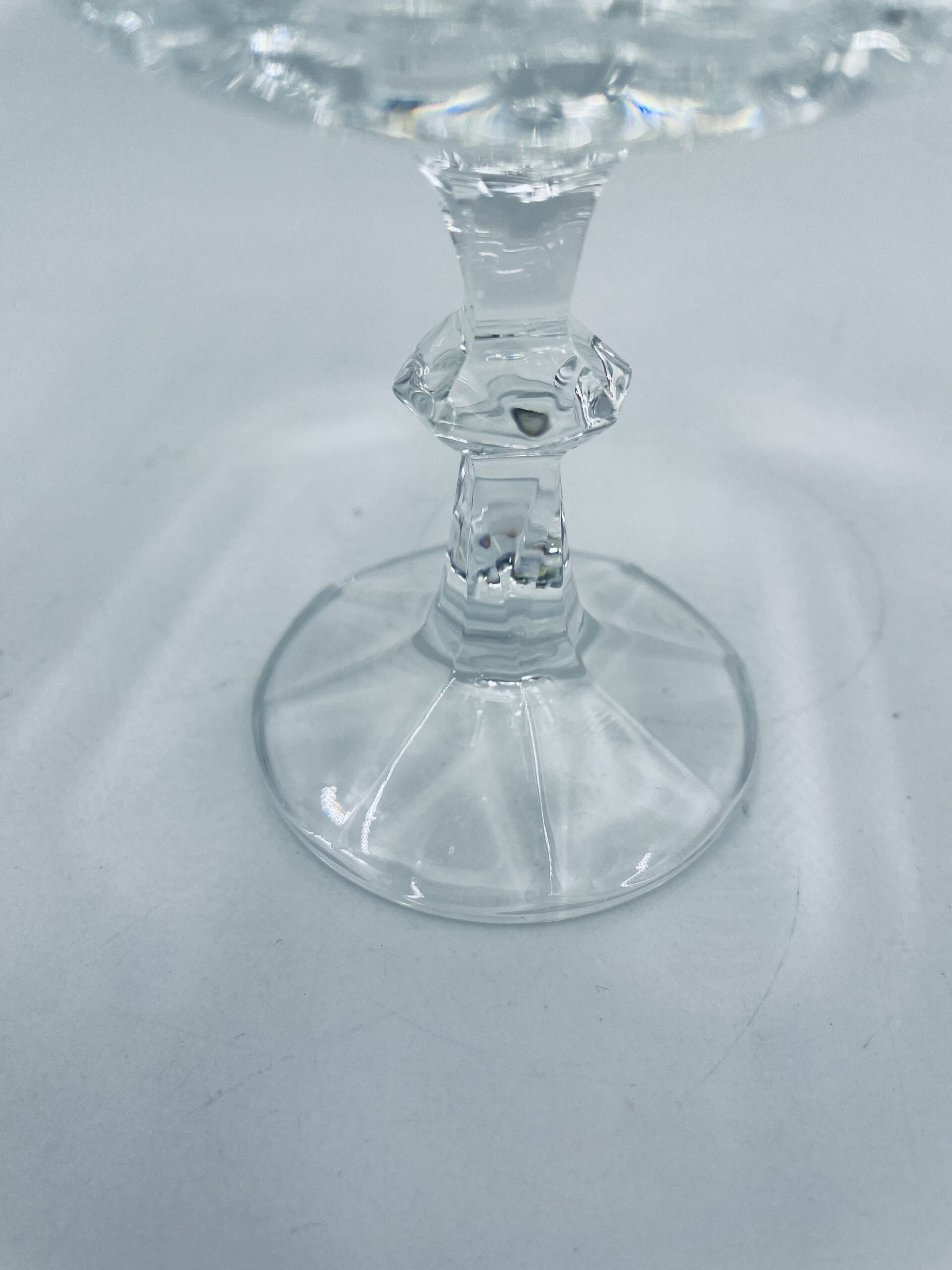 Piękny, delikatny kieliszek do nalewki, likieru, damskiej wódki kryształowy z dekoracyjnym ciętym wzorem.