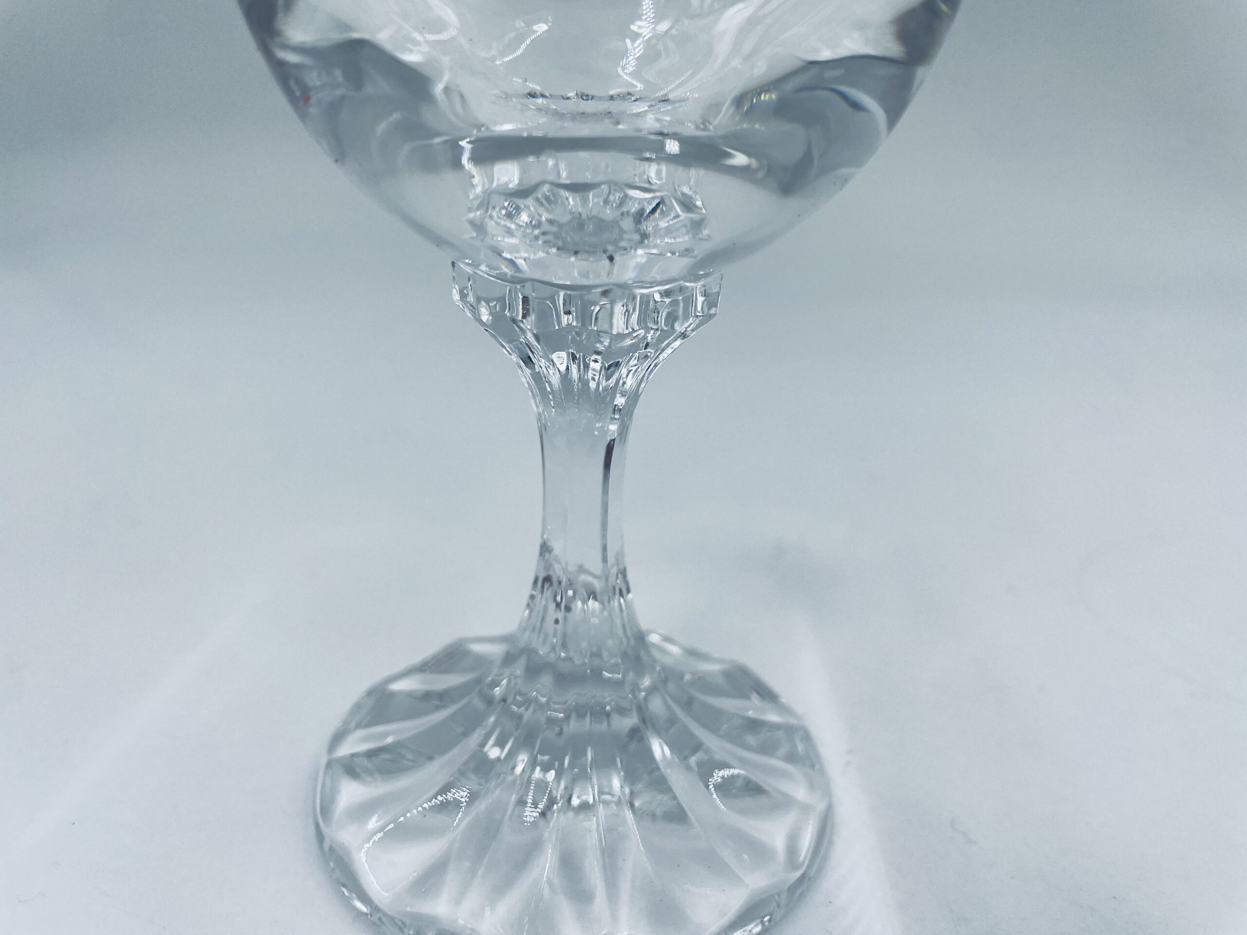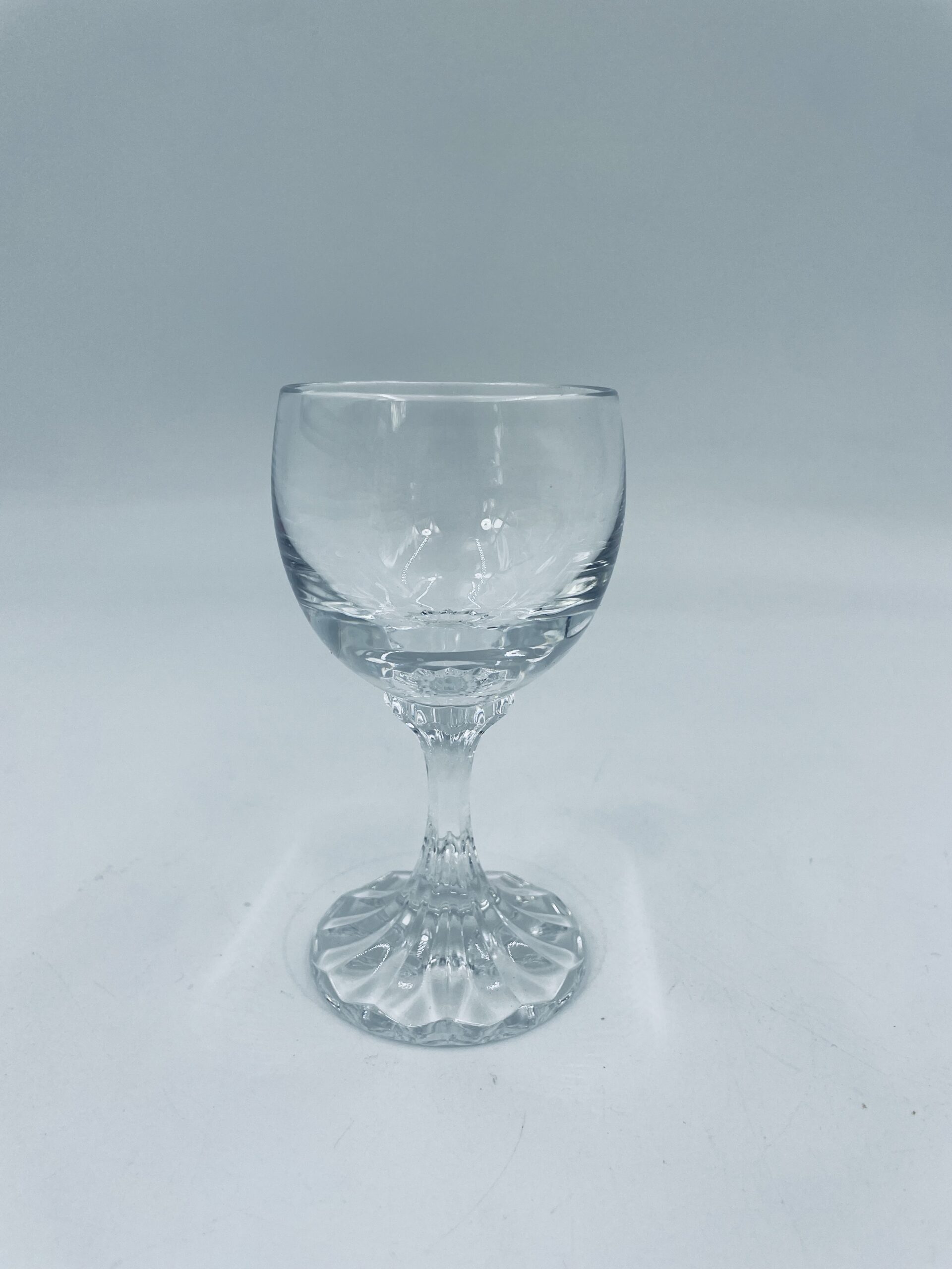 Piękny, delikatny kieliszek do nalewki, likieru, damskiej wódki kryształowy z dekoracyjnym ciętym wzorem.
