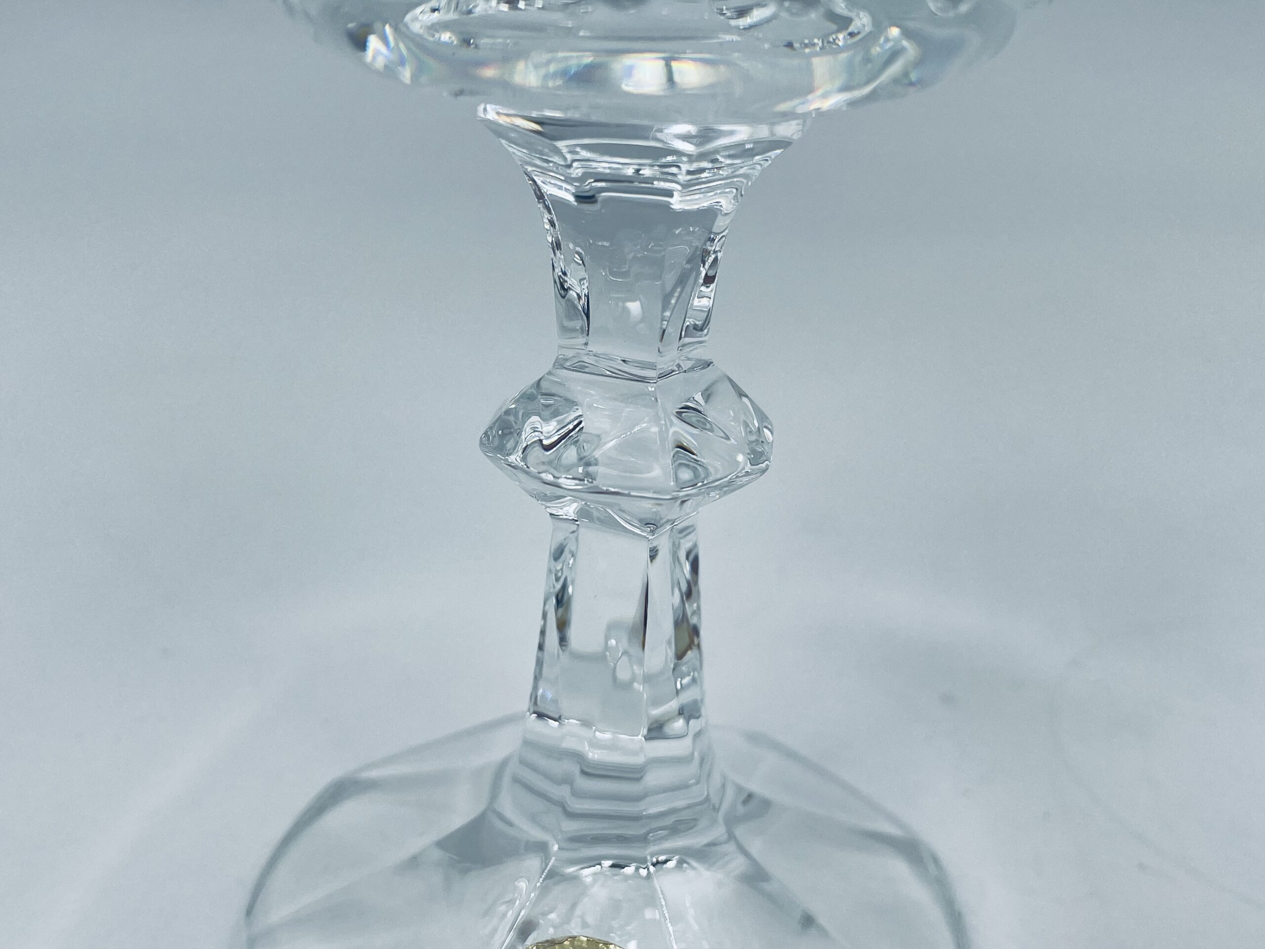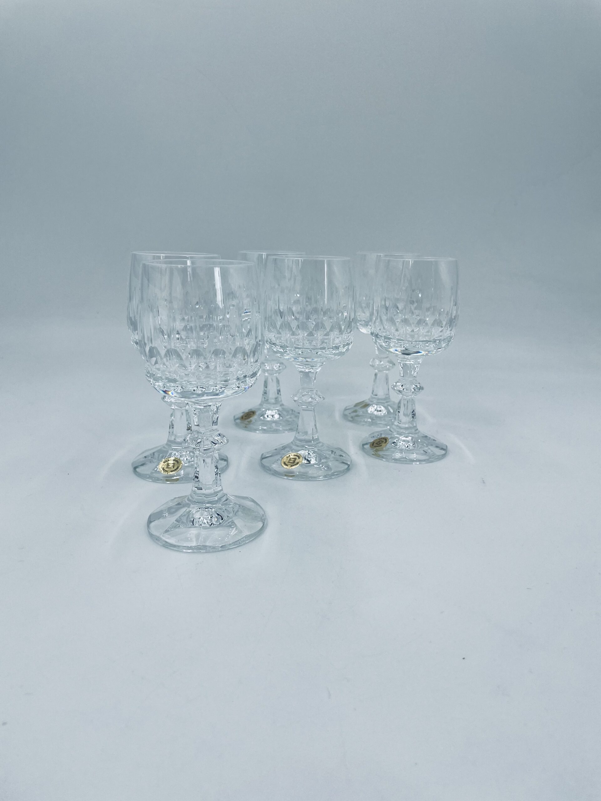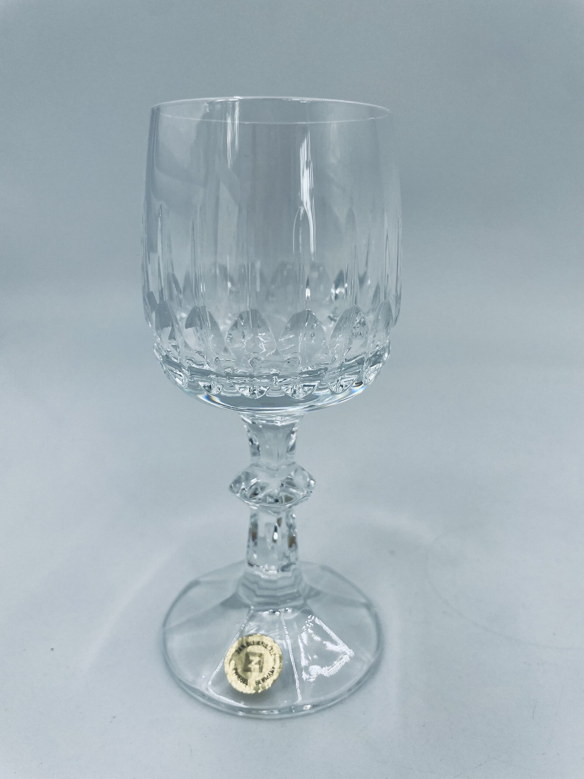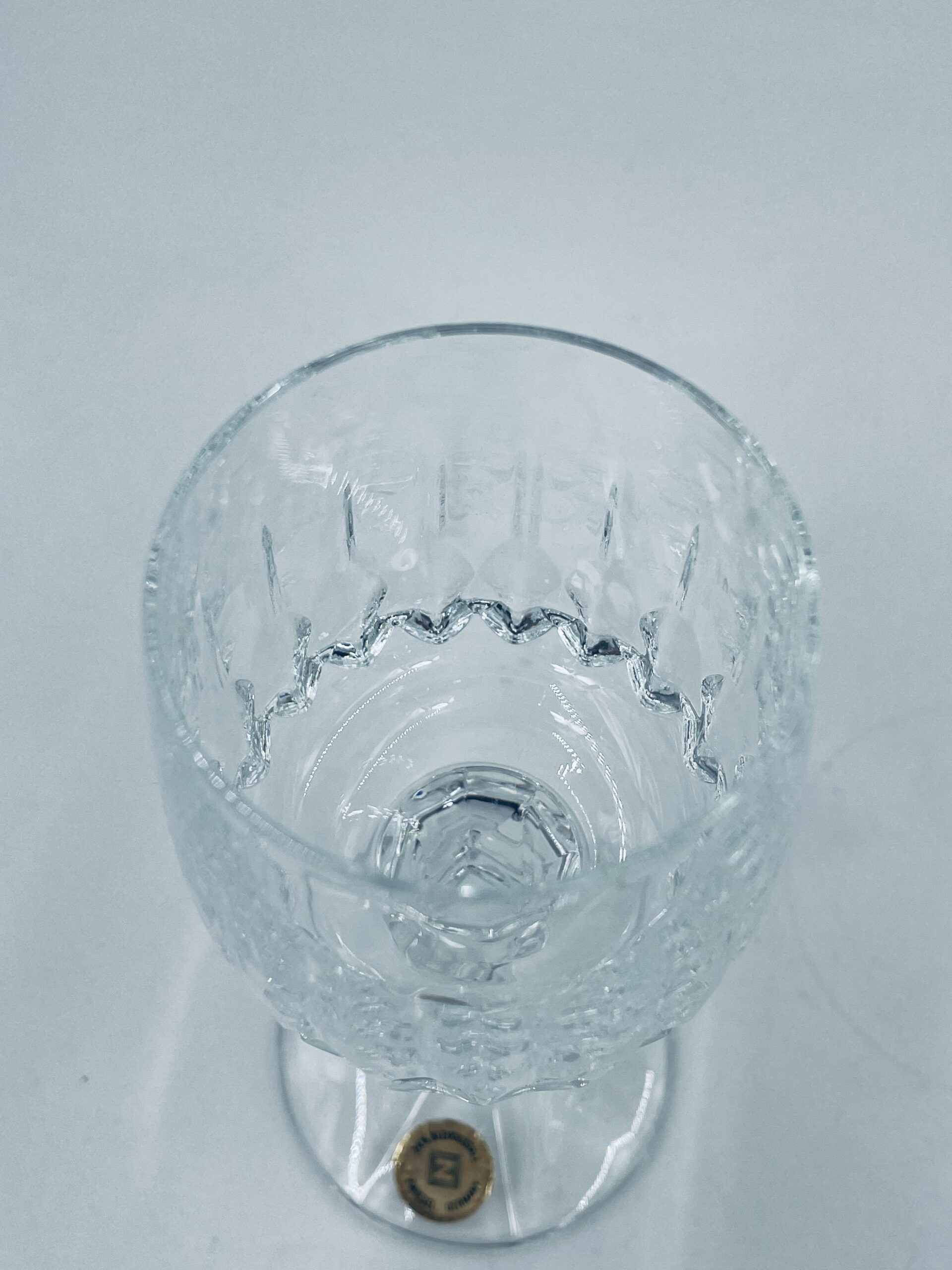 Piękny, delikatny kieliszek do likieru kryształowy z dekoracyjnym ciętym wzorem.
