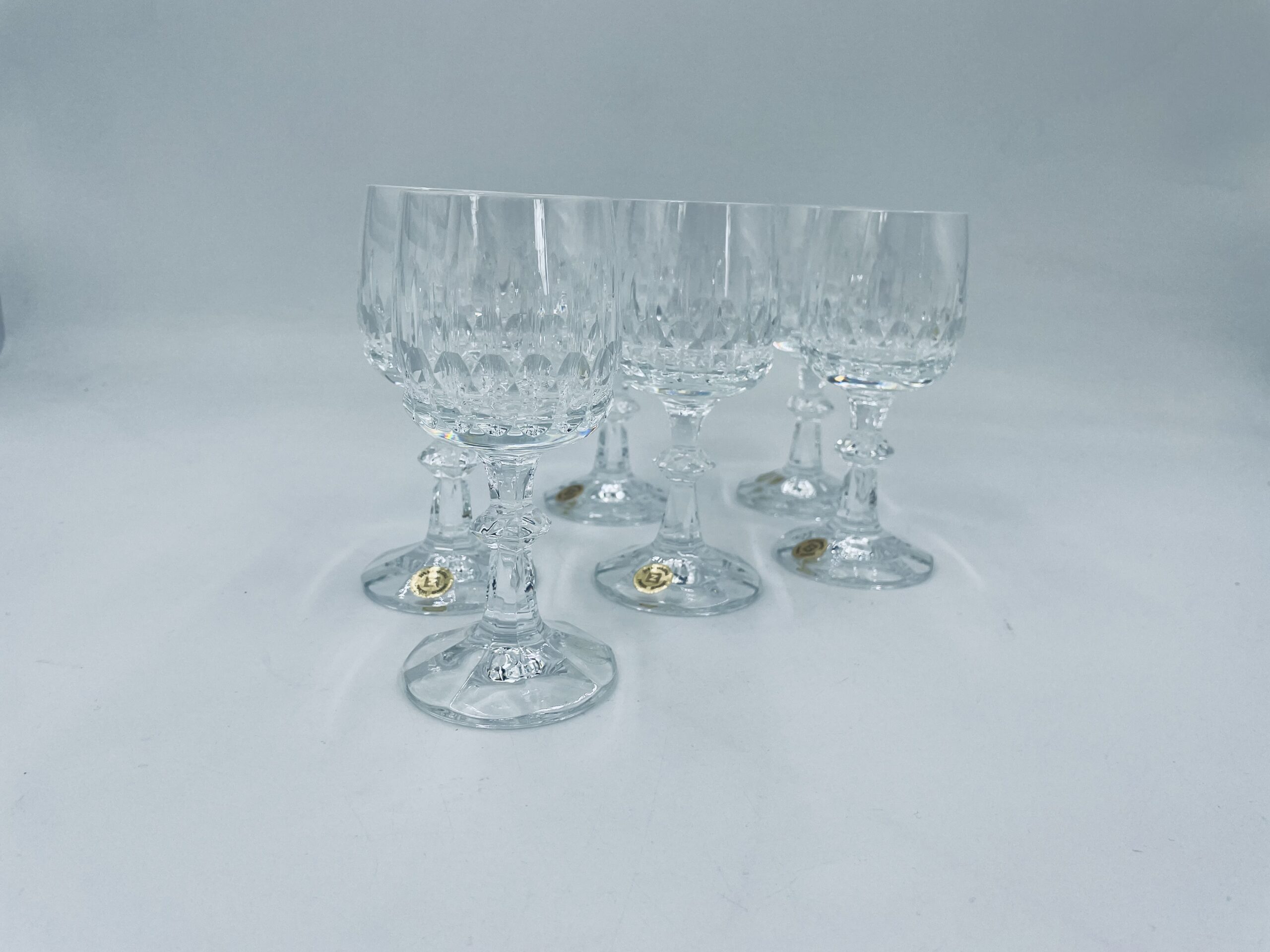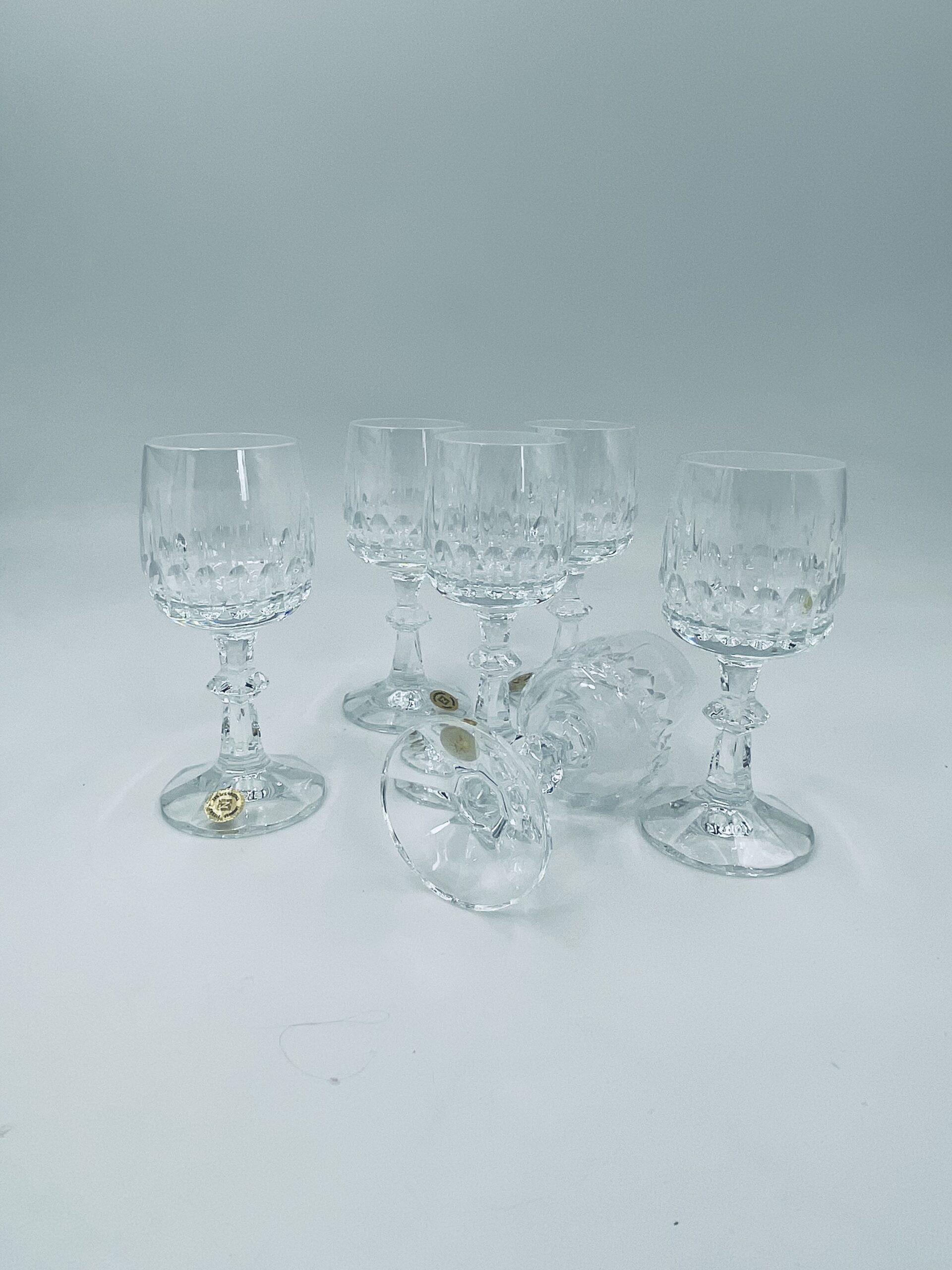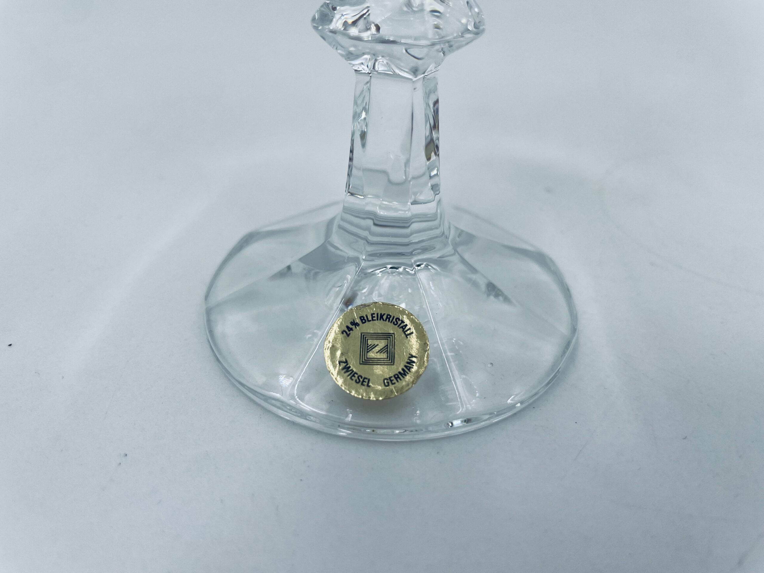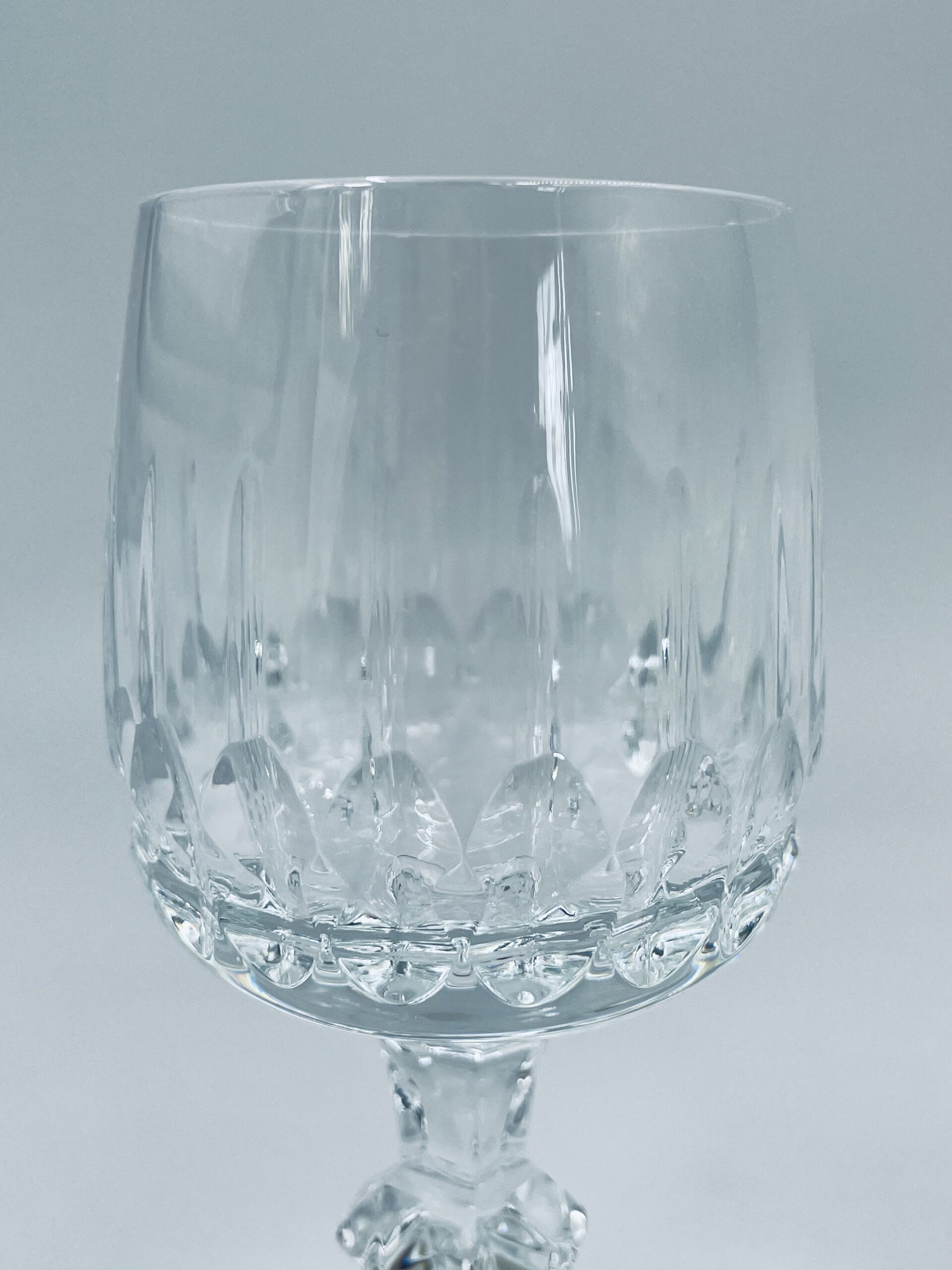Piękny, delikatny kieliszek do likieru kryształowy z dekoracyjnym ciętym wzorem.