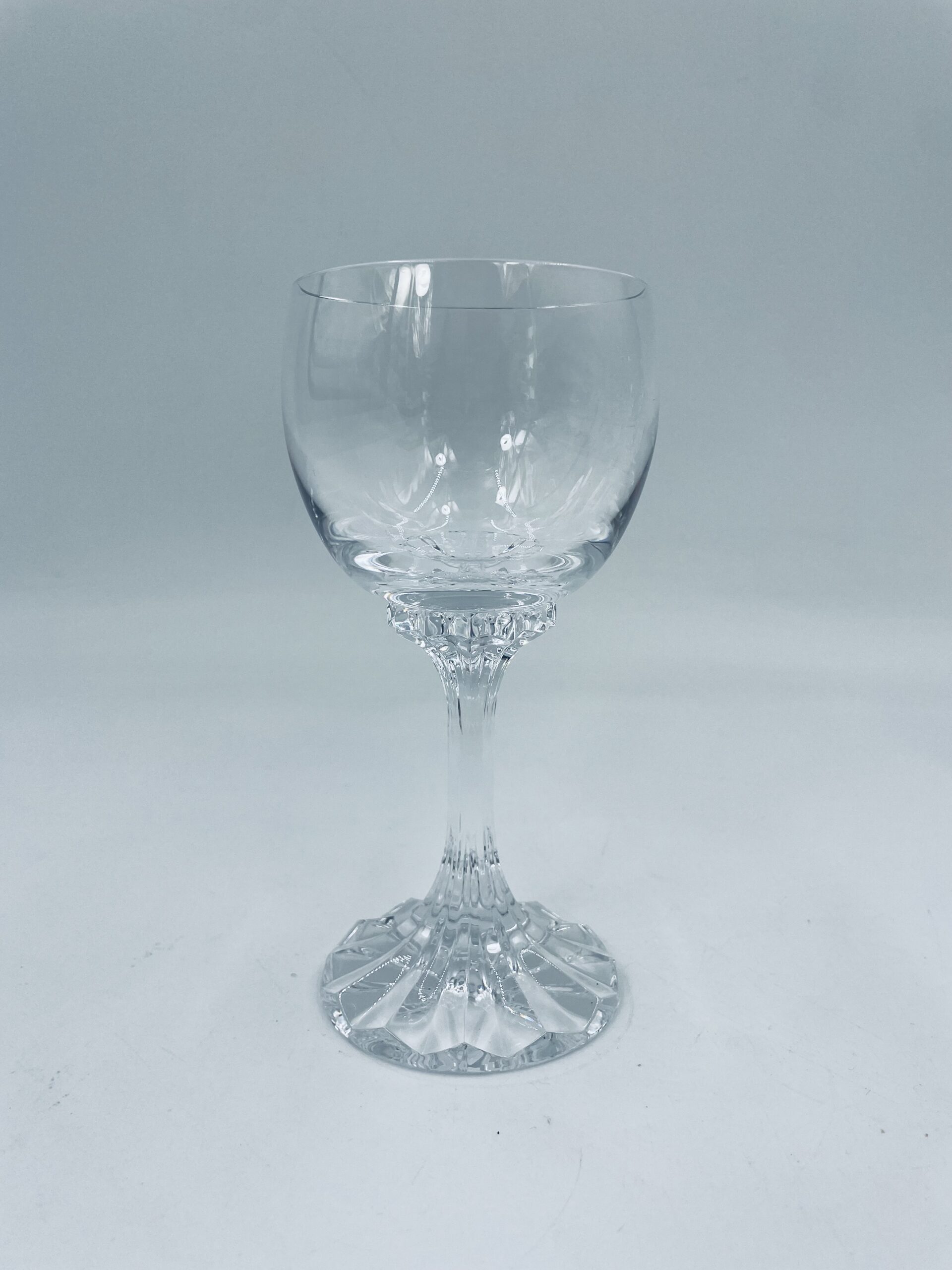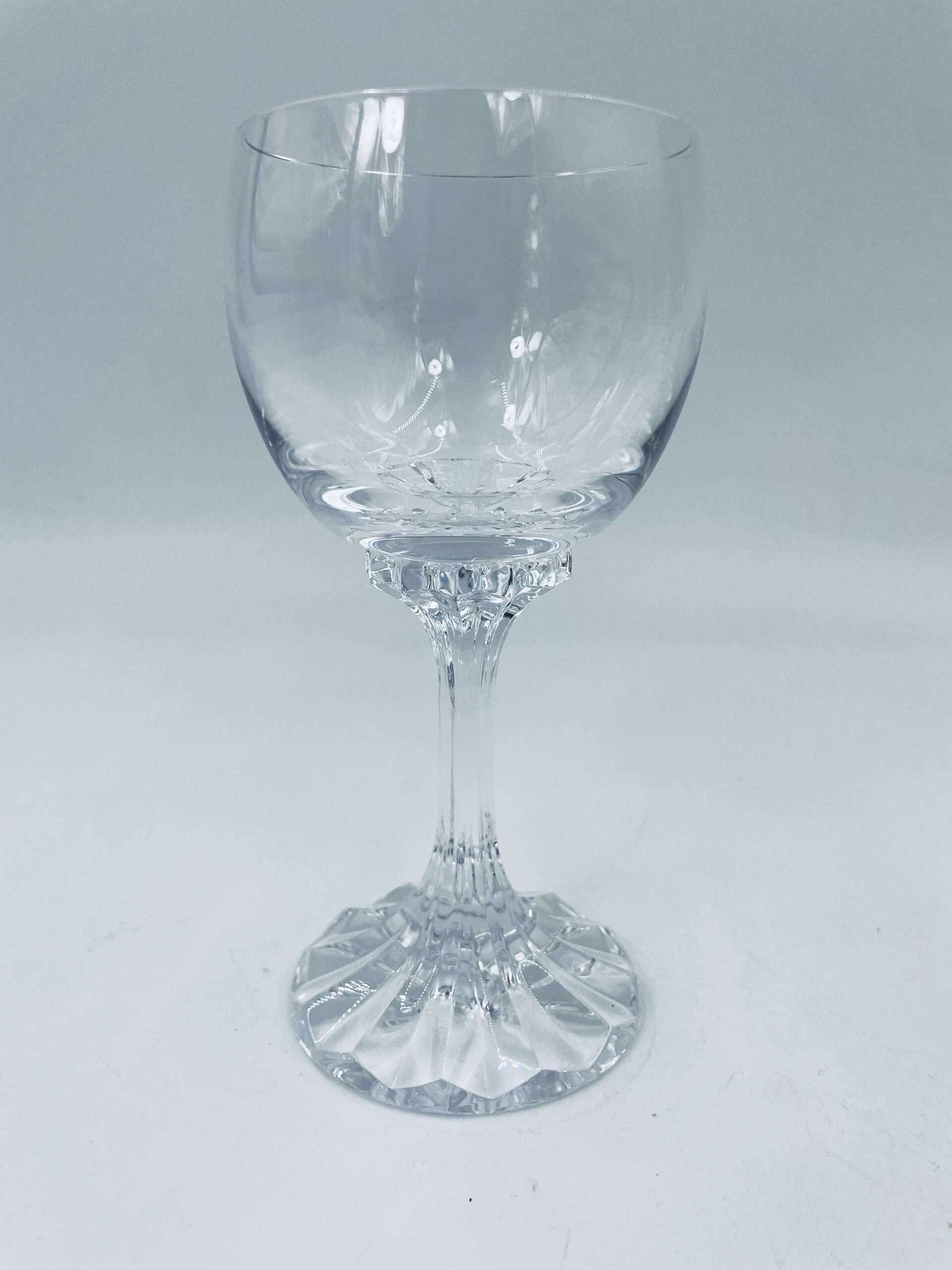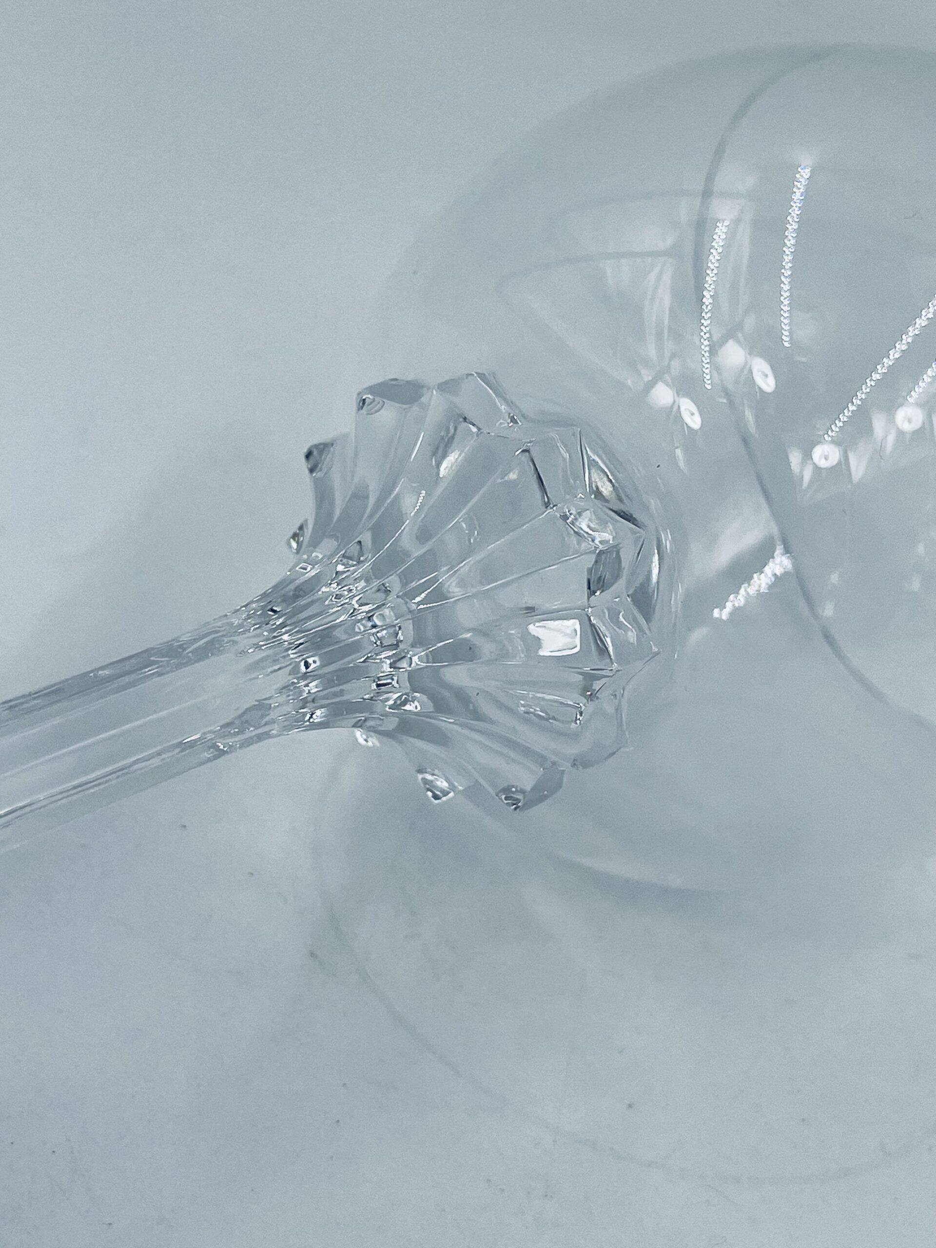 Piękny, delikatny kieliszek do wina kryształowy z dekoracyjnym ciętym wzorem.