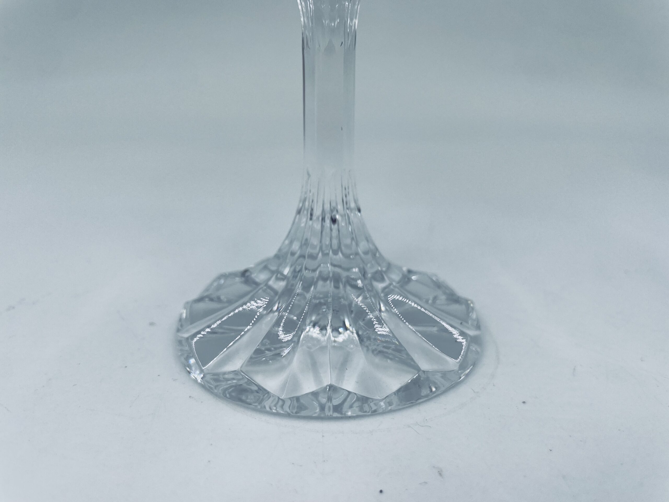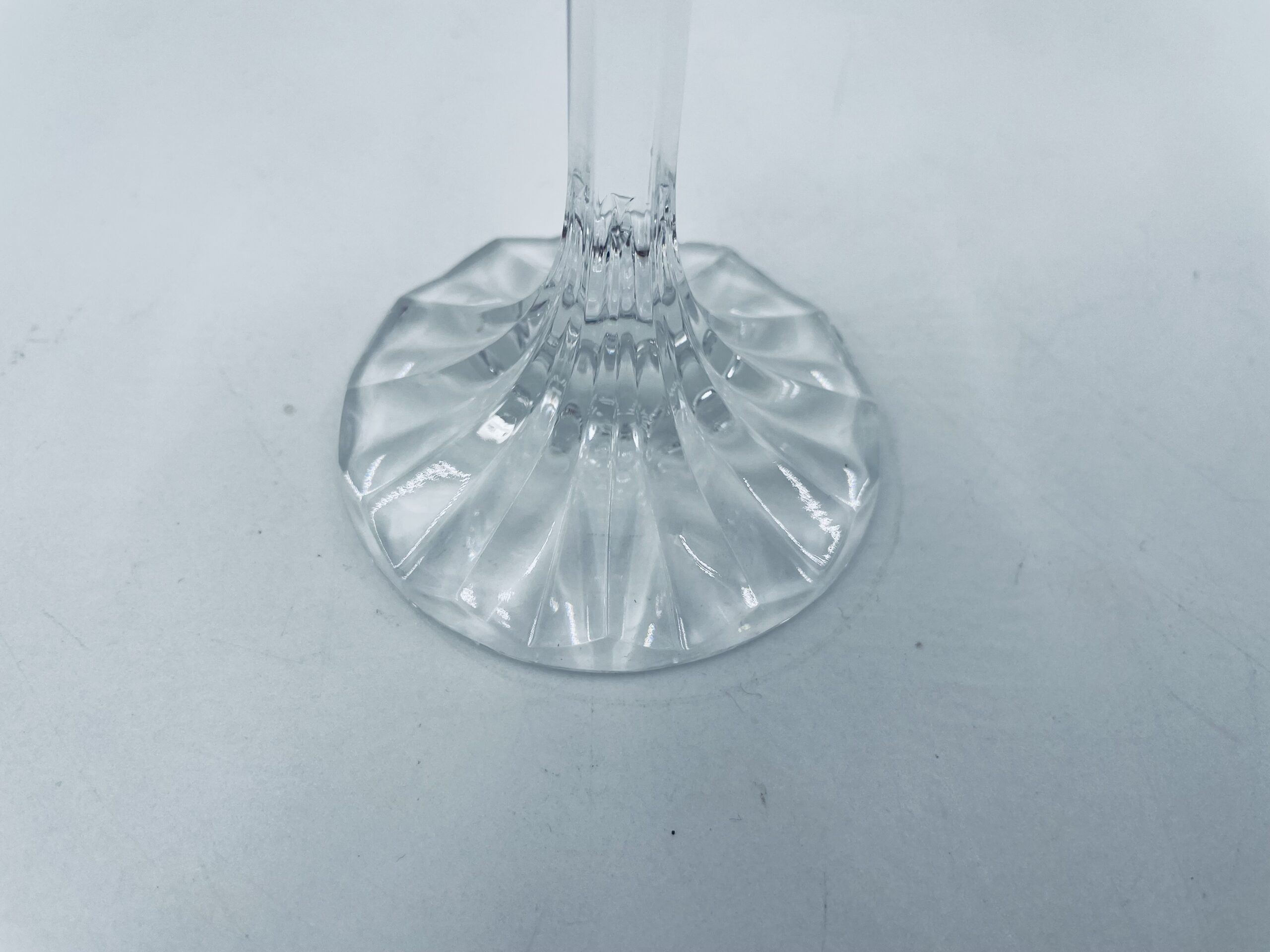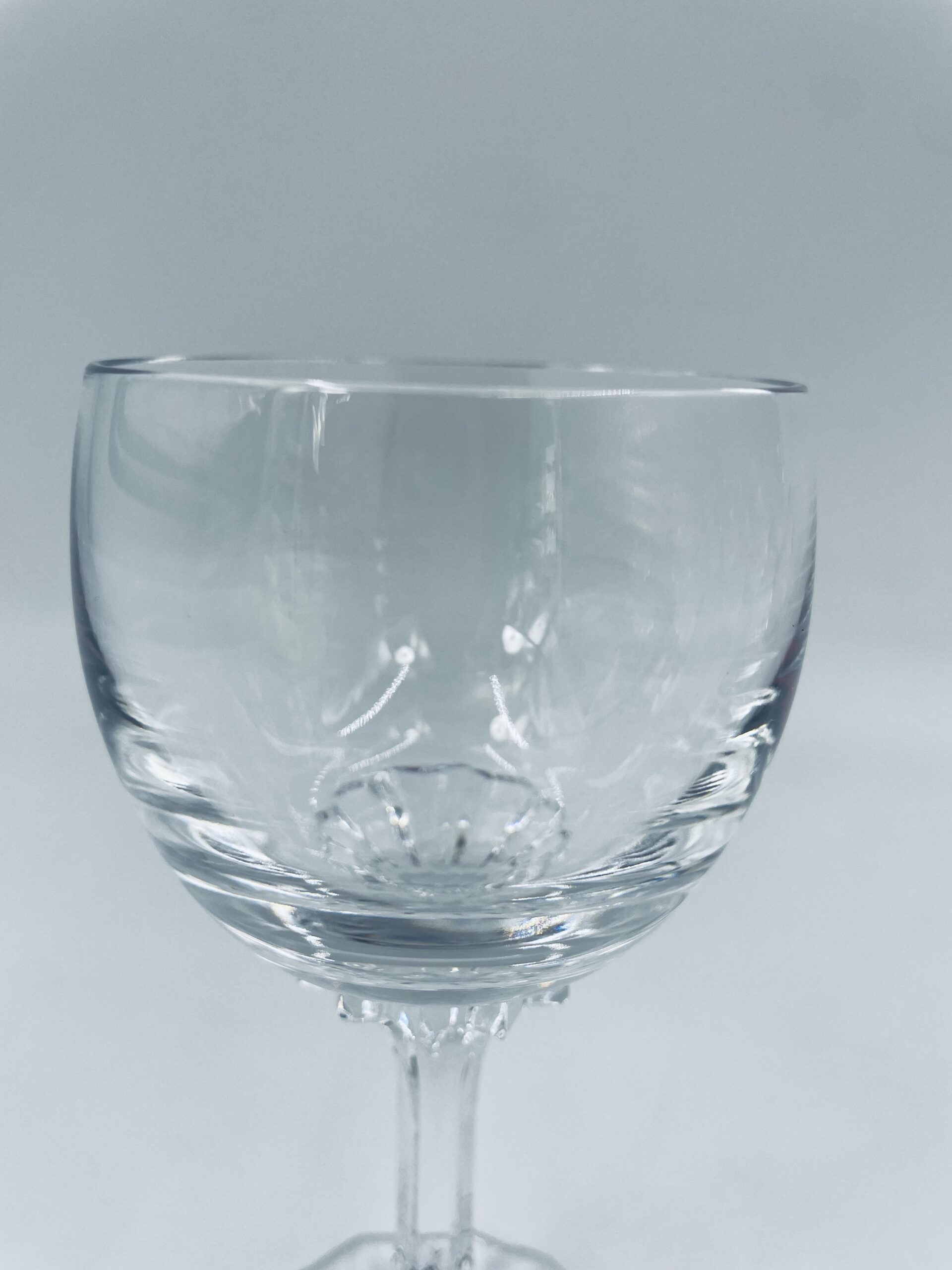 Piękny, delikatny kieliszek do wina kryształowy z dekoracyjnym ciętym wzorem.