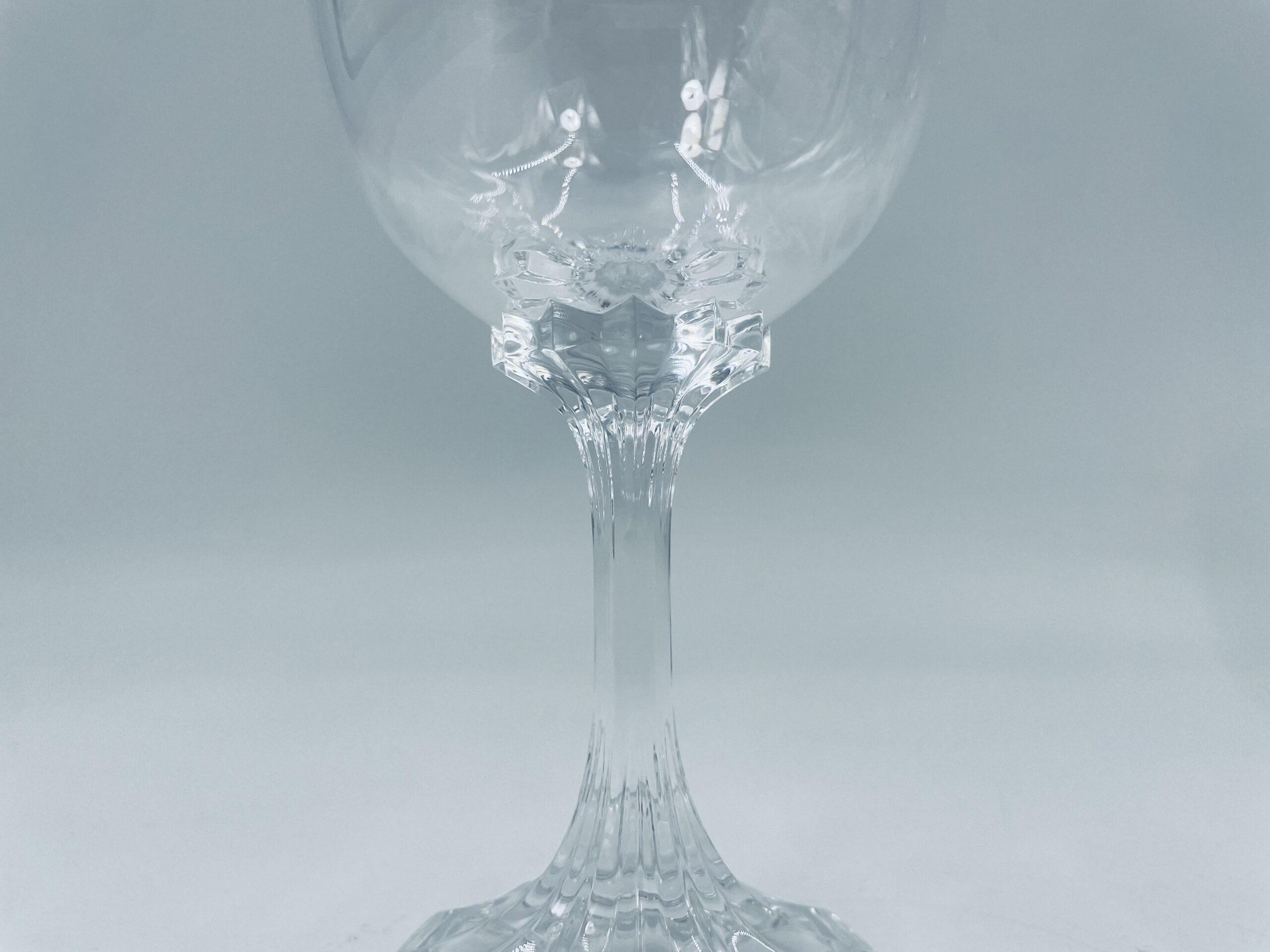Piękny, delikatny kieliszek do wina kryształowy z dekoracyjnym ciętym wzorem.