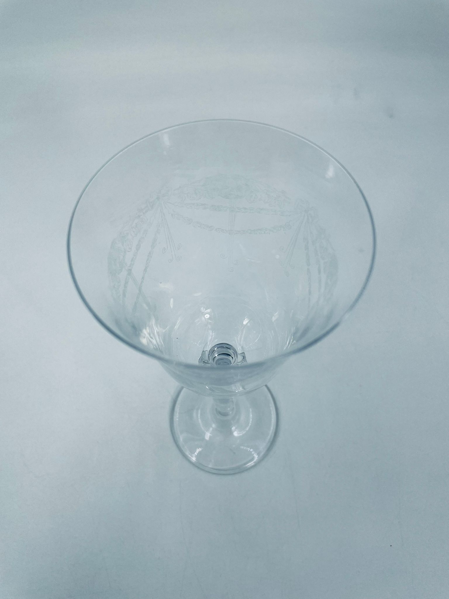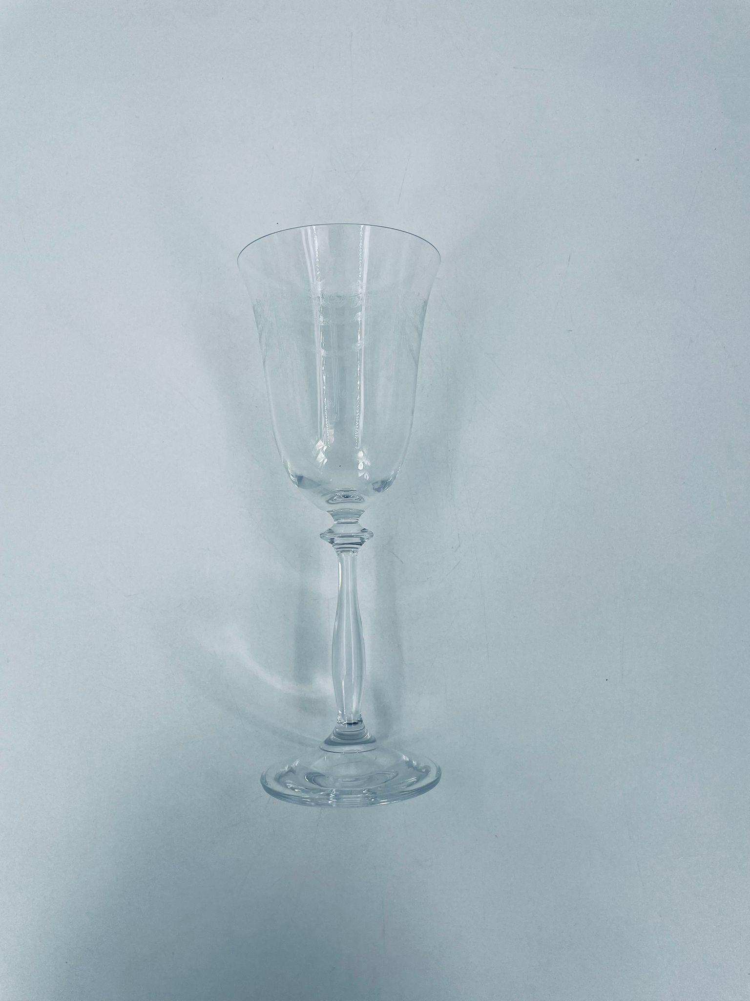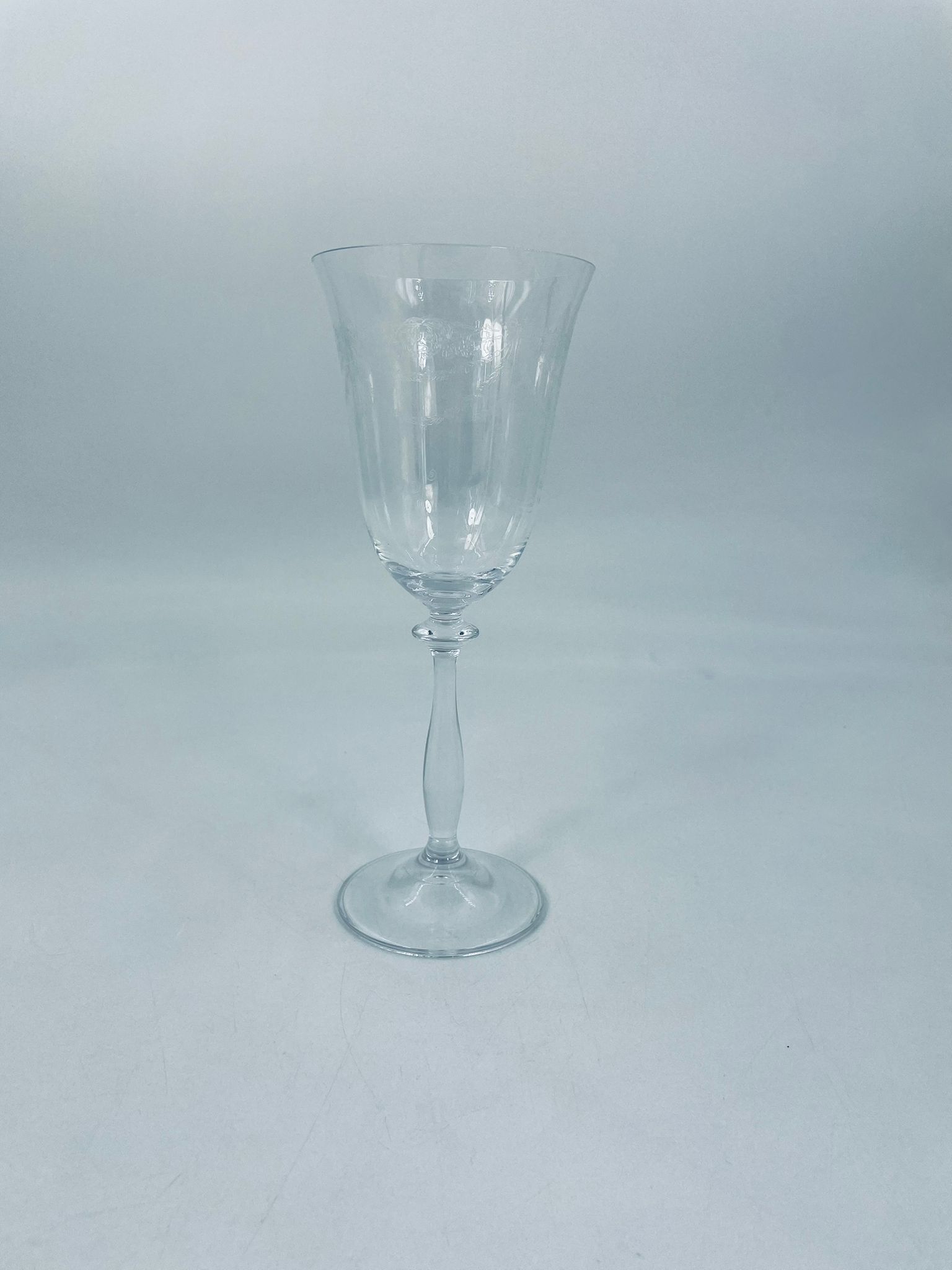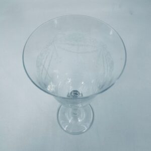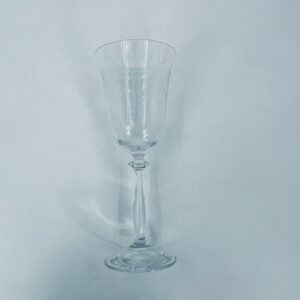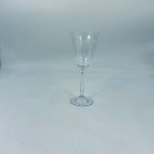 Kieliszek do wina wykonany ze szkła kryształowego, przezroczysty. Posiada smukłą nóżkę na okrągłej podstawie i subtelne wzory na czarce w stylu Vintage.