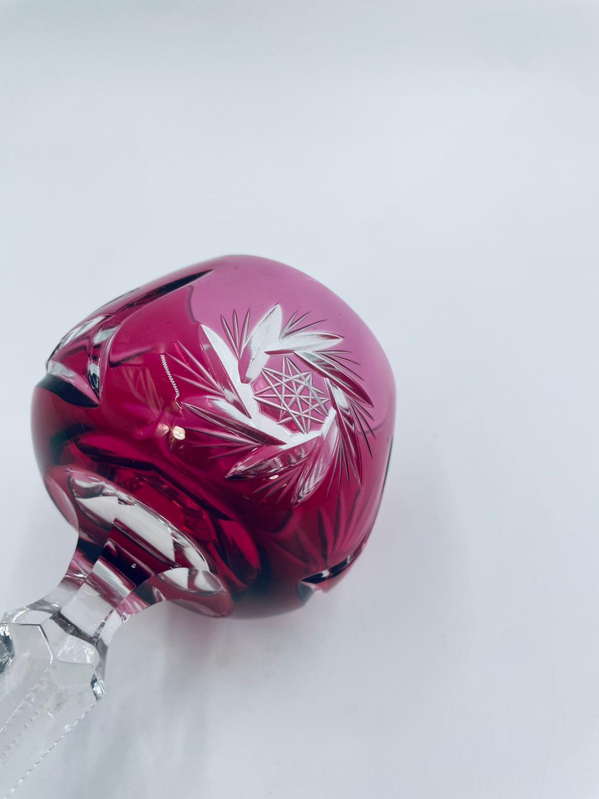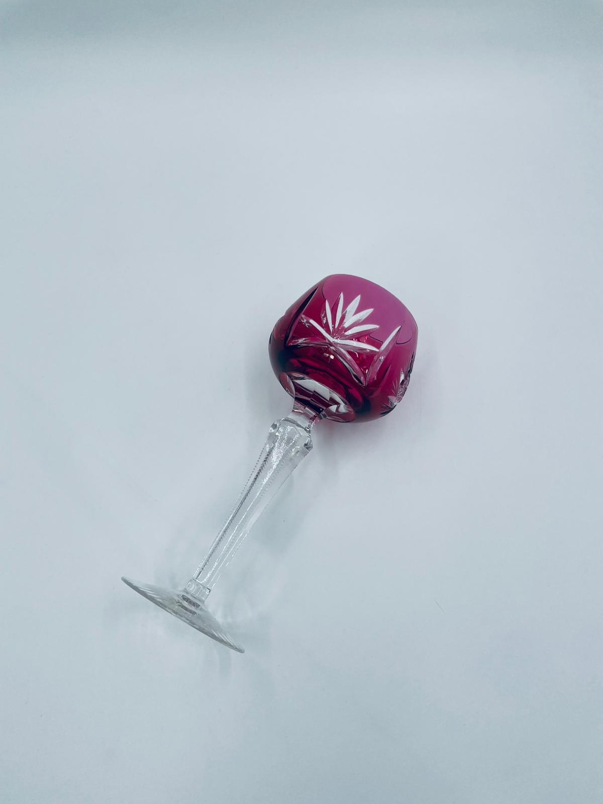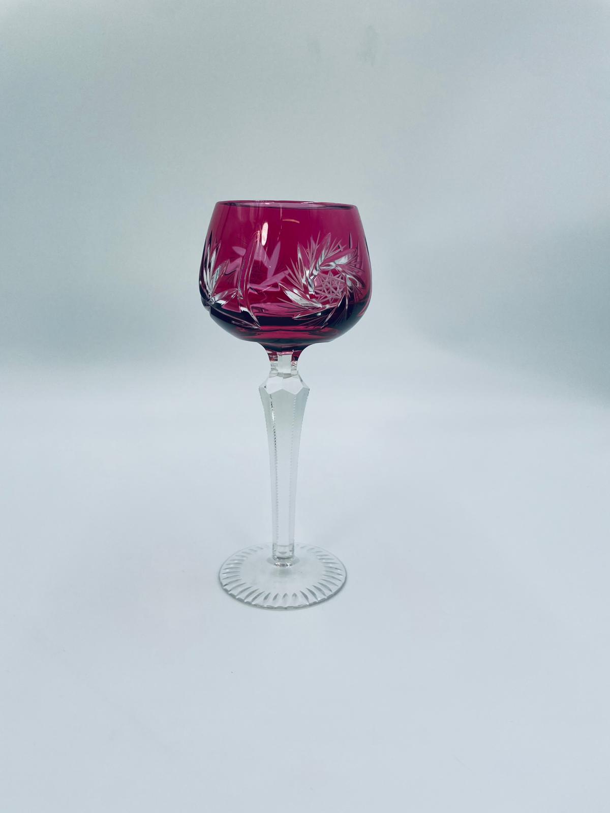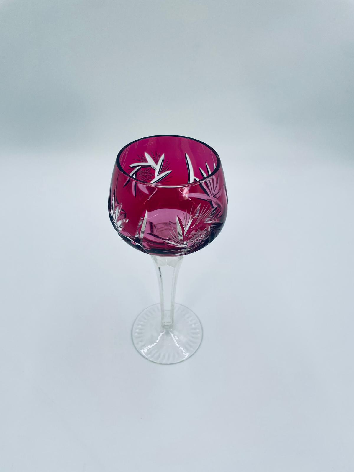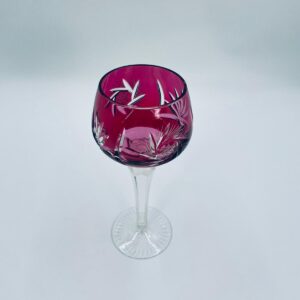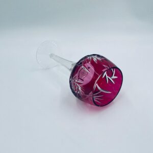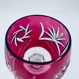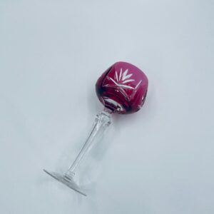 Kieliszek do wina typu Römer, prawdopodobnie pochodzący z Huty Józefina , wykonany z wysokiej jakości szkła kryształowego. Kieliszek posiada żurawinową, dwuwarstwową czarę z ręcznie szlifowanym, ozdobnym wzorem gwiazd i liści, smukłą i fasetowana nóżkę oraz ozdobna podstawę z precyzyjnym szlifem.
