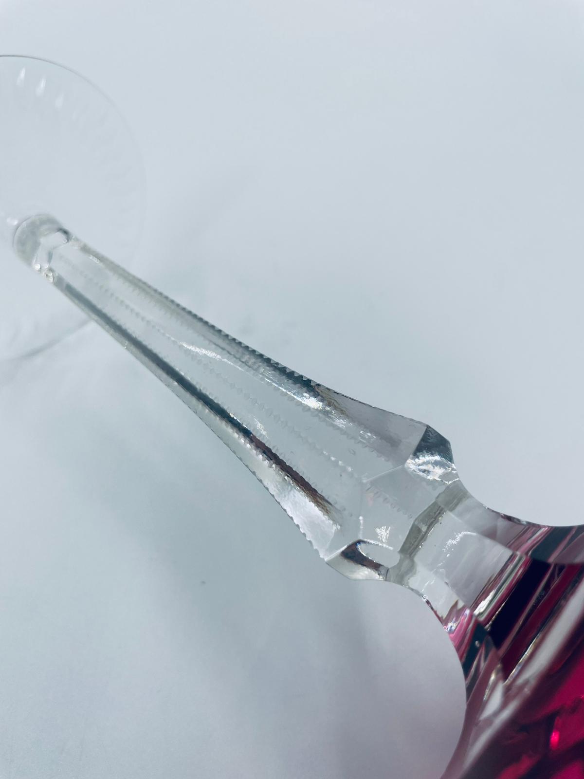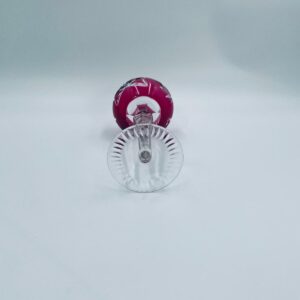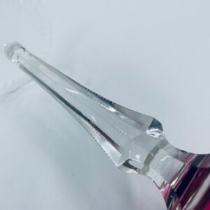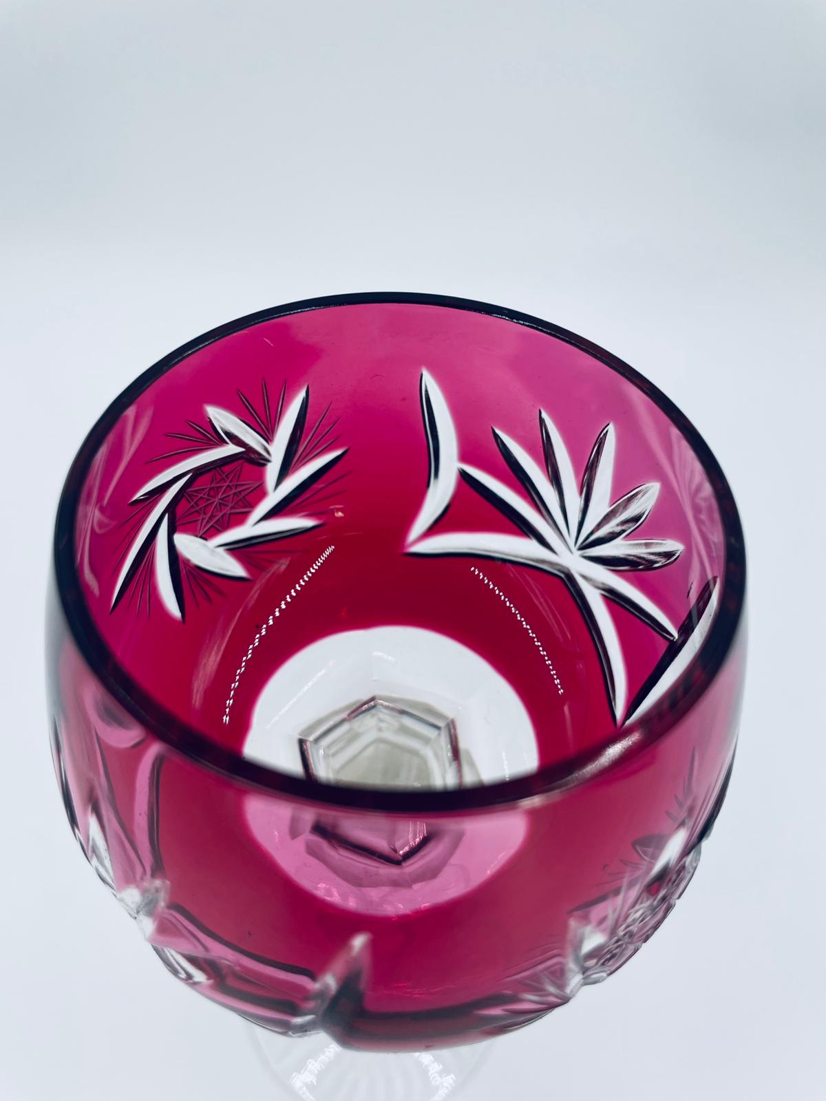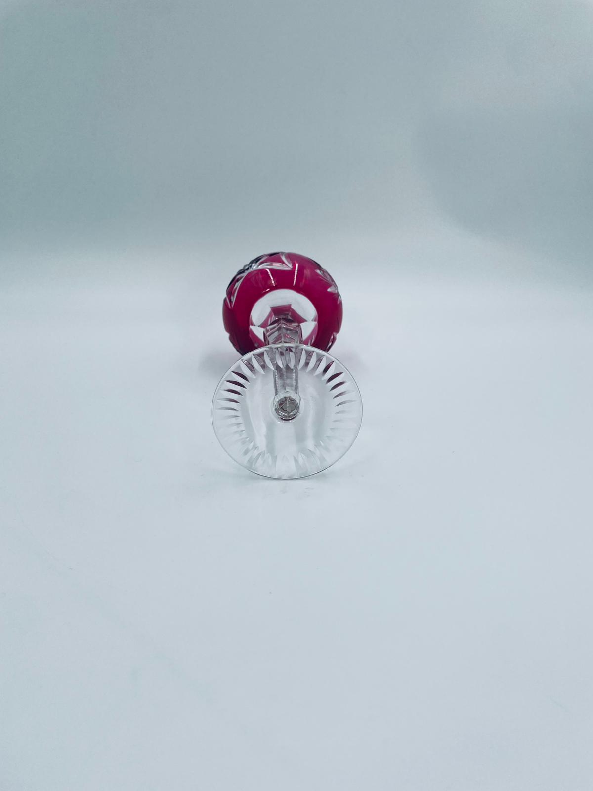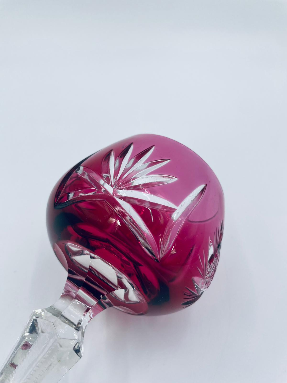 Kieliszek do wina typu Römer, prawdopodobnie pochodzący z Huty Józefina , wykonany z wysokiej jakości szkła kryształowego. Kieliszek posiada żurawinową, dwuwarstwową czarę z ręcznie szlifowanym, ozdobnym wzorem gwiazd i liści, smukłą i fasetowana nóżkę oraz ozdobna podstawę z precyzyjnym szlifem.