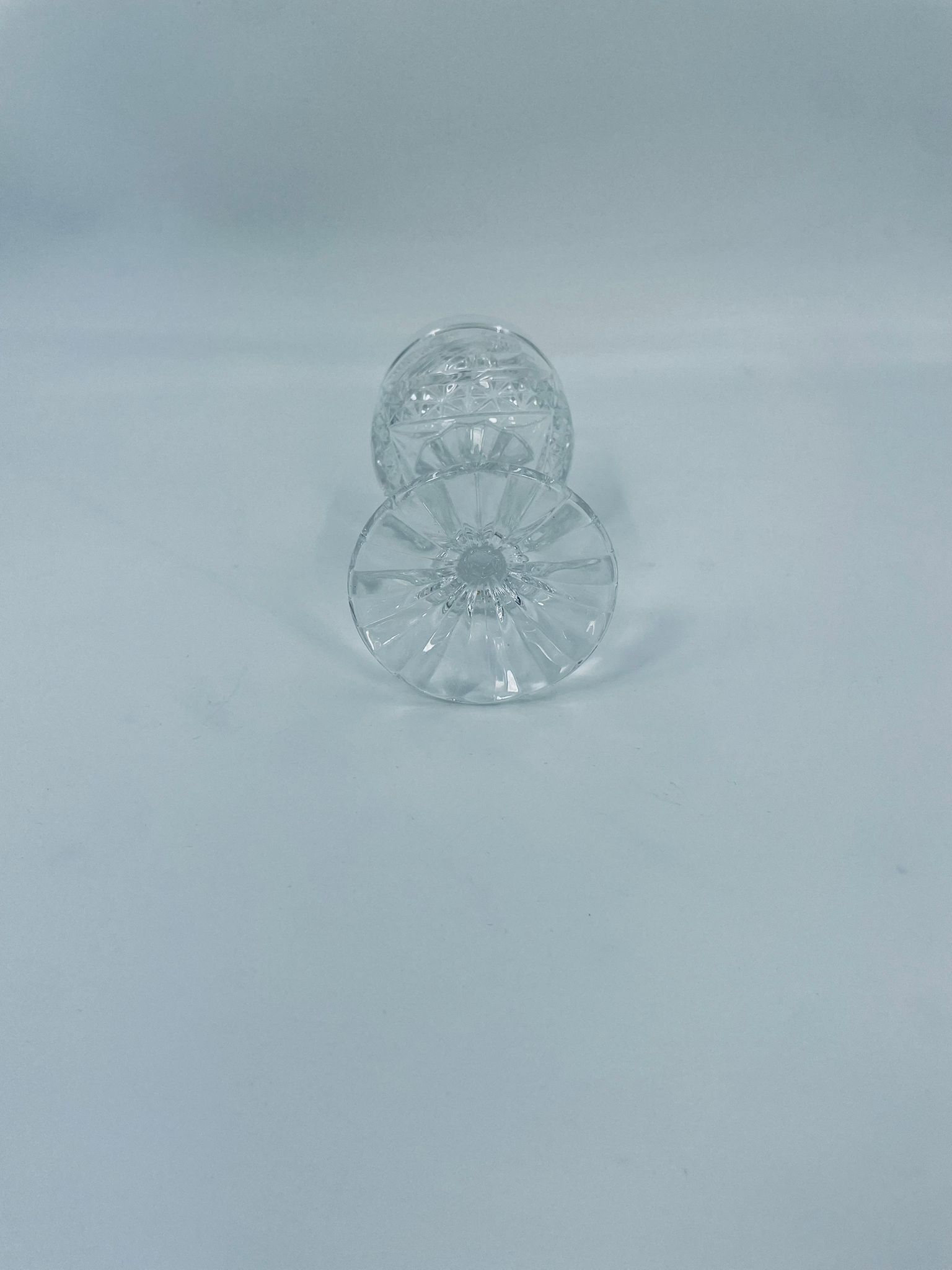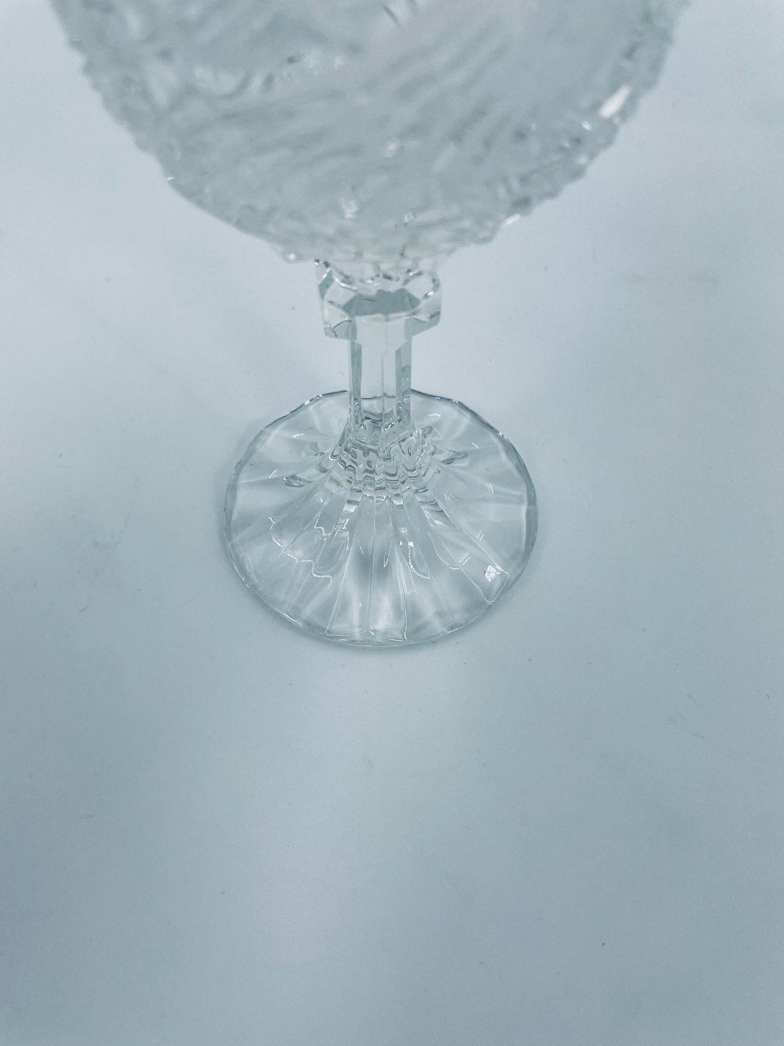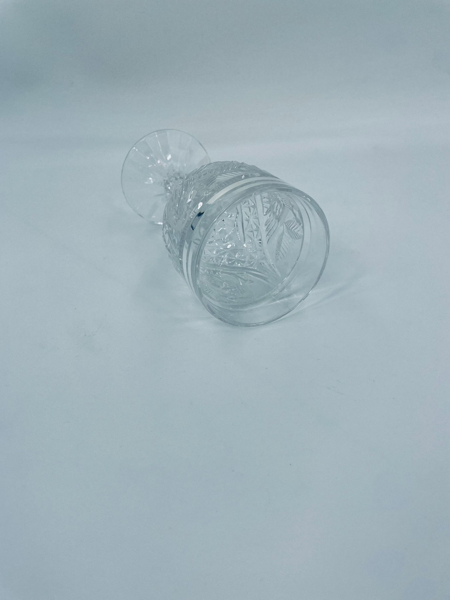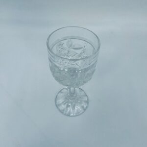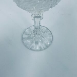 Kieliszek do wina wytwórni Hofbauer kolekcji The Byrdes, wykonany z wysokiej jakości ciężkiego, grubego szkła kryształowego. Charakteryzuje się wytłoczonym wzorem stylizowanego ptaka siedzącego na gałązce z liśćmi. Nóżka fasetowana z ozdobą w kształcie gwiazdki, podstawa wytłoczona z wzorem optycznym.