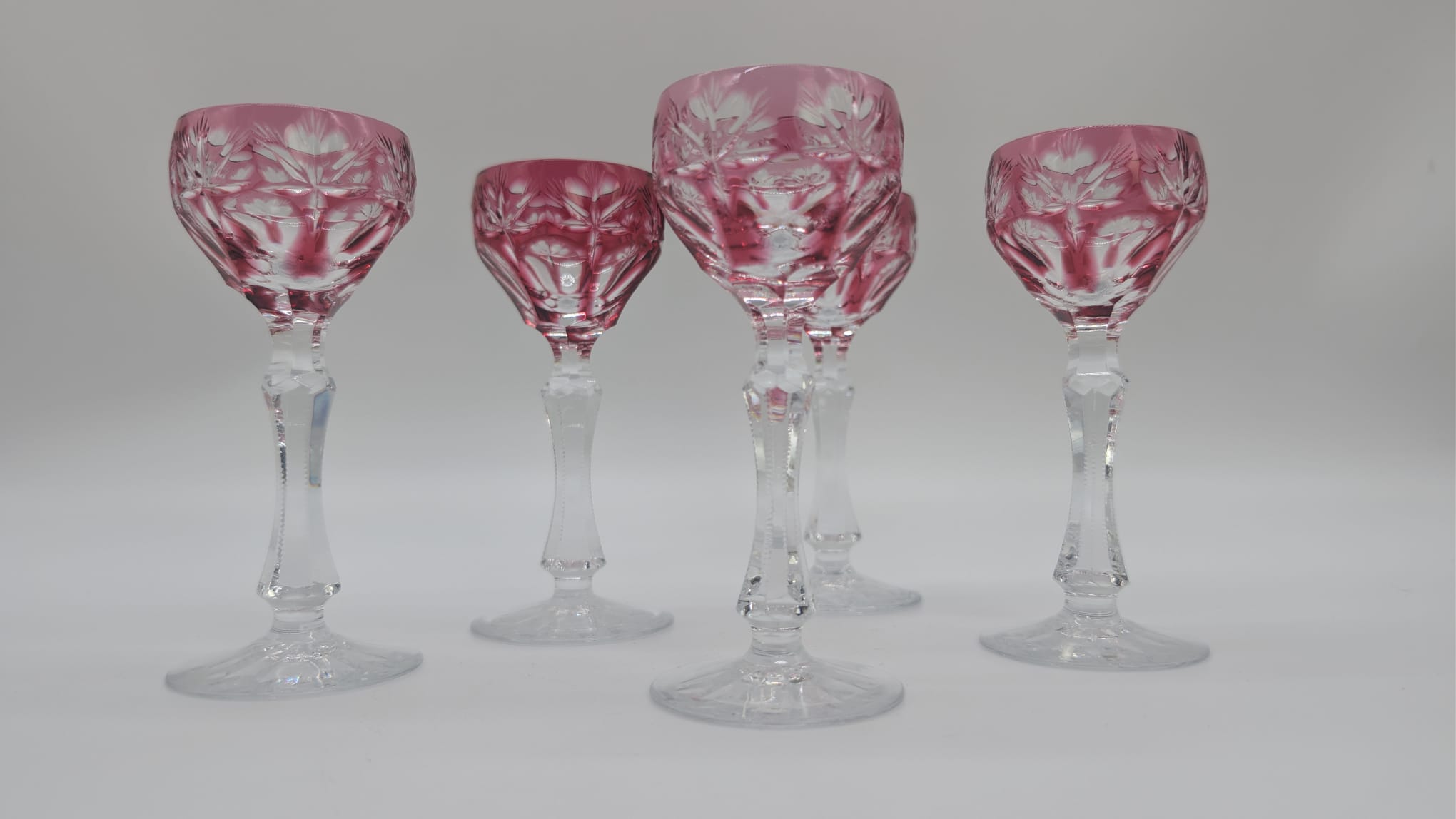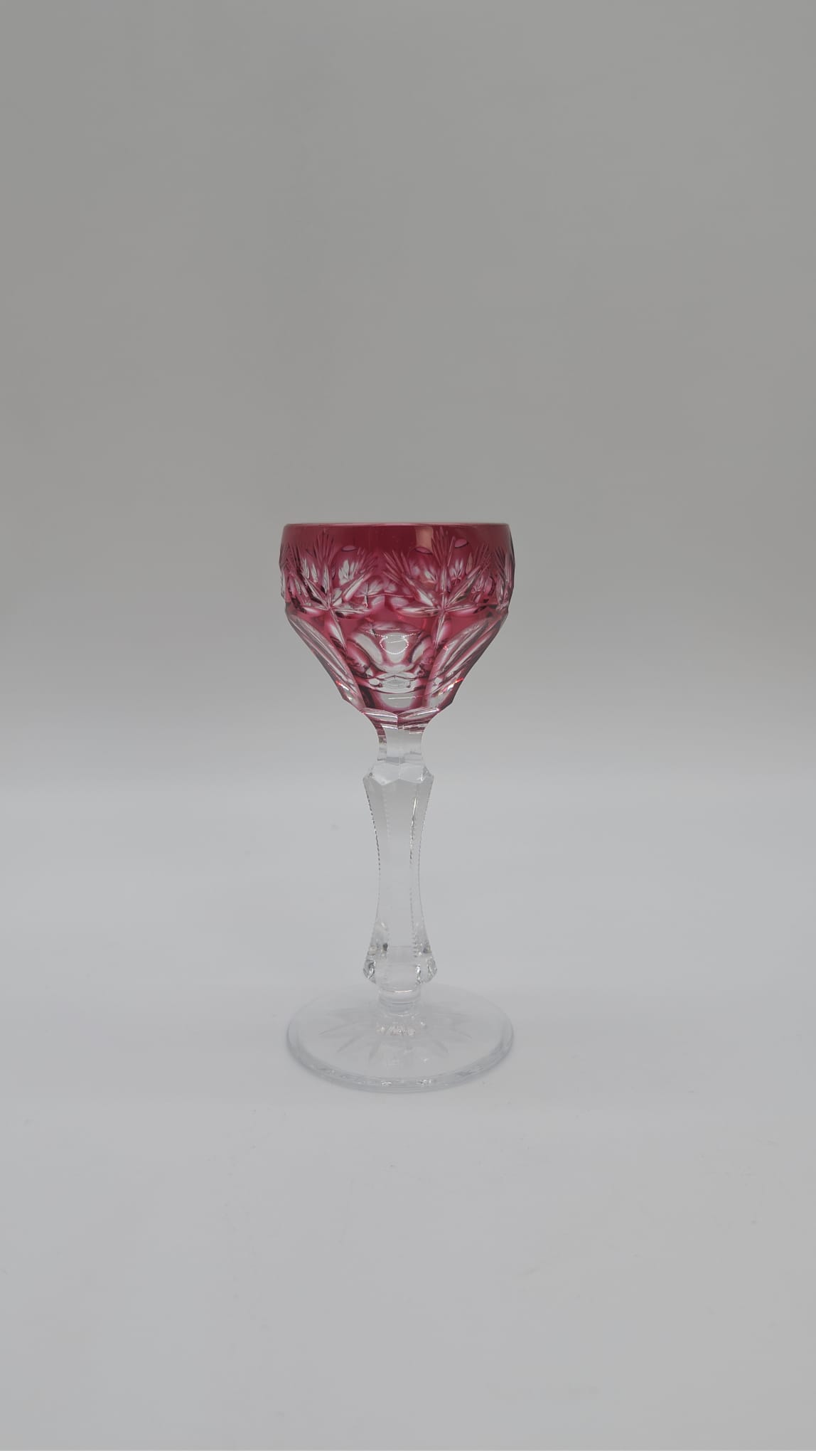 Kieliszek do likieru Nachtmann z kryształu rubinowego z lat 40./50. Elegancki i stylowy dodatek do kolekcji szkła. Idealny do podawania mocnych alkoholi lub deserów.