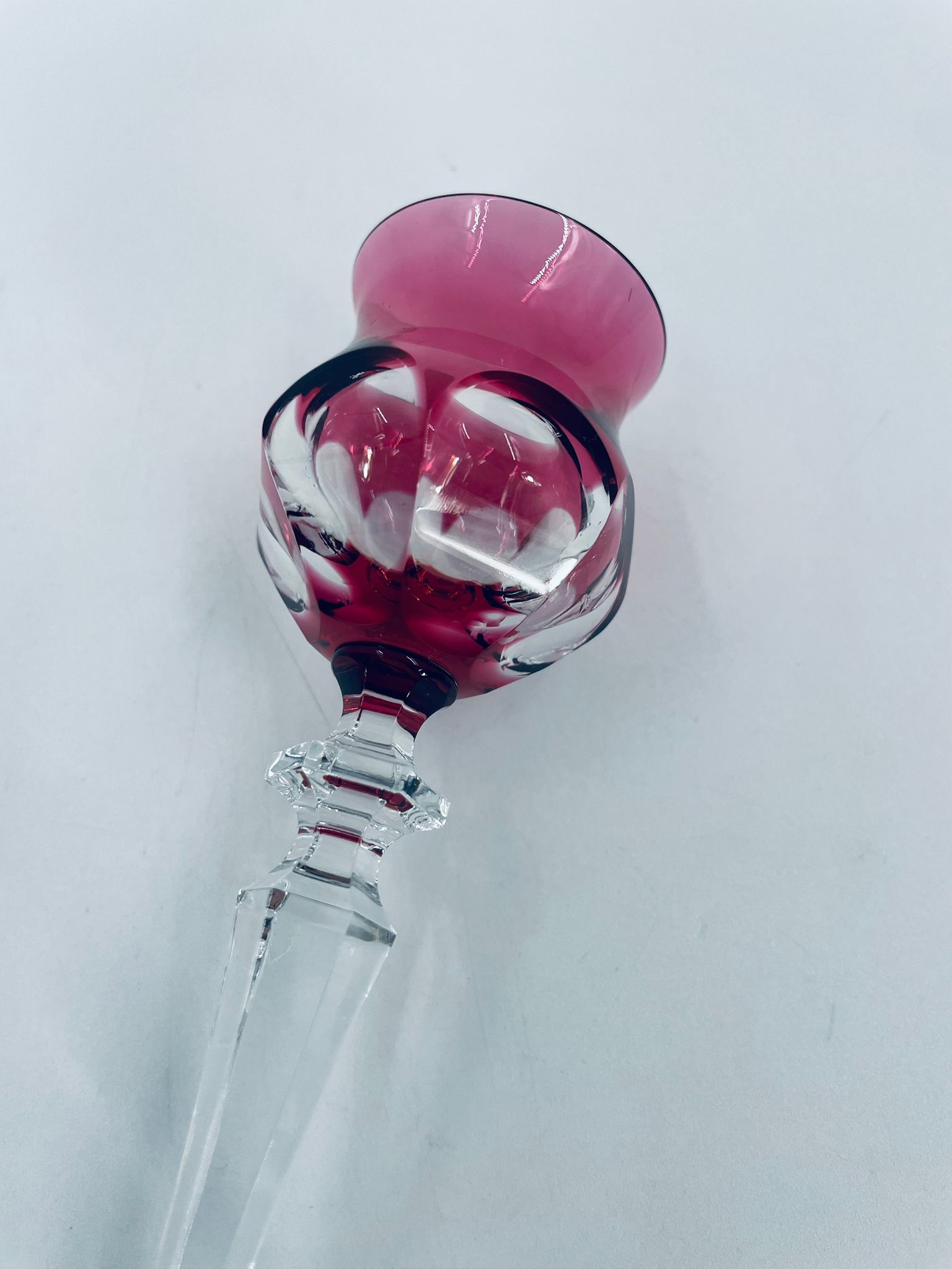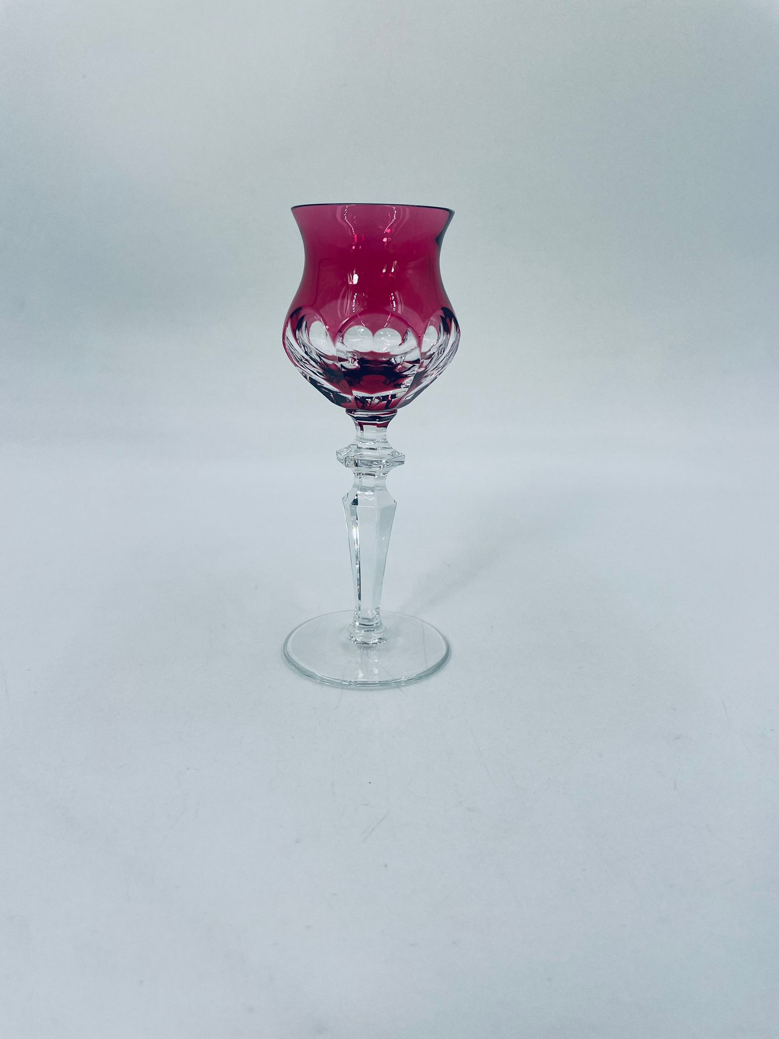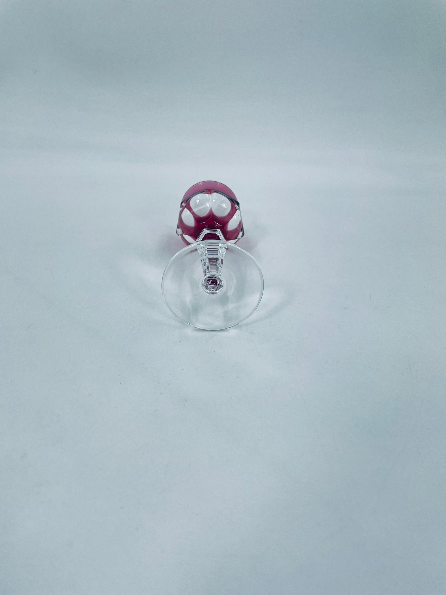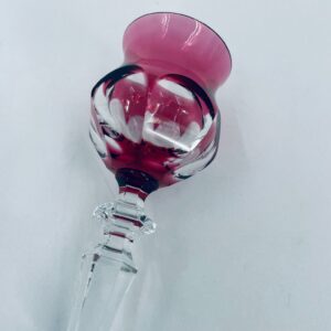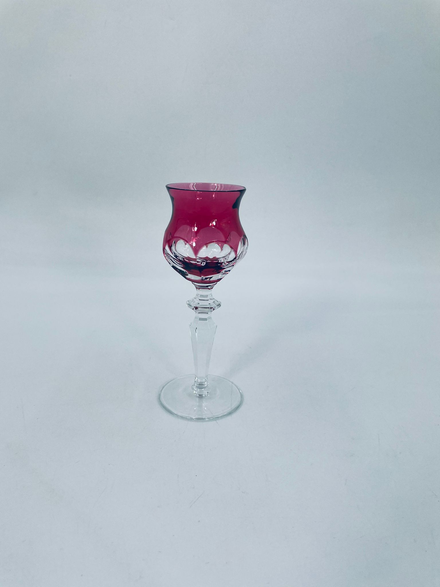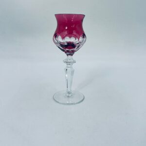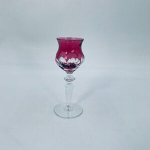 Kieliszek do nalewki marki Nachtmann, wykonany z wysokiej jakości szkła kryształowego. Czara barwiona w masie na kolor burgundowy z misternymi szlifami, które nadają elegancji, zaś nóżka przezroczysta, fasetowana i okrągła, stabilna podstawa.
