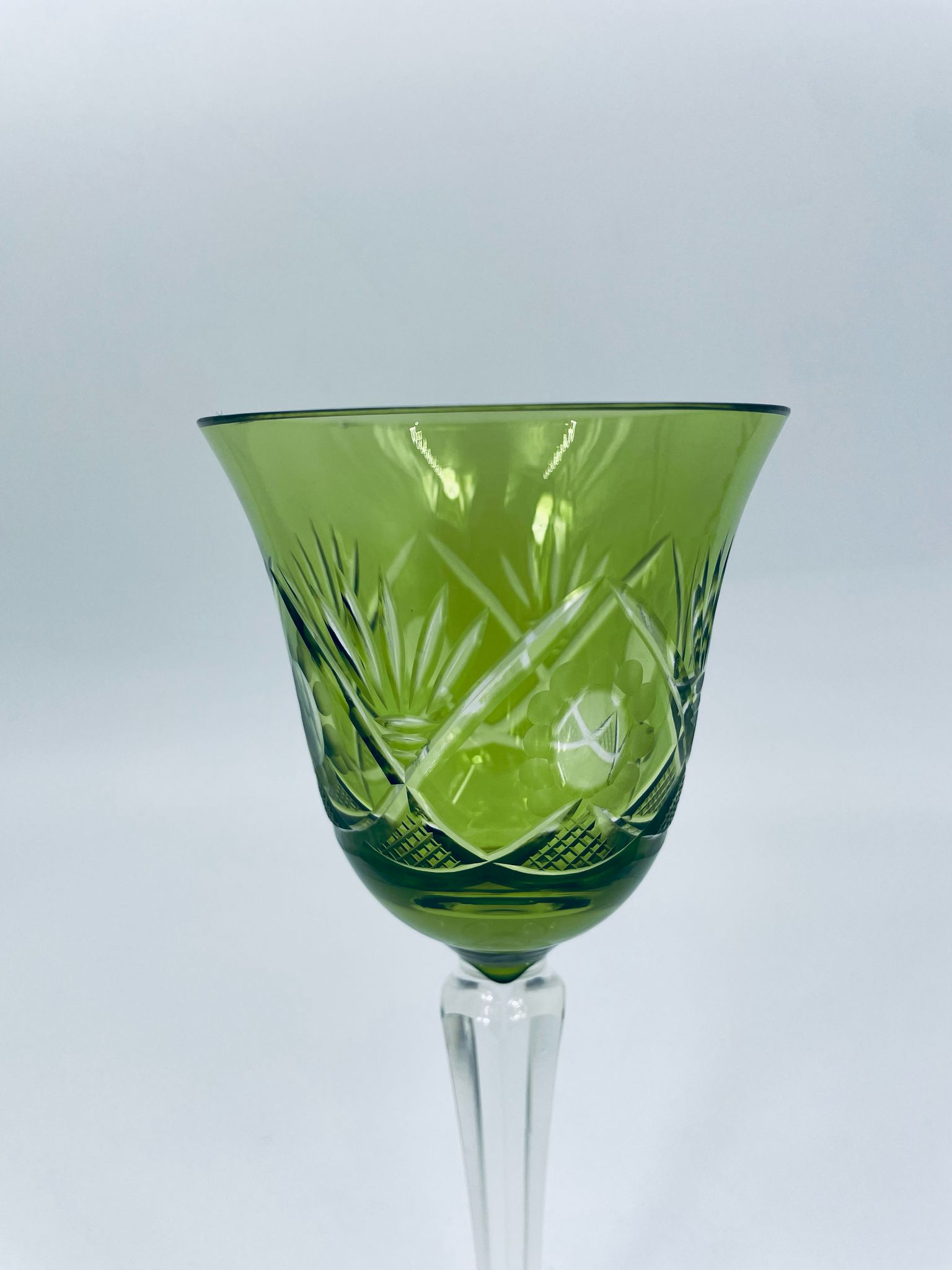 Kieliszek z pięknym szlifem w zielonym kolarze wykonany ze szkła kryształowego.