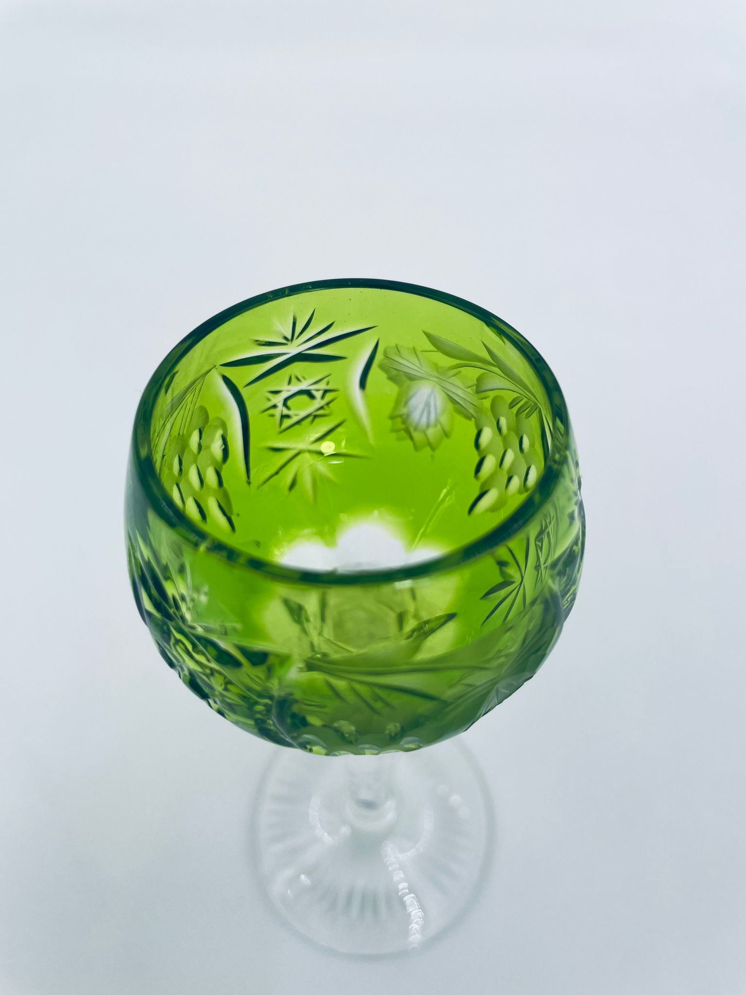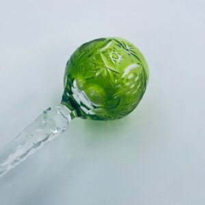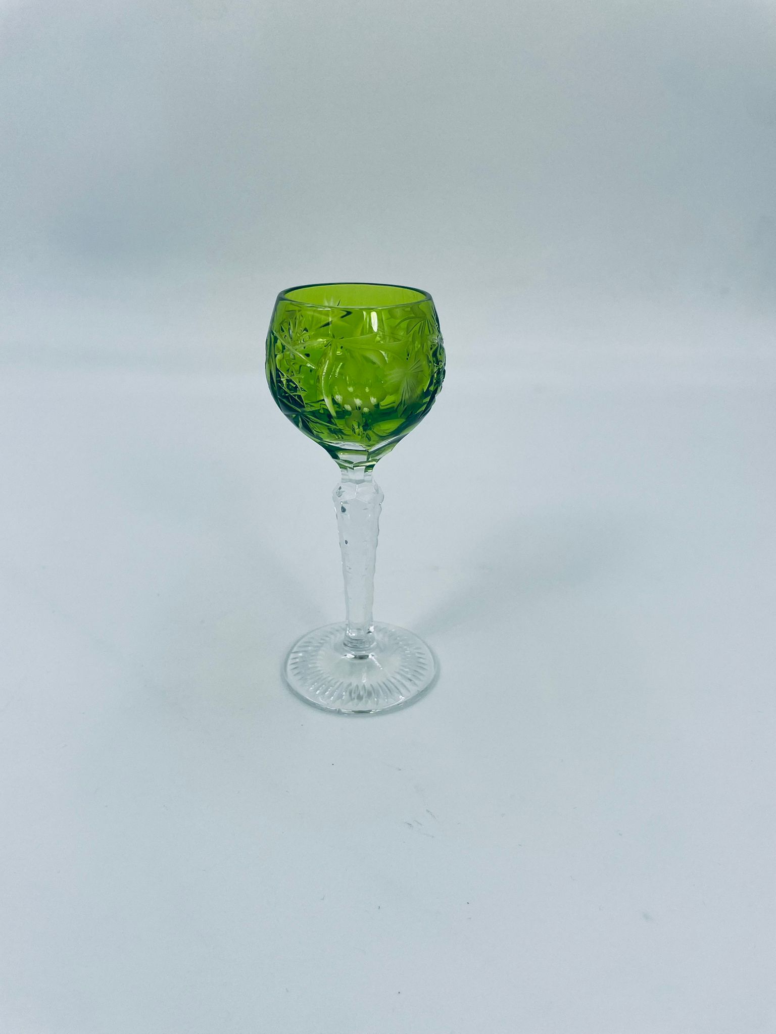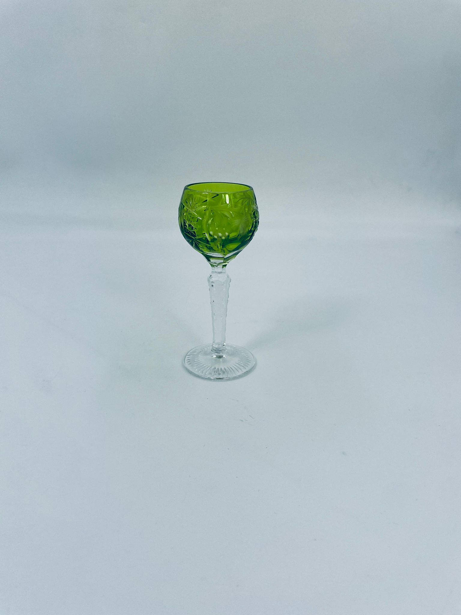 Kieliszek do nalewki Natchmann Traube Amber Cordia Glass, wykonany z wysokiej jakości szkła kryształowego ołowiowego, ciętego z limonkową powłoką. Charakteryzuje się ręcznie dmuchanym i szlifowanym, z ręcznie wycinanymi wzorami z motywem winogron z liśćmi, gwiazd i wachlarzy. Ozdobna nóżka i podstawa przezroczysta.