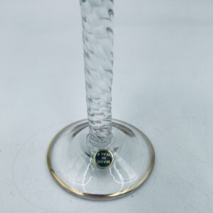 Posiada delikatny dekor złocony na kielichu i na podstawie oraz zakręconą nóżkę.