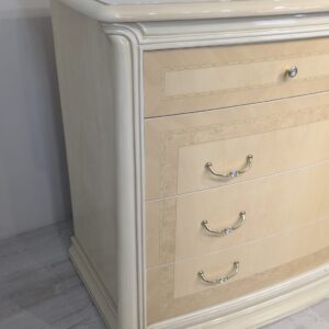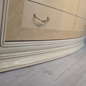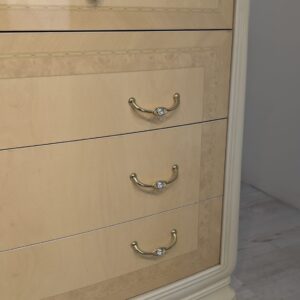 Klasyczna włoska komoda Corsini w kolorze kremowym. Posiada 6 szuflad z ładnymi uchwytami. Solidna konstrukcja i elegancki wygląd sprawią, że będzie pięknym dodatkiem do Twojej sypialni lub salonu.