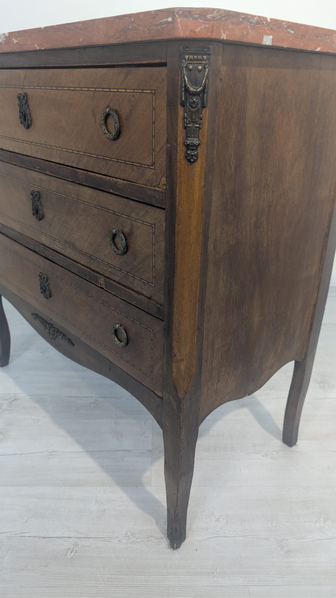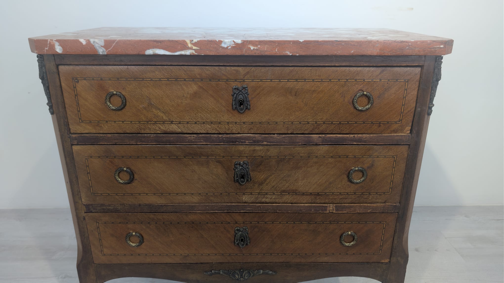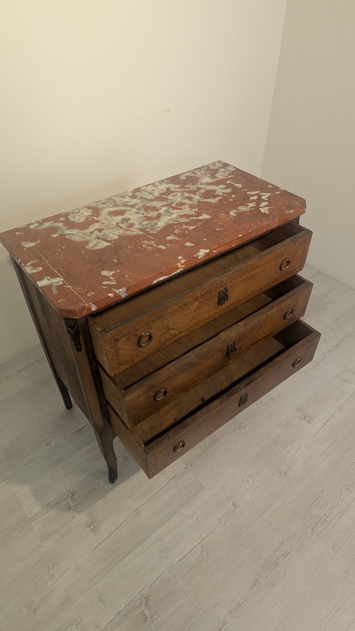 Komoda antyczna w stylu neorokokowym z czerwonym marmurem