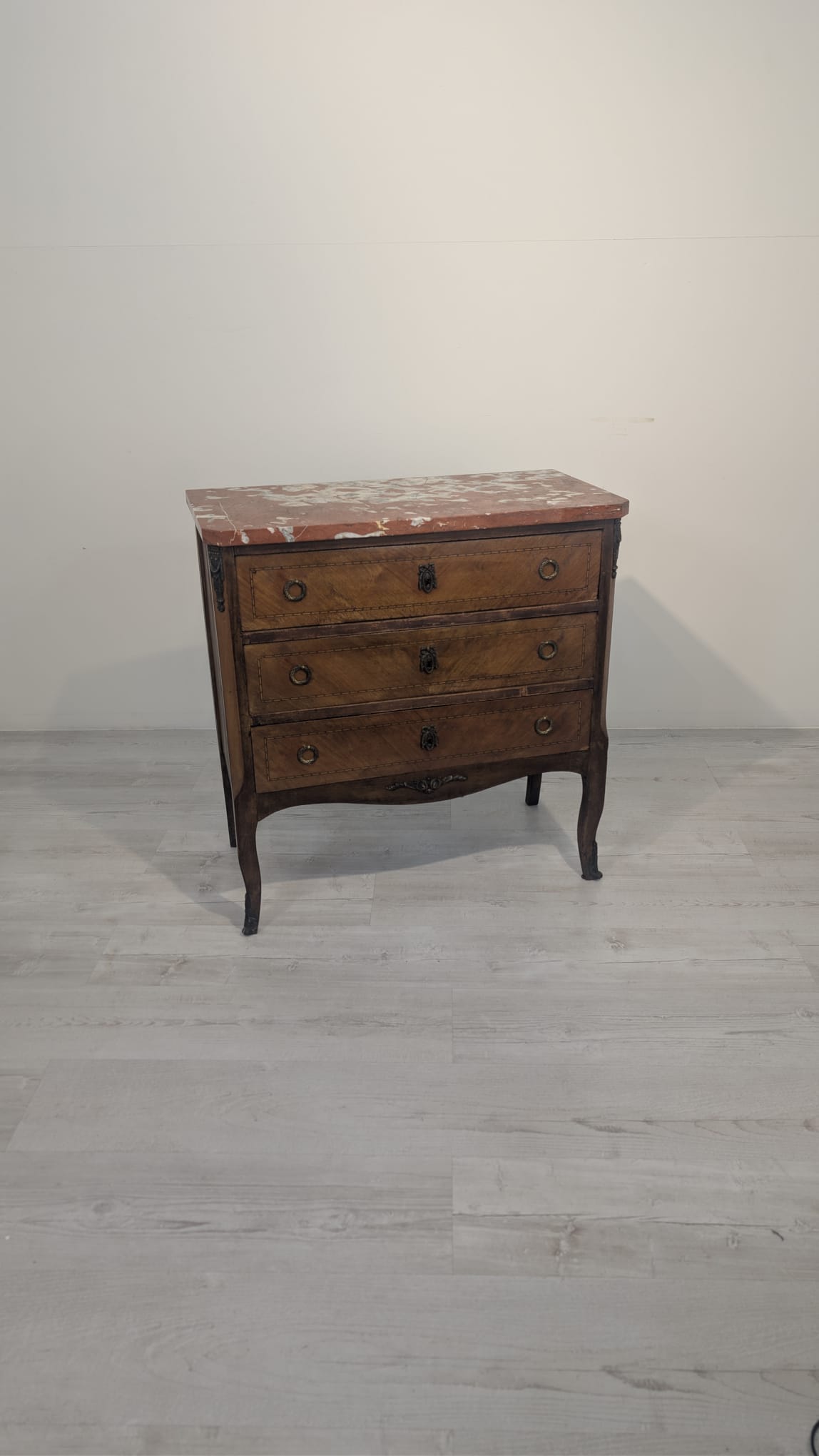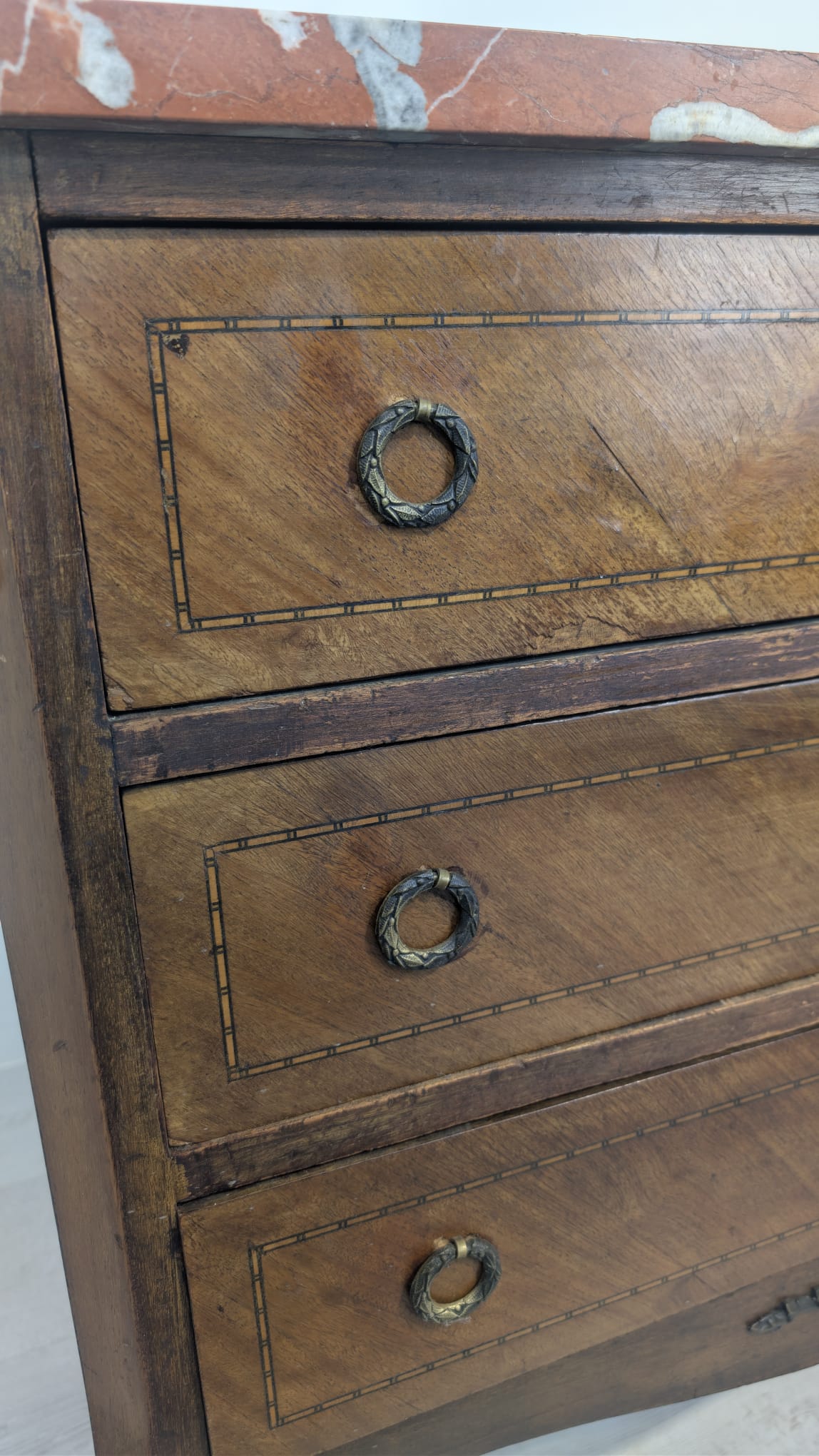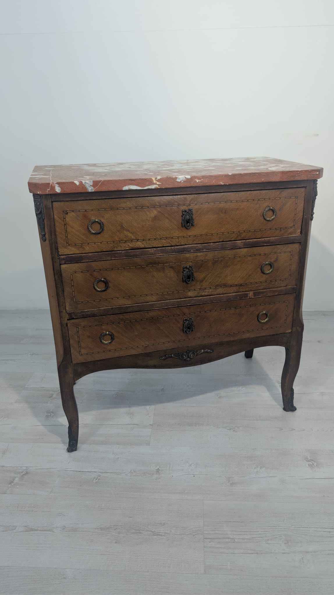 Komoda antyczna w stylu neorokokowym z czerwonym marmurem