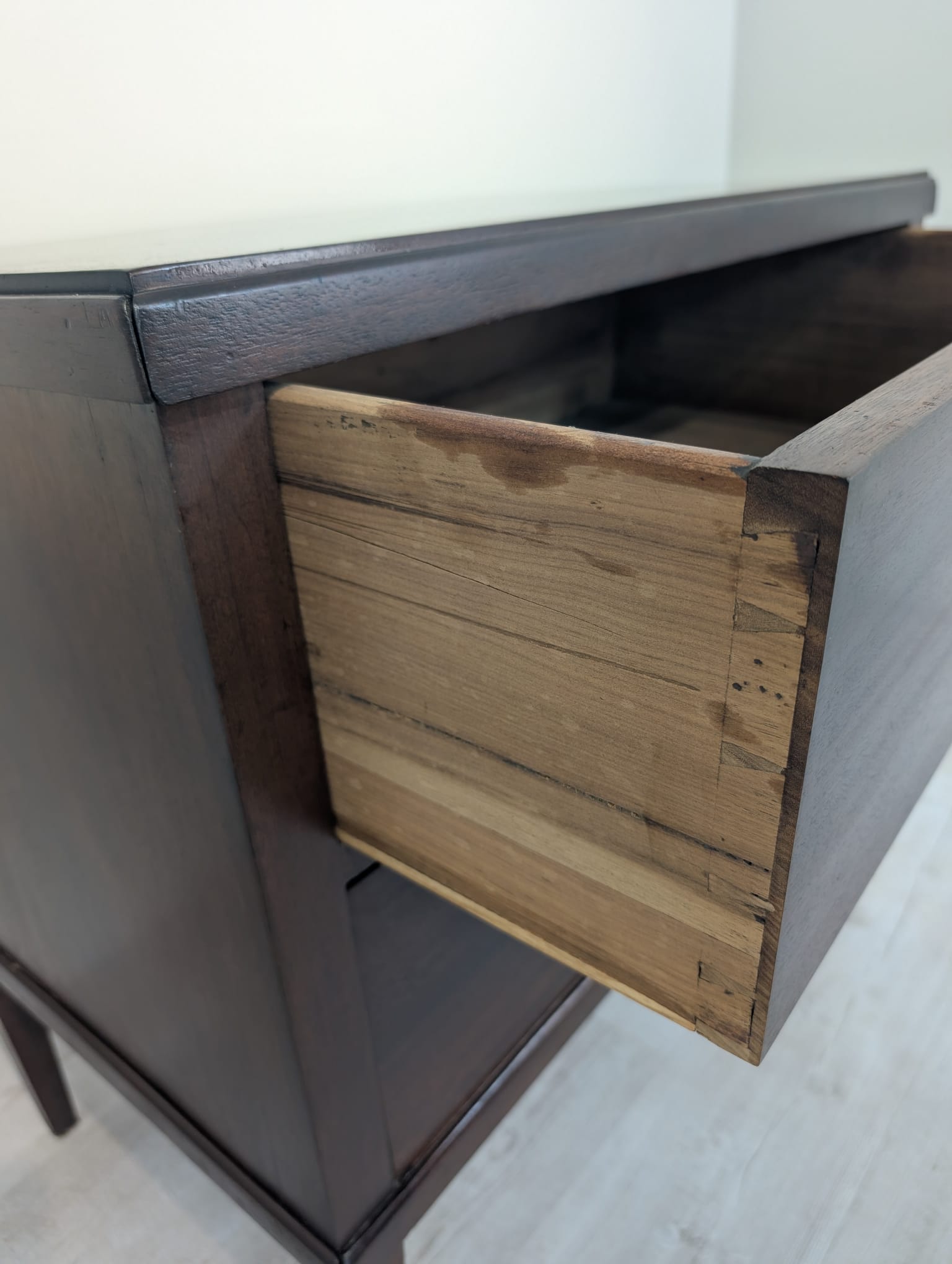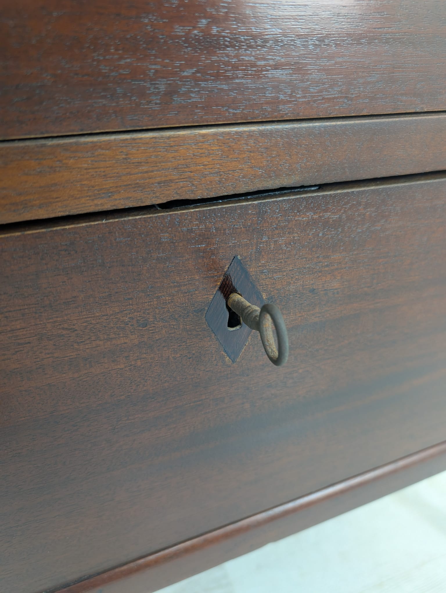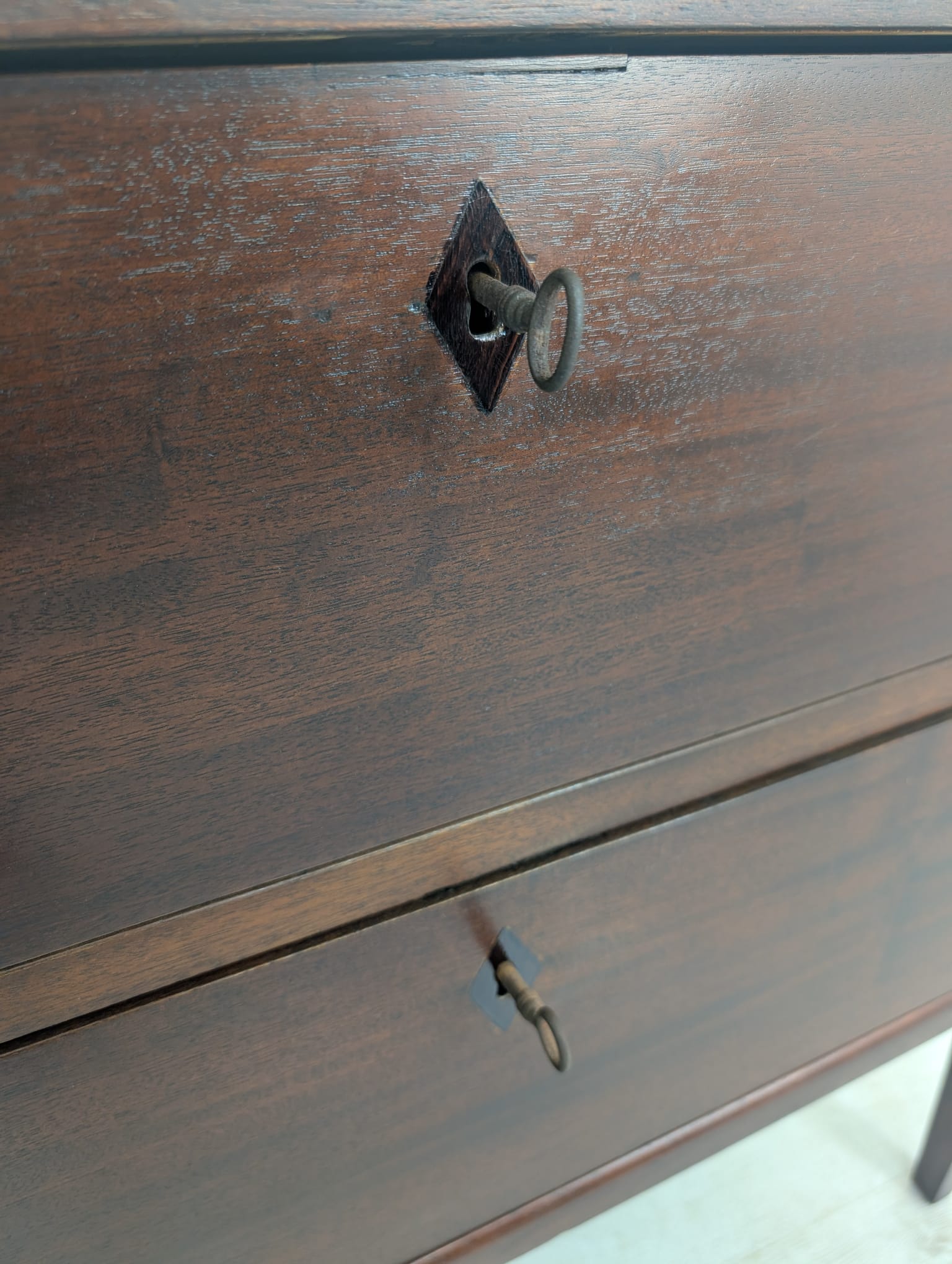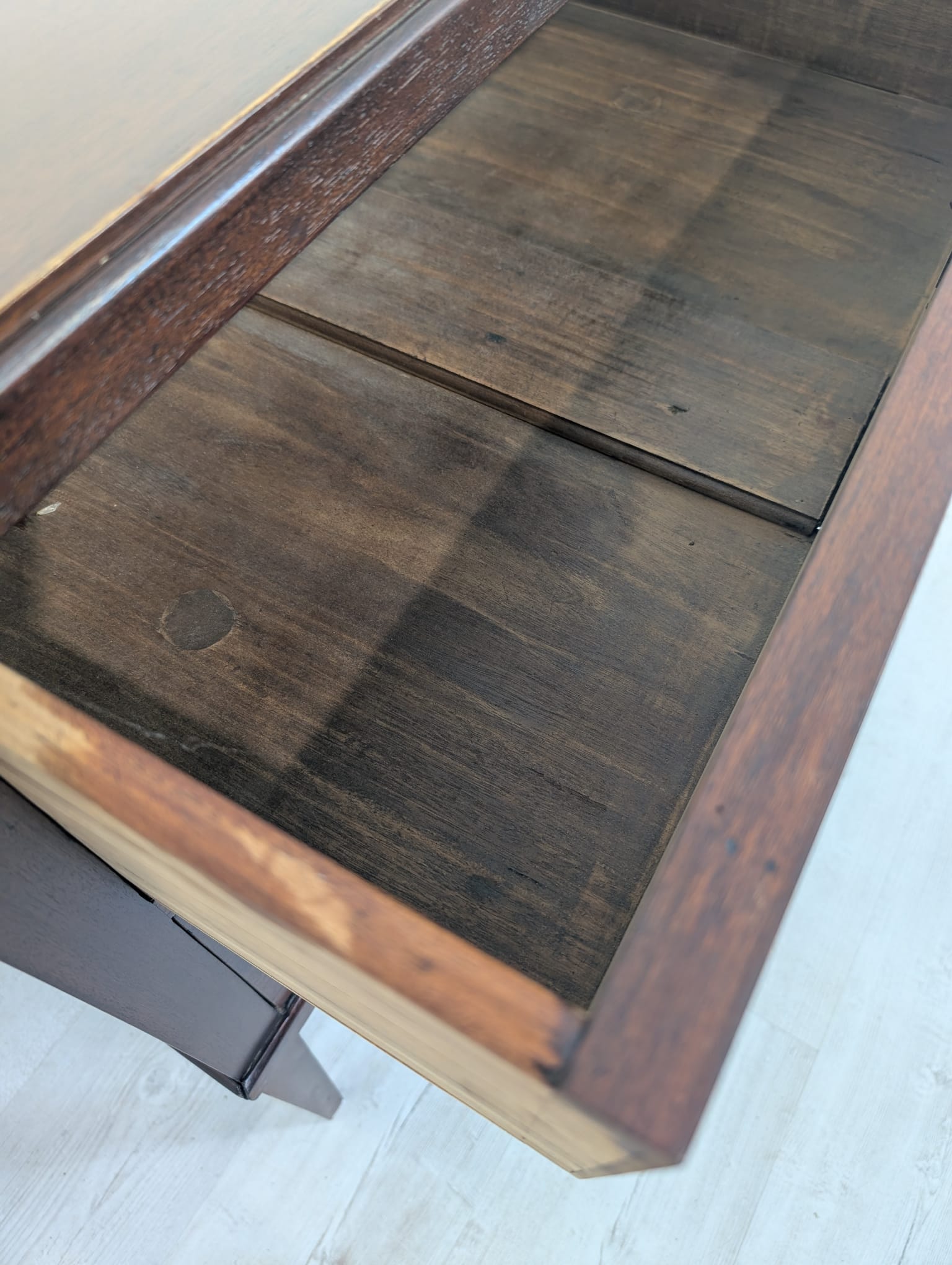 Piękna patyna z drewna orzechowego o ciepłym odcieniu.