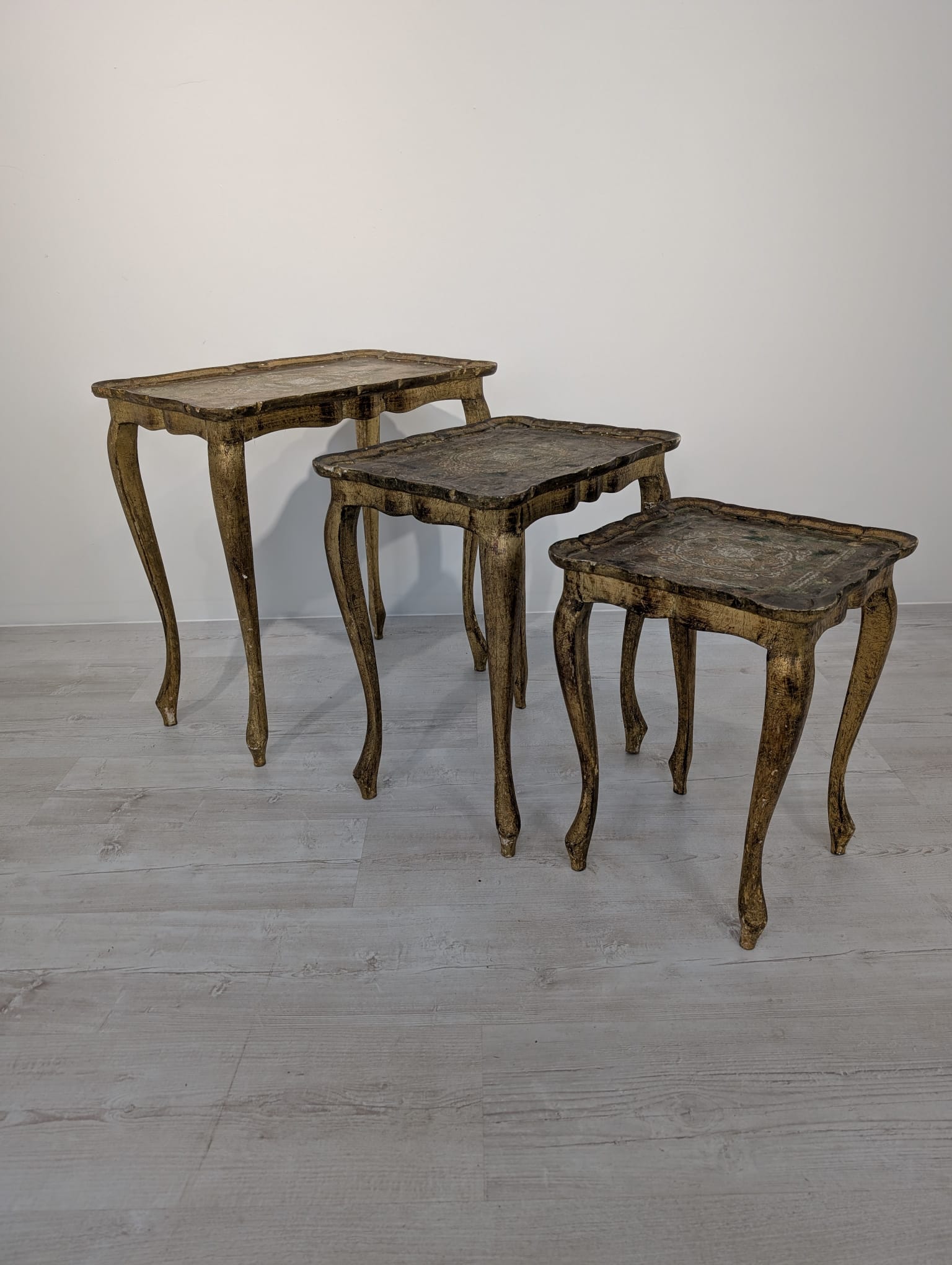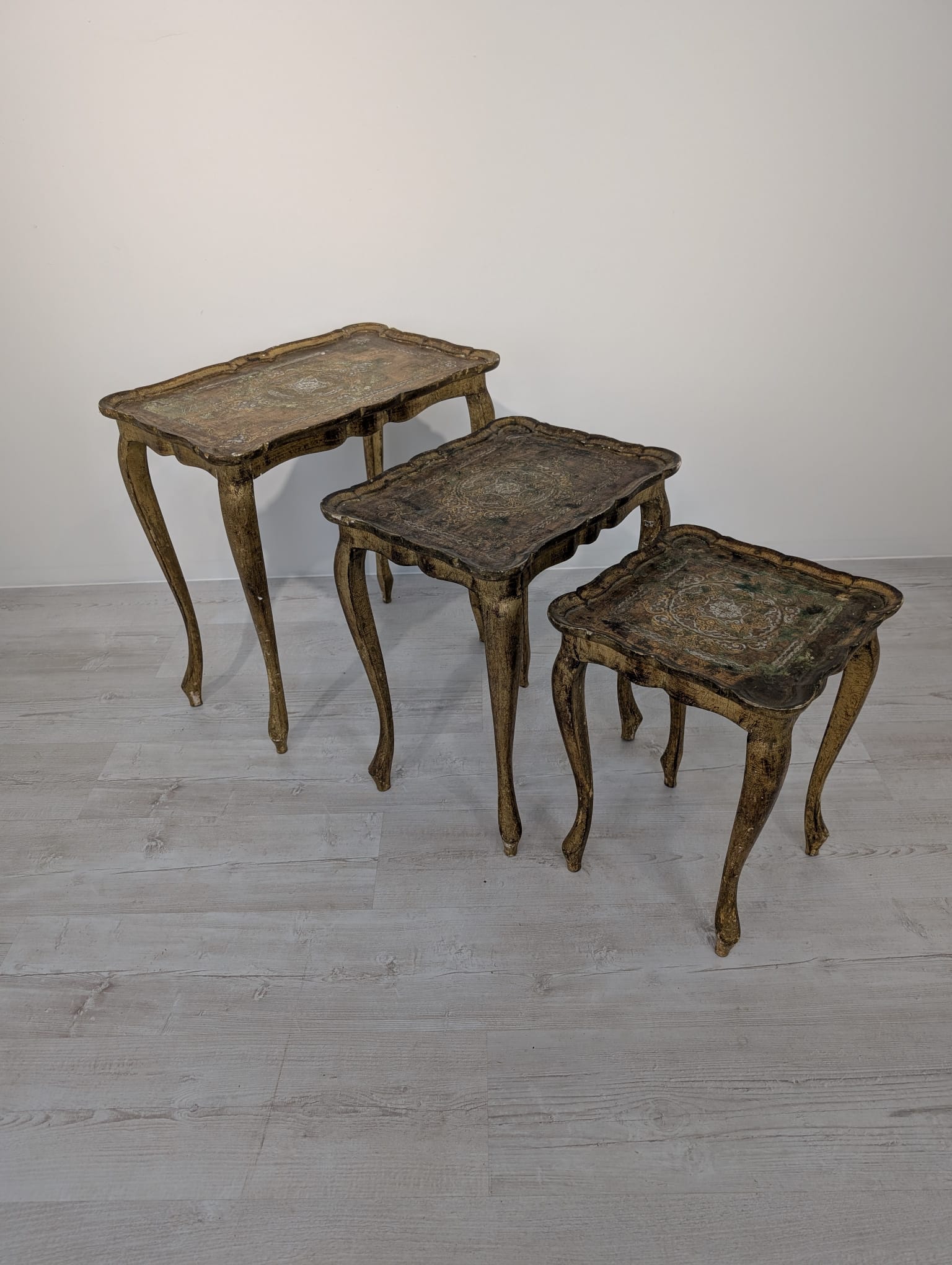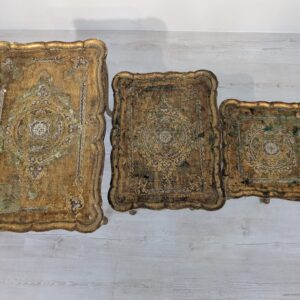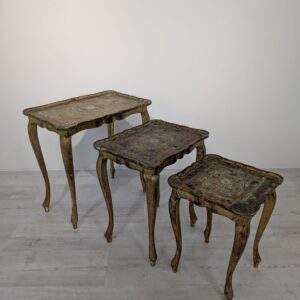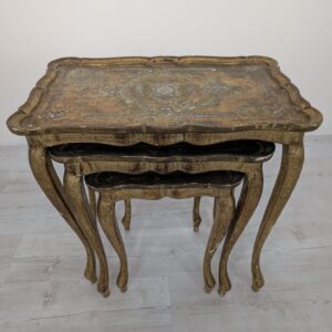 Komplet Stolików Trojaki drewniane złocone w Ludwiku