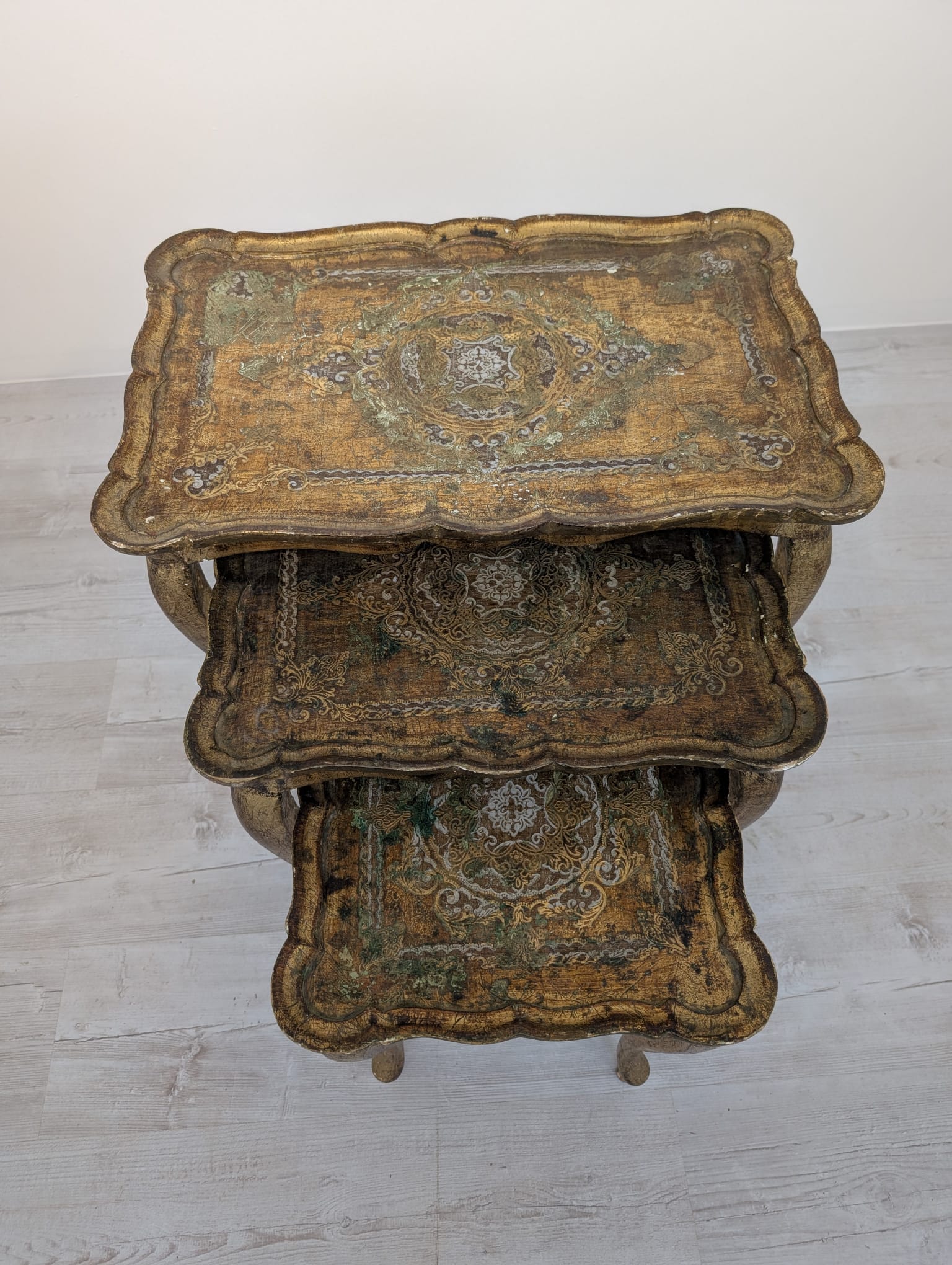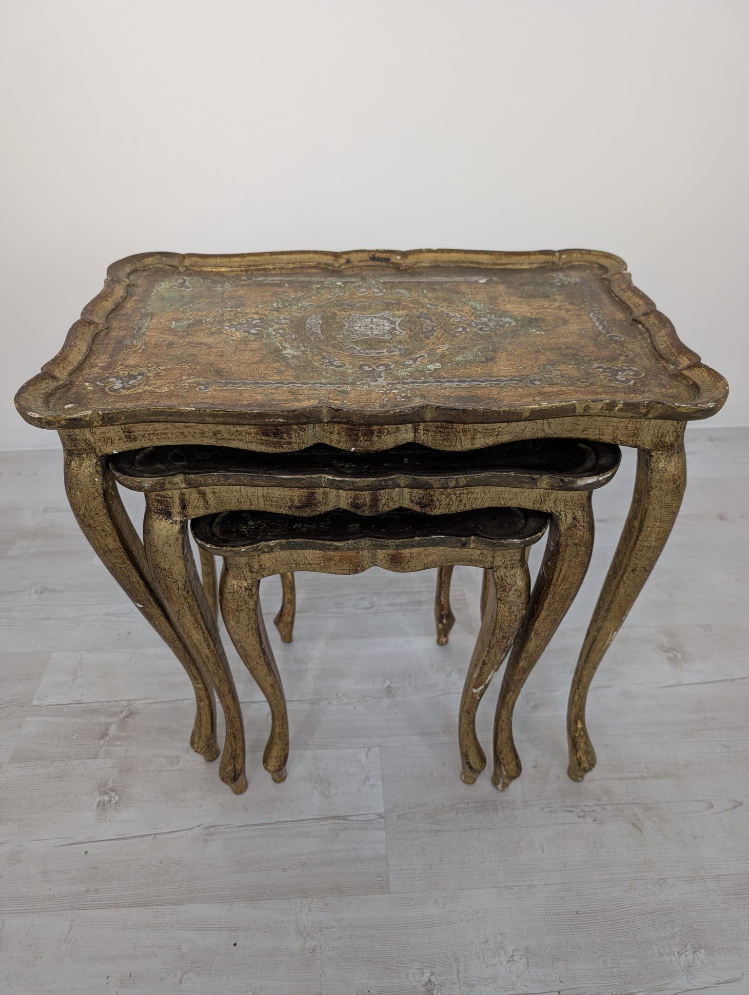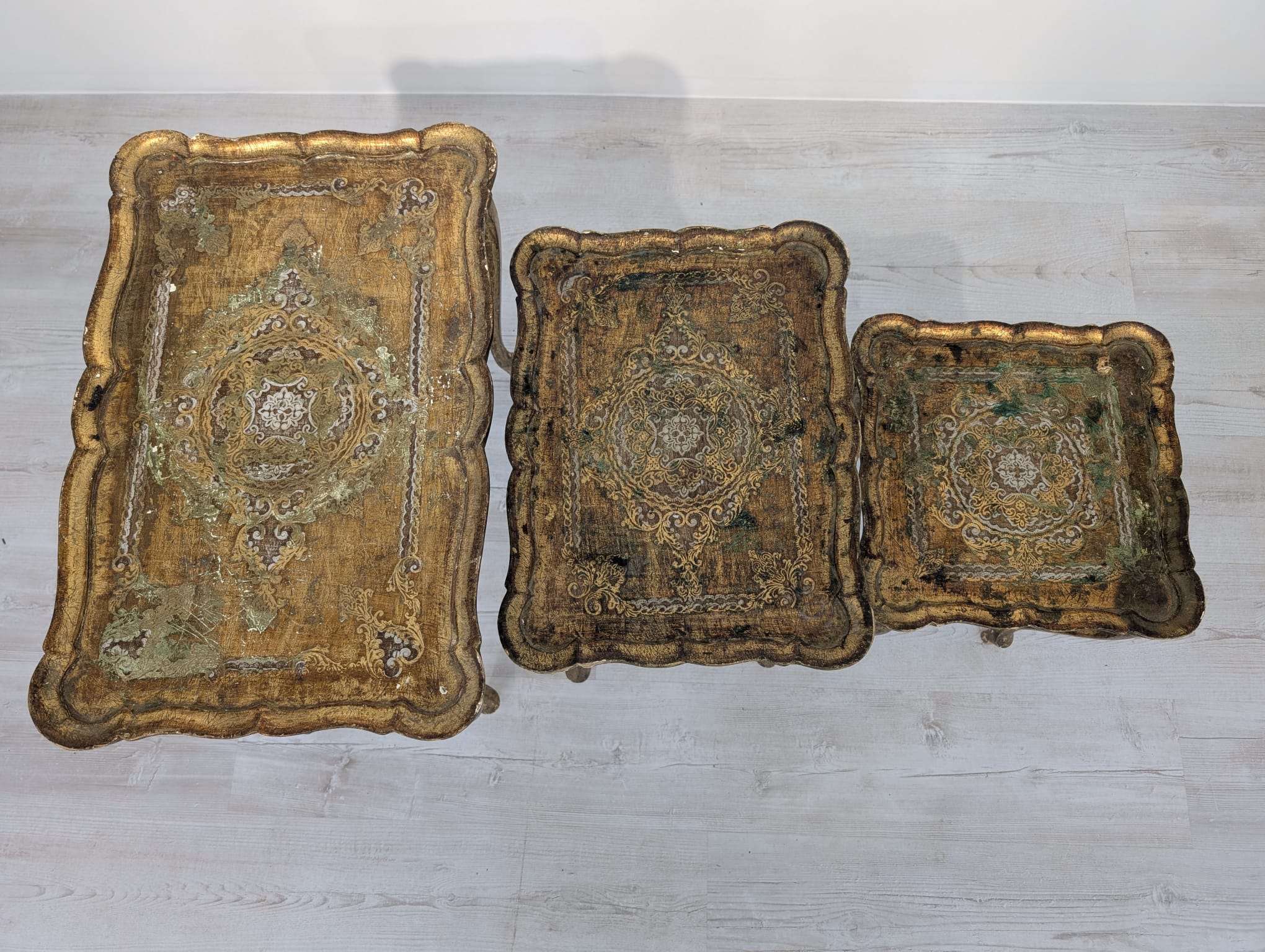 Komplet Stolików Trojaki drewniane złocone w Ludwiku