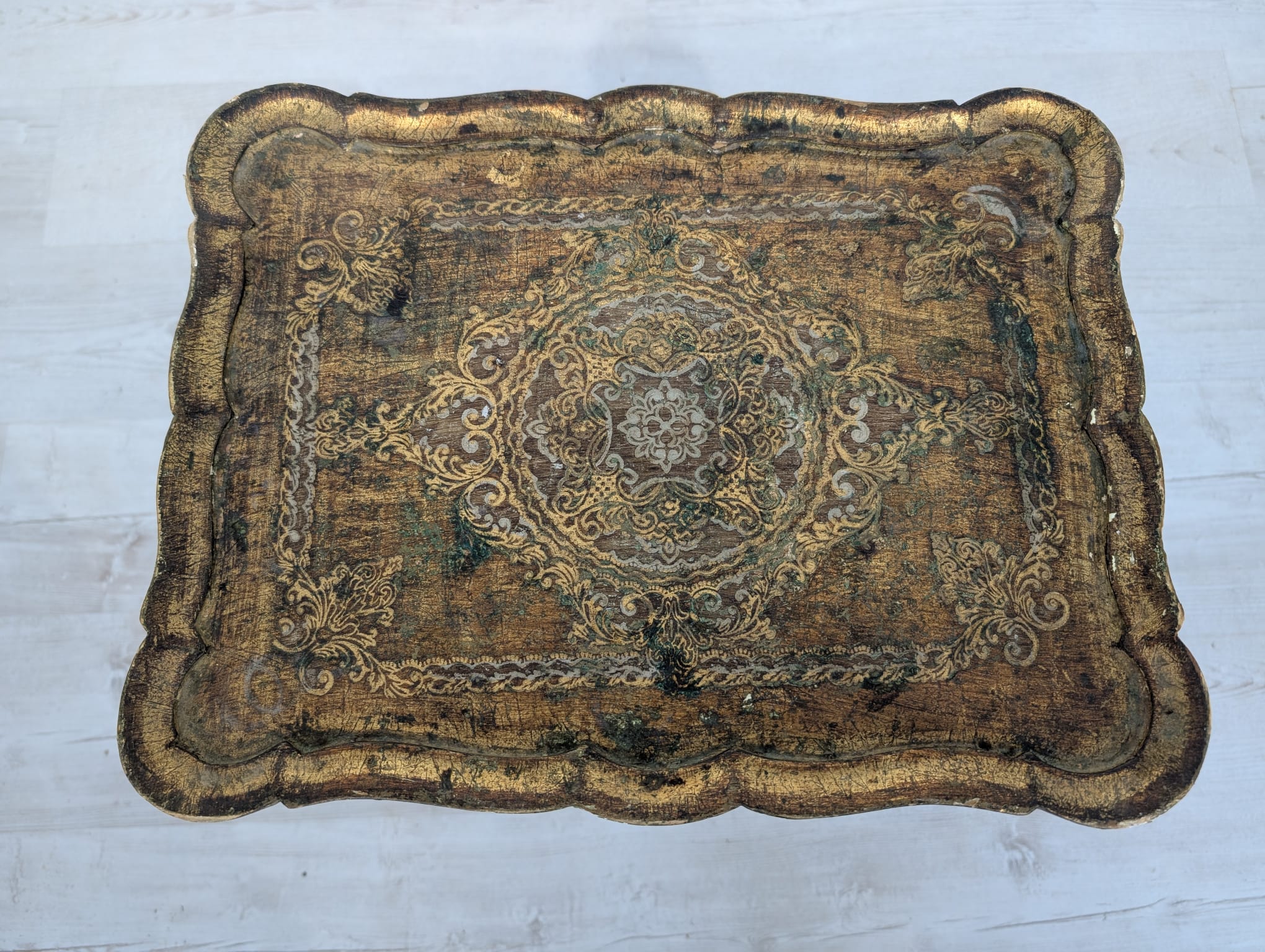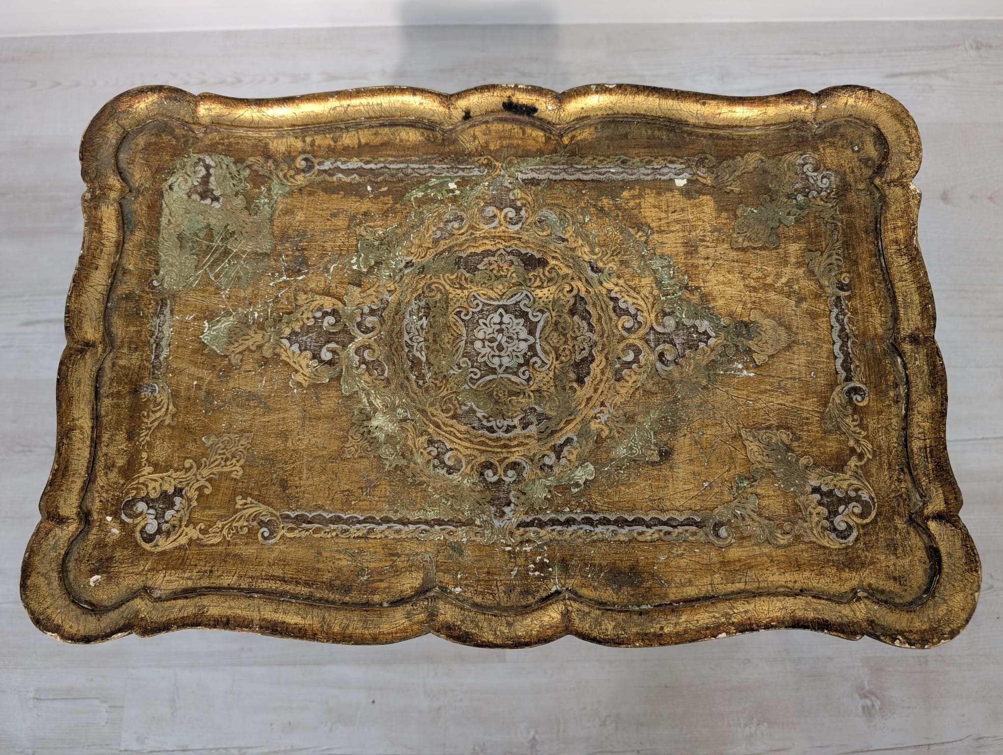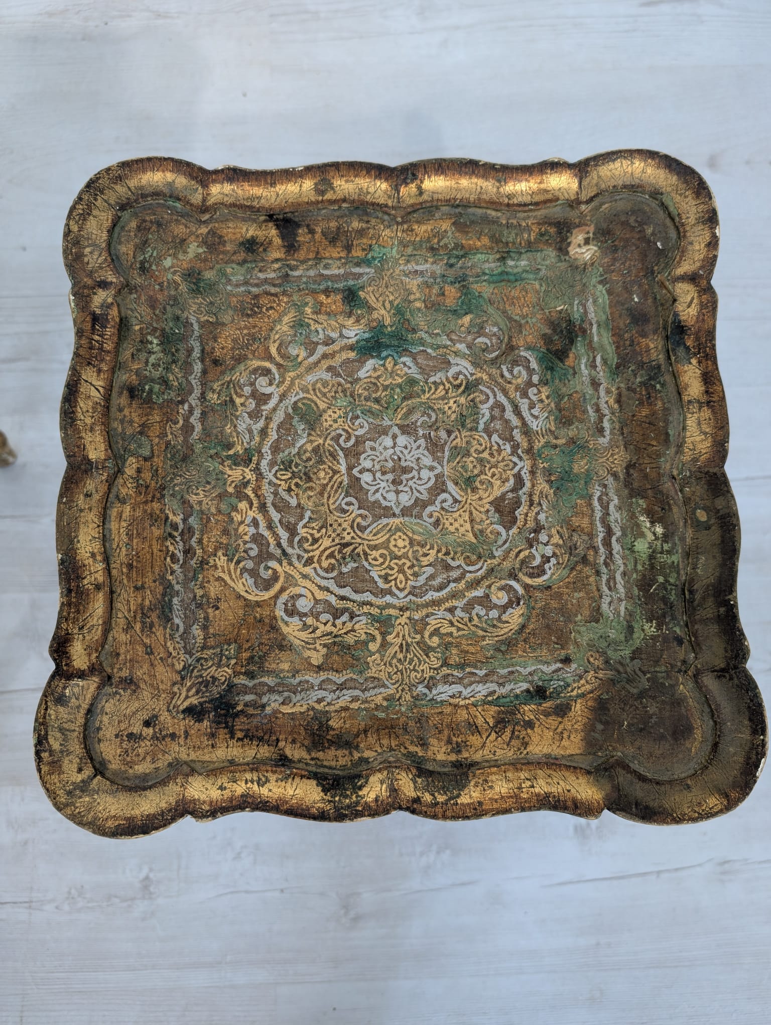 Stoliki drewniane w stylu ludwikowskim, złocone.