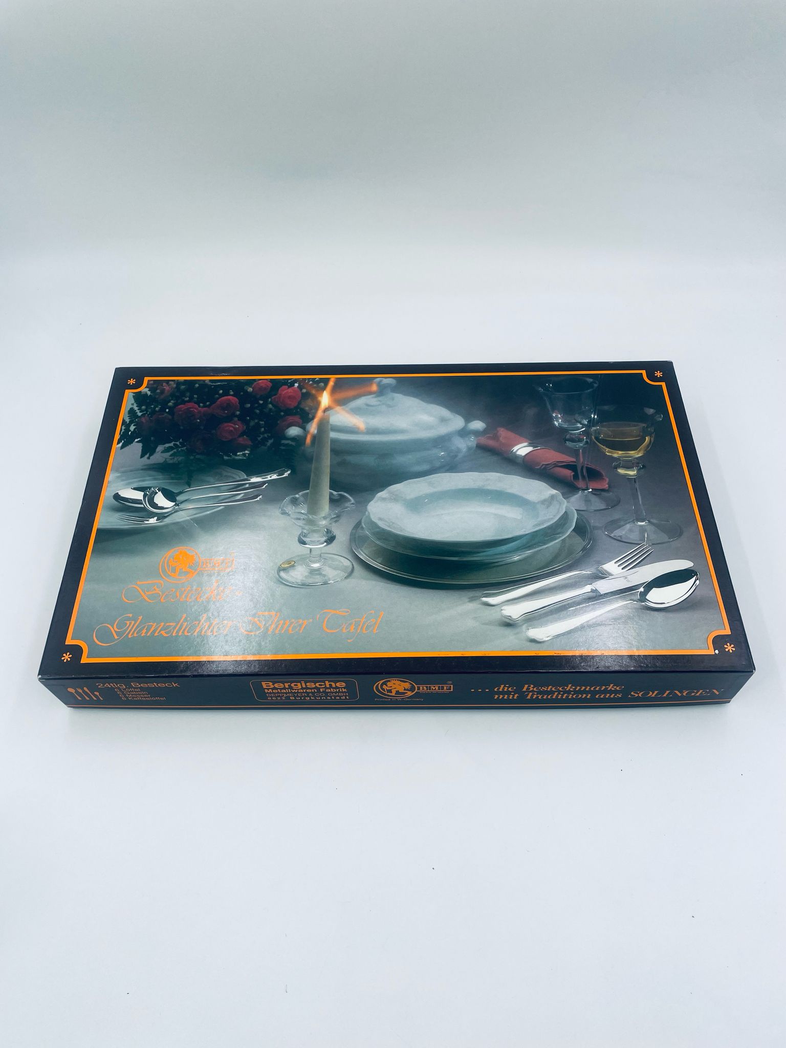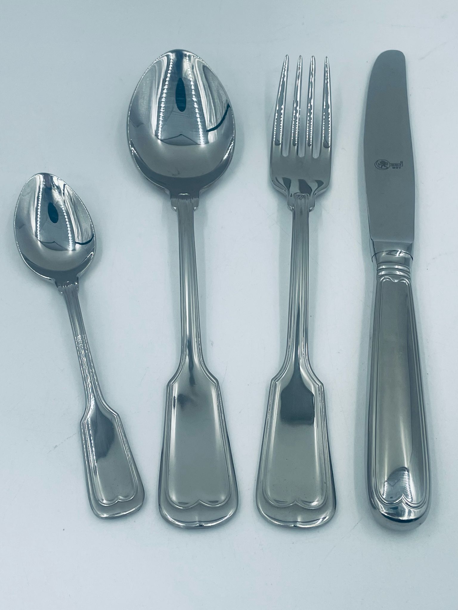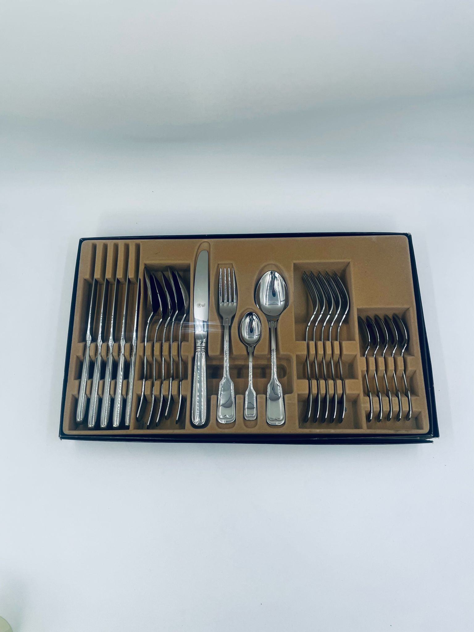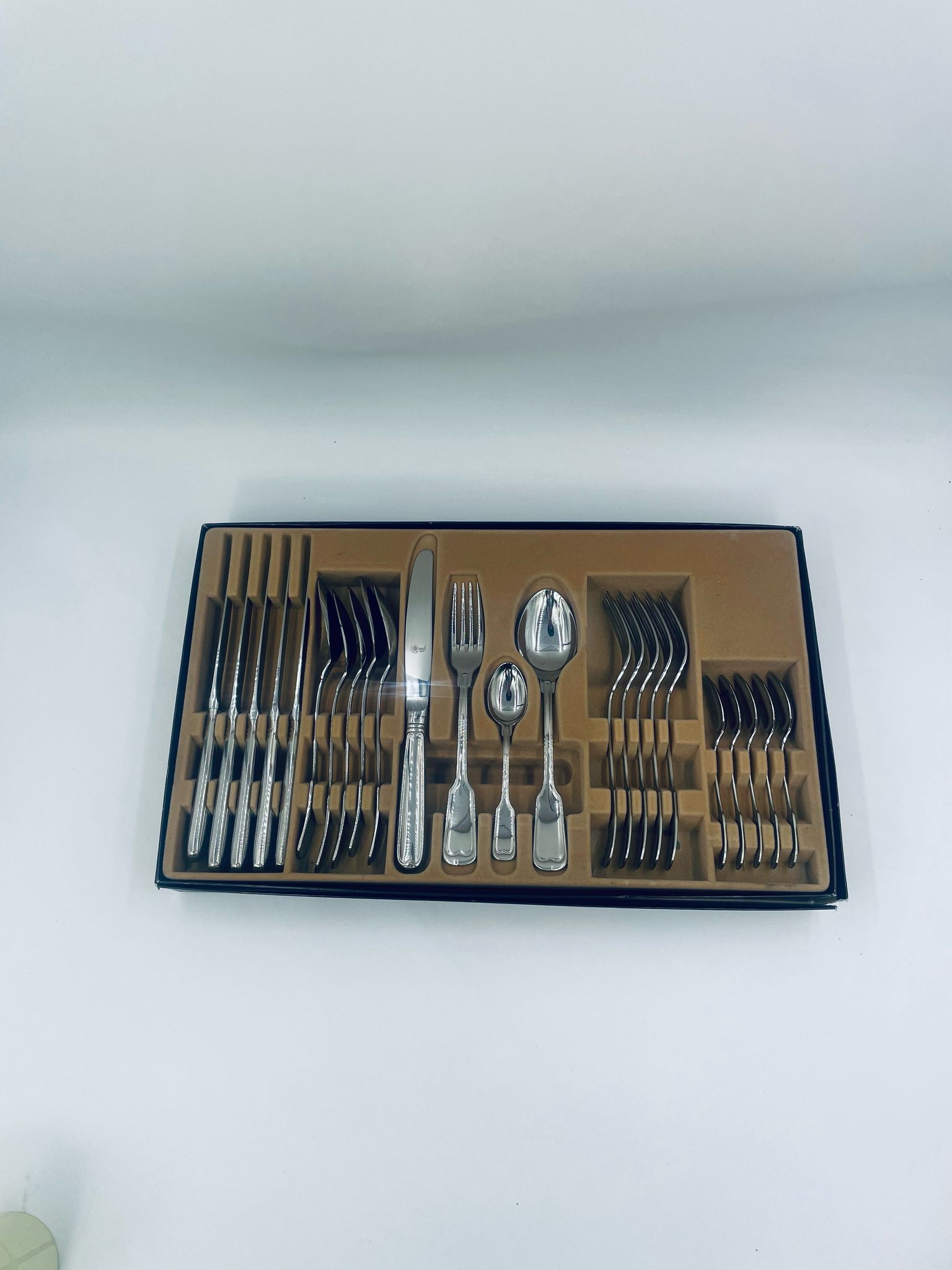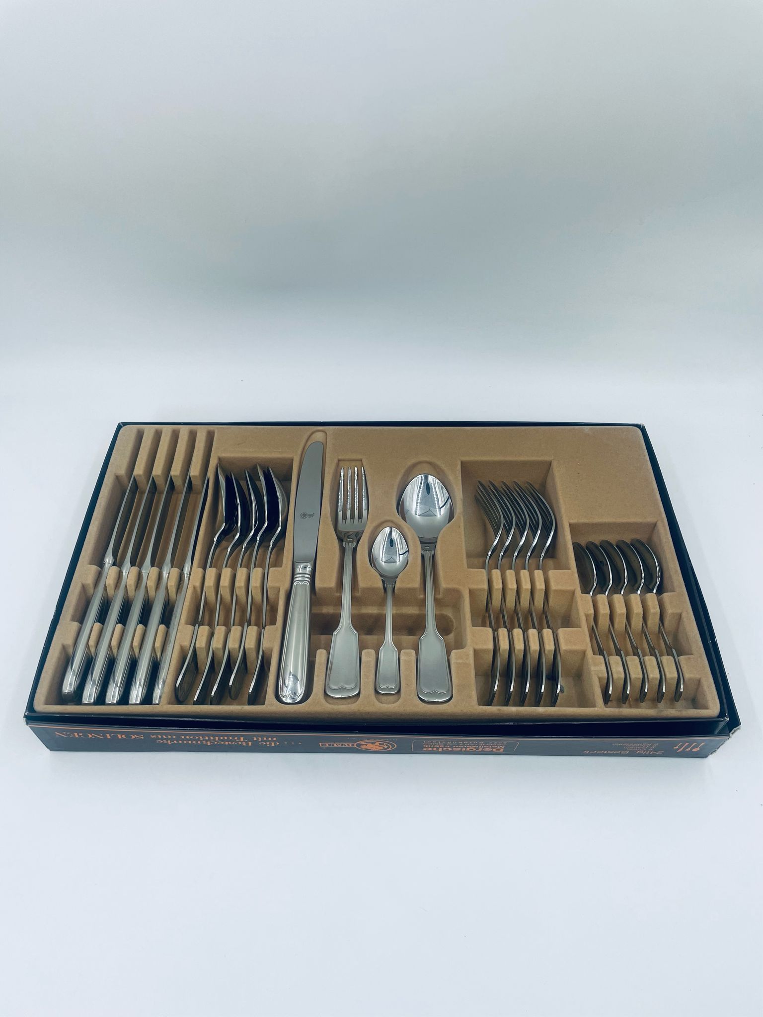 Komplet sztućców dla 6 osób ze stali nierdzewnej firmy BMF składającego z z 24 elementów.