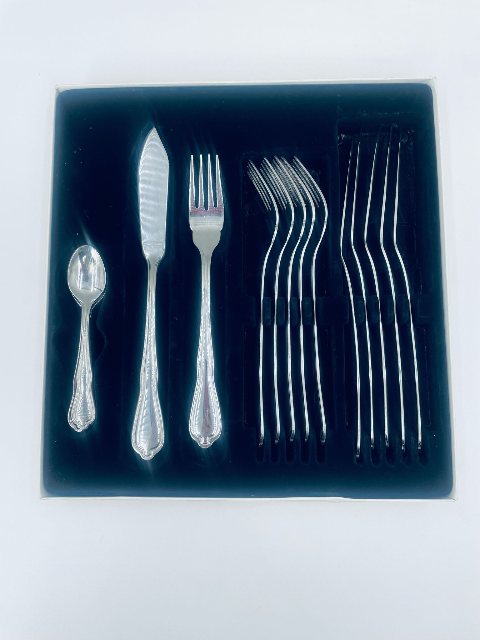 Komplet sztućców dla 6 osób ze stali nierdzewnej firmy Nivella Rosttela składającego z z 18 elementów.