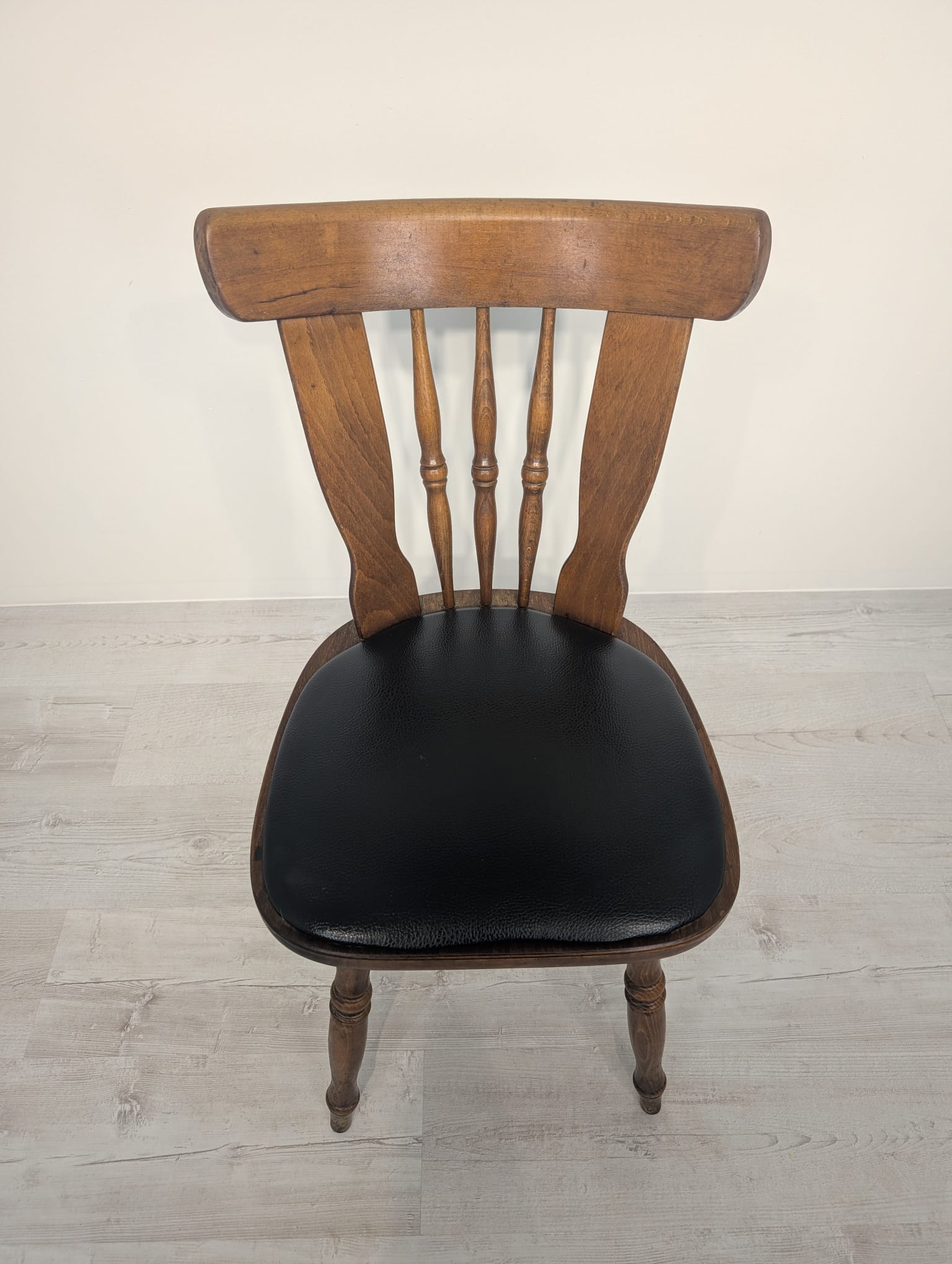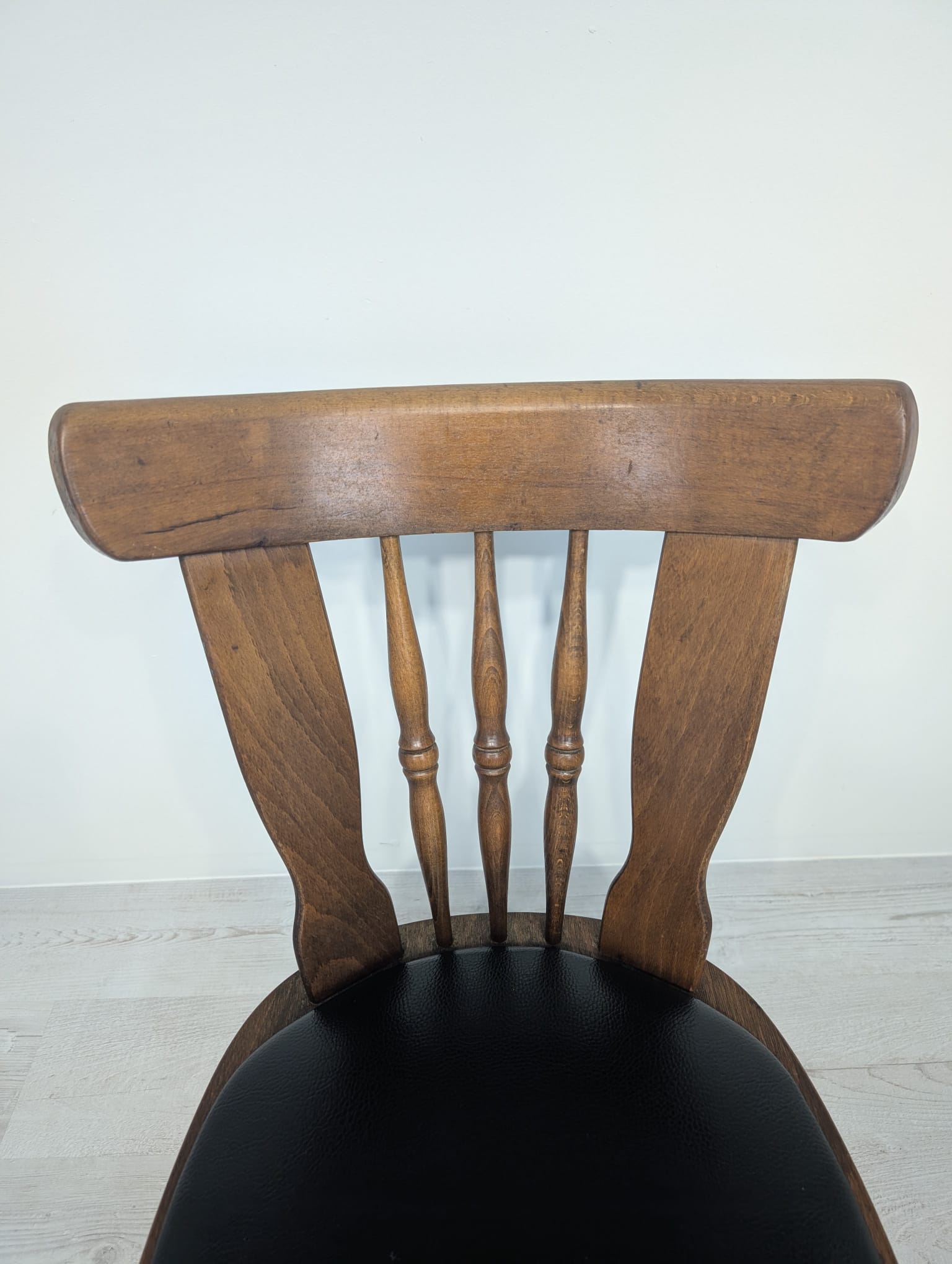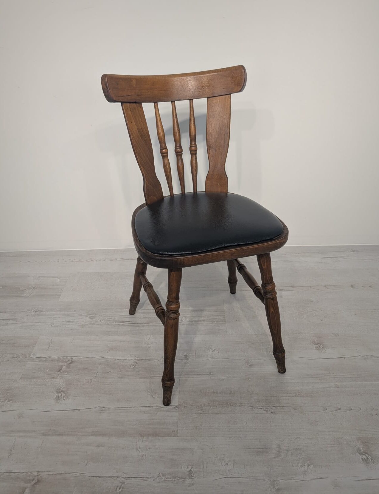 Krzesło bukowe ze skórą z lat 60/70-tych