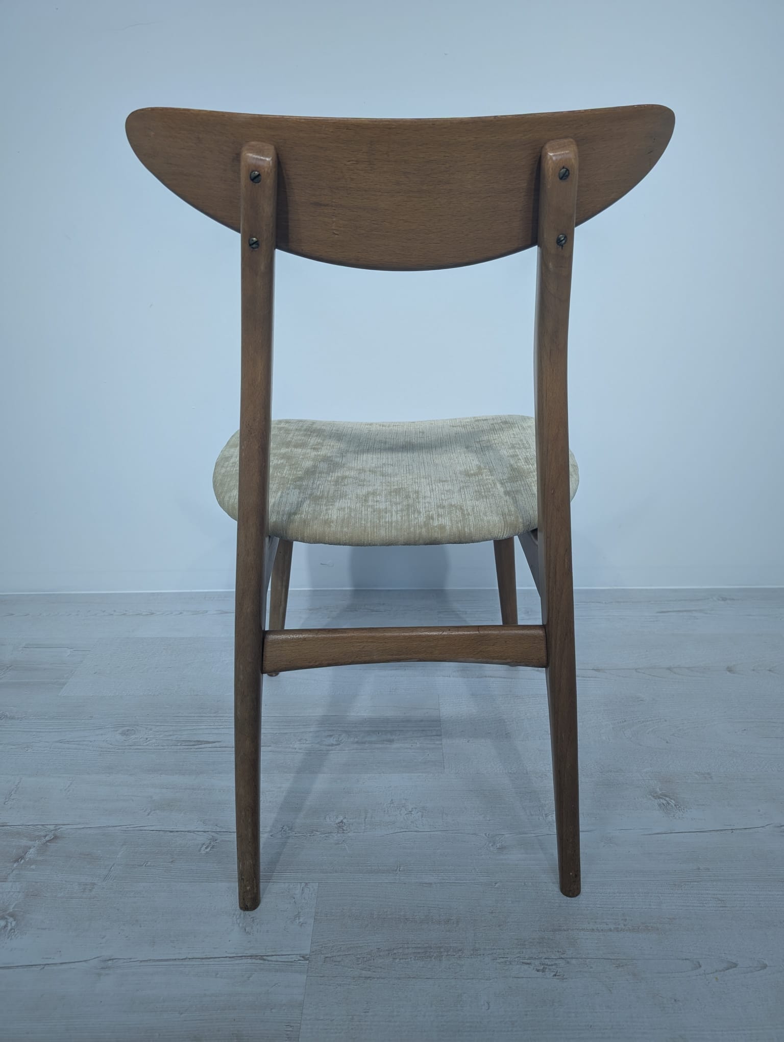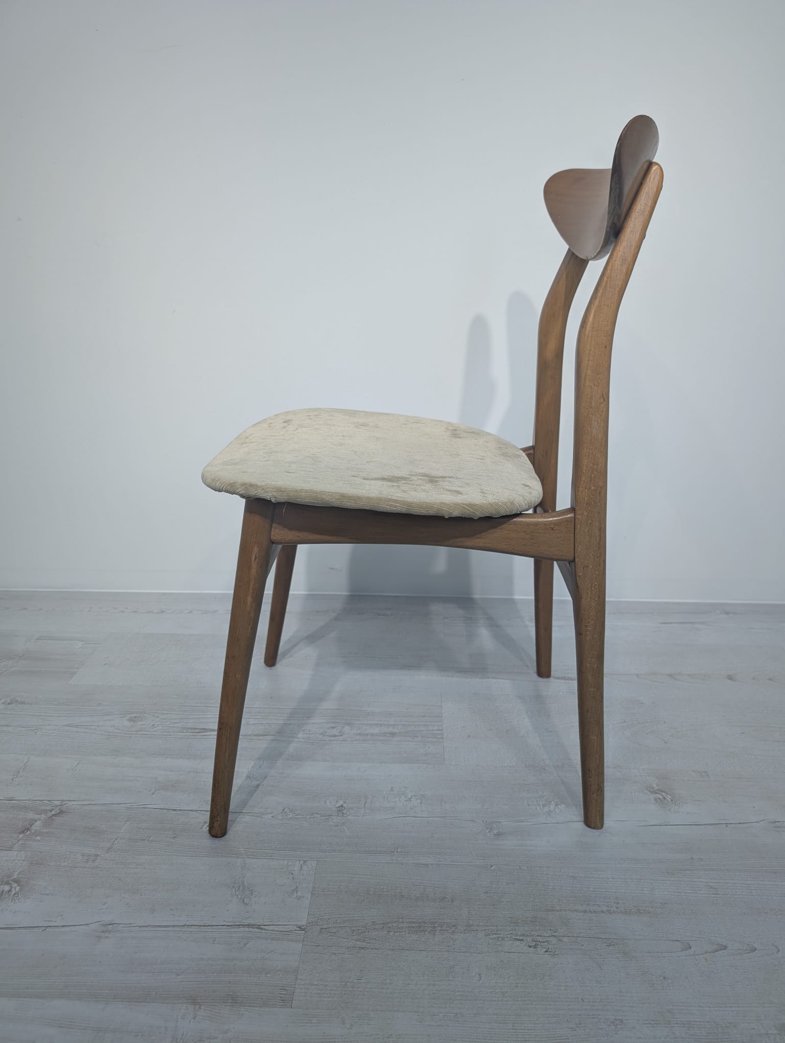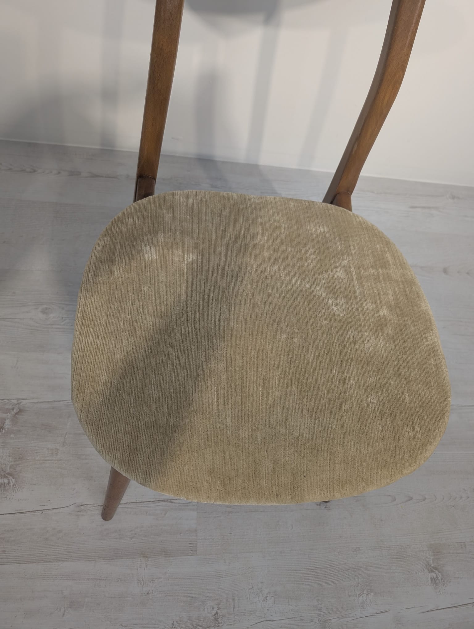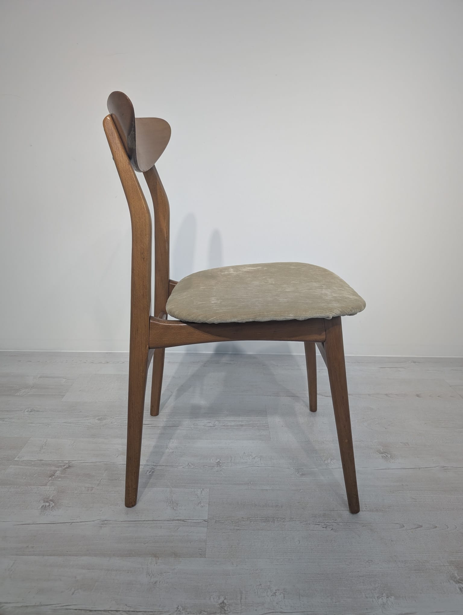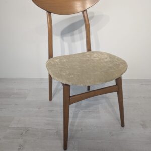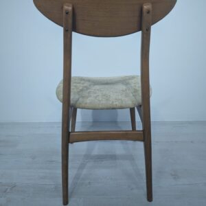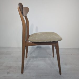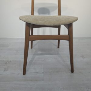 Krzesło wykonane z drewna tekowego pokrytego materiałową tapicerką.