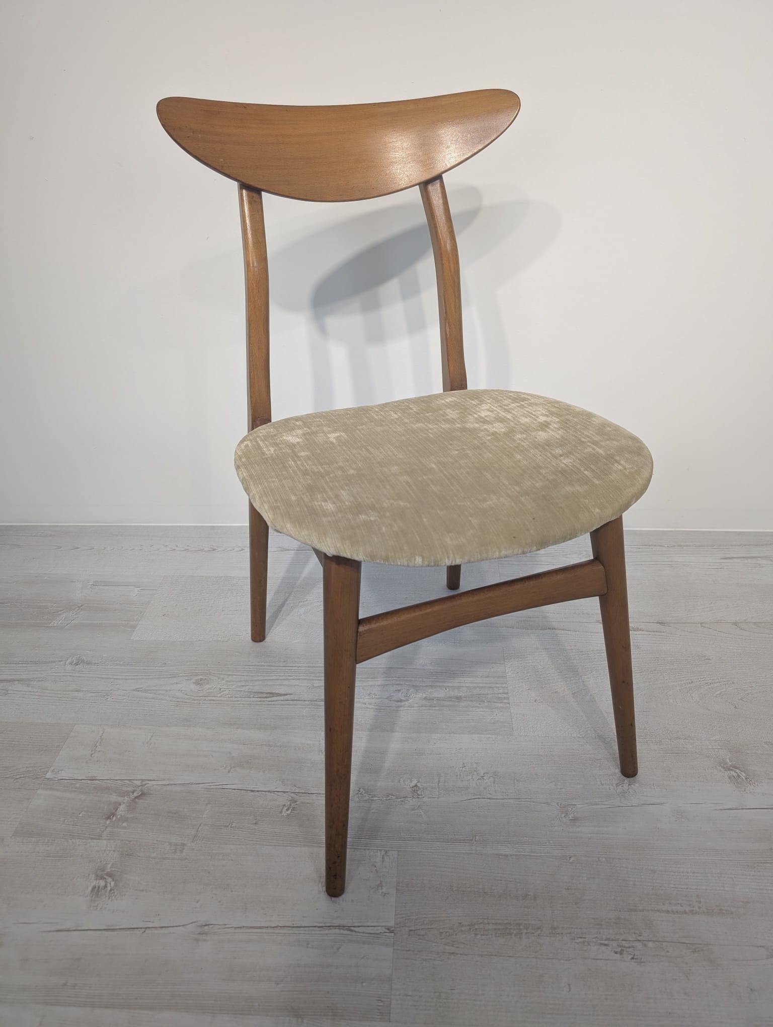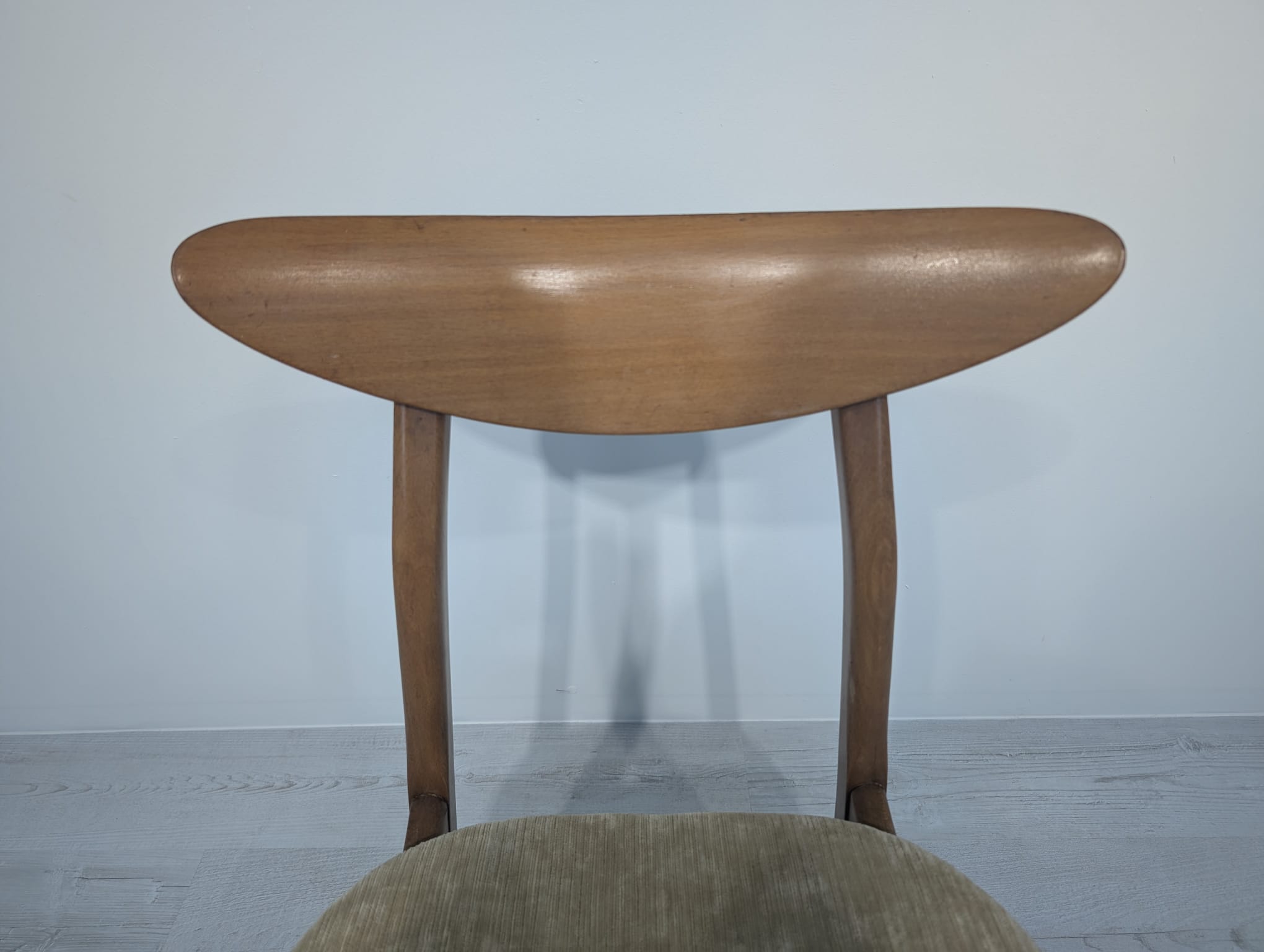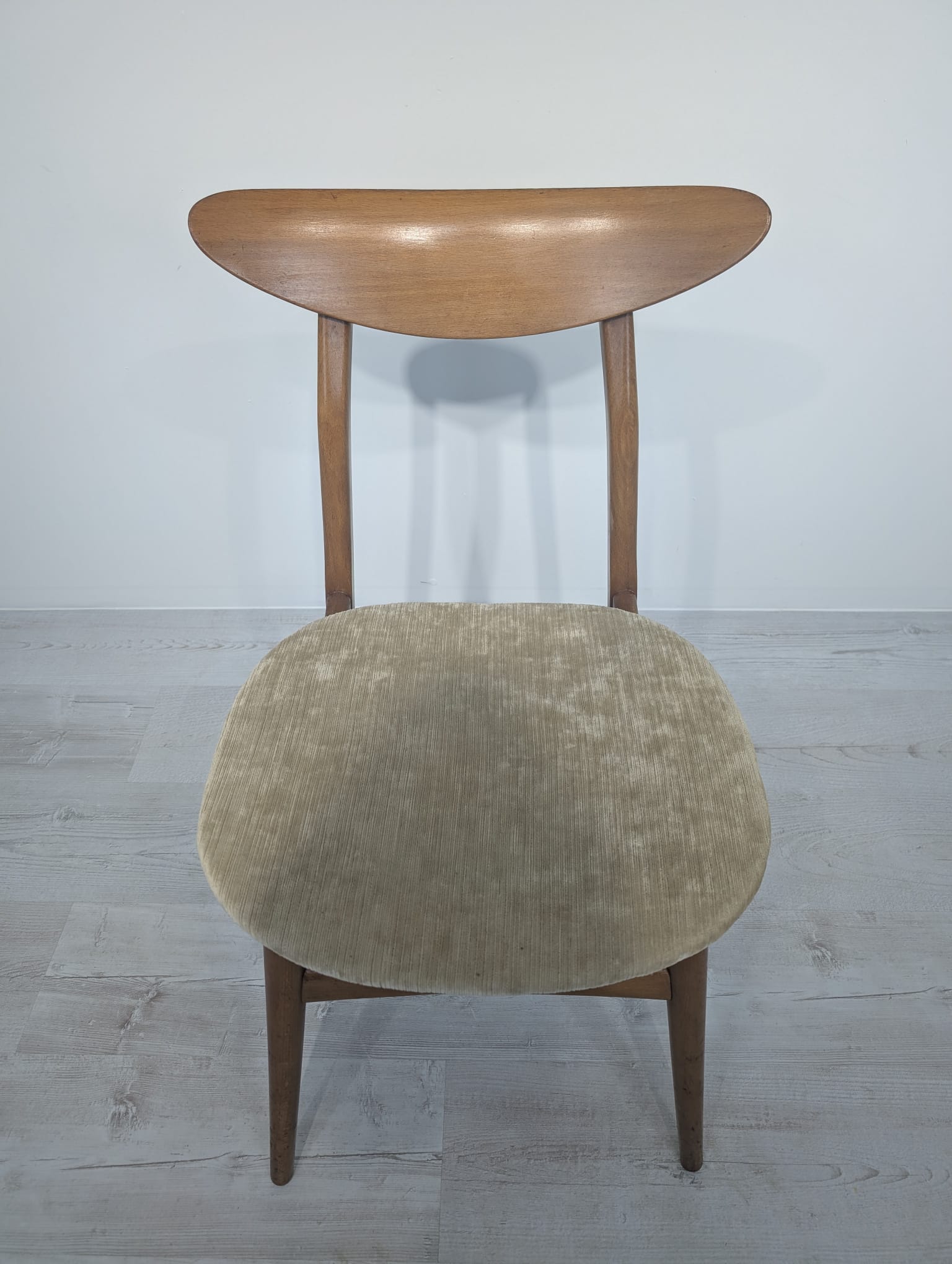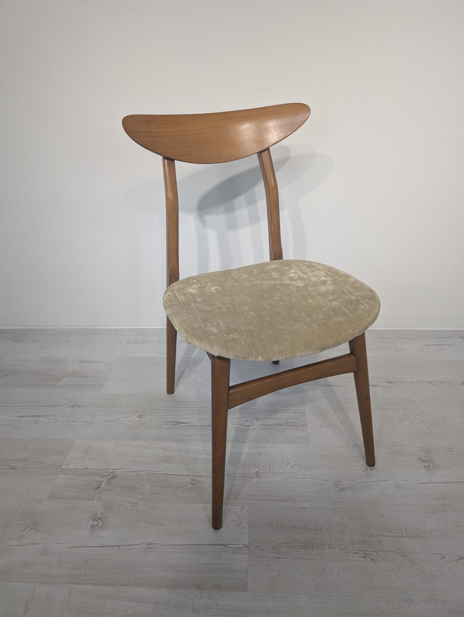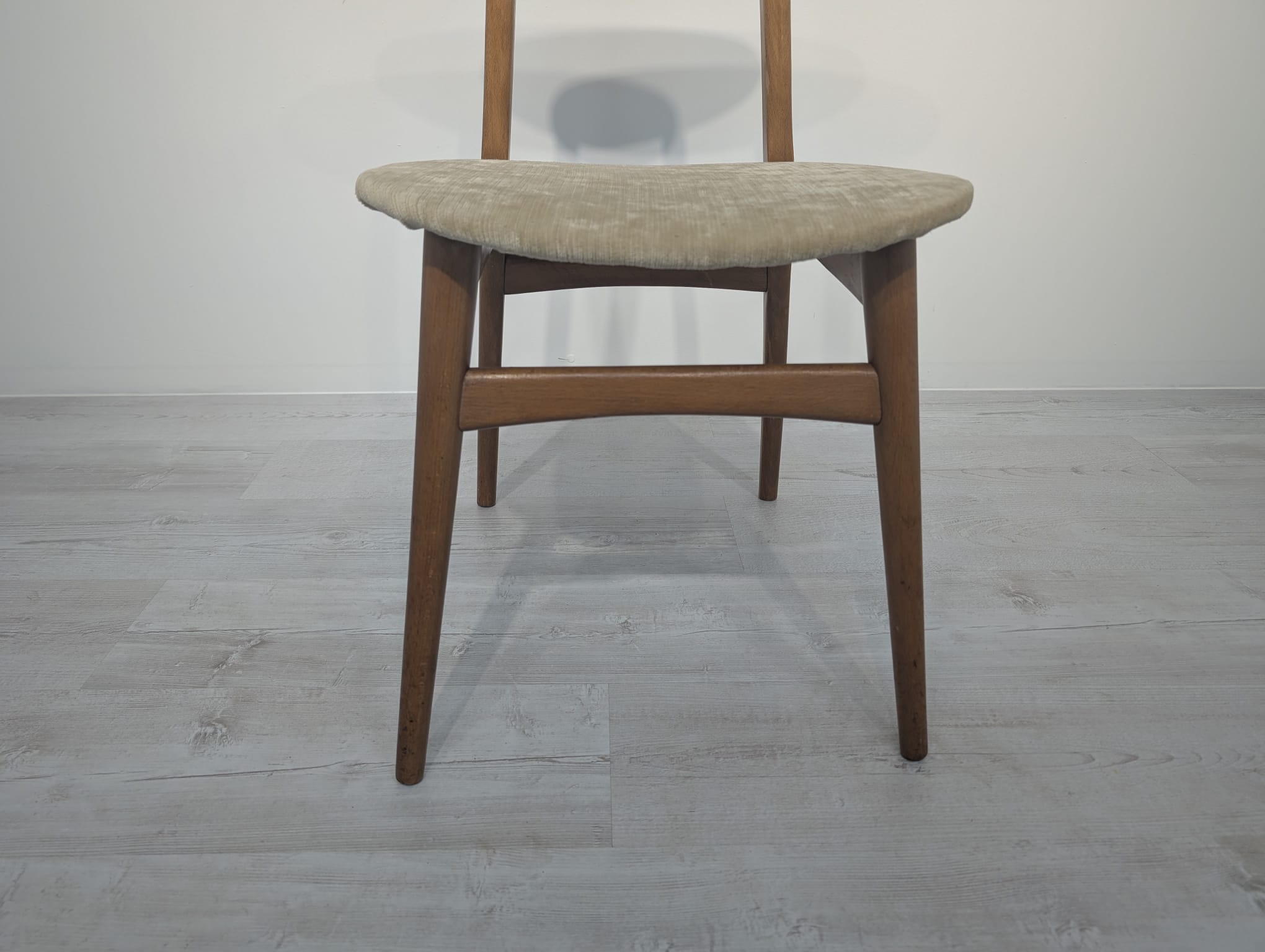 Krzesło wykonane z drewna tekowego pokrytego materiałową tapicerką.