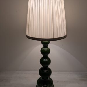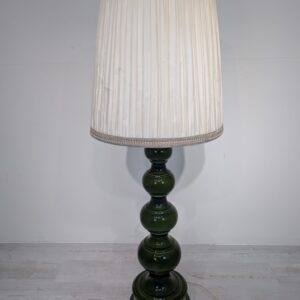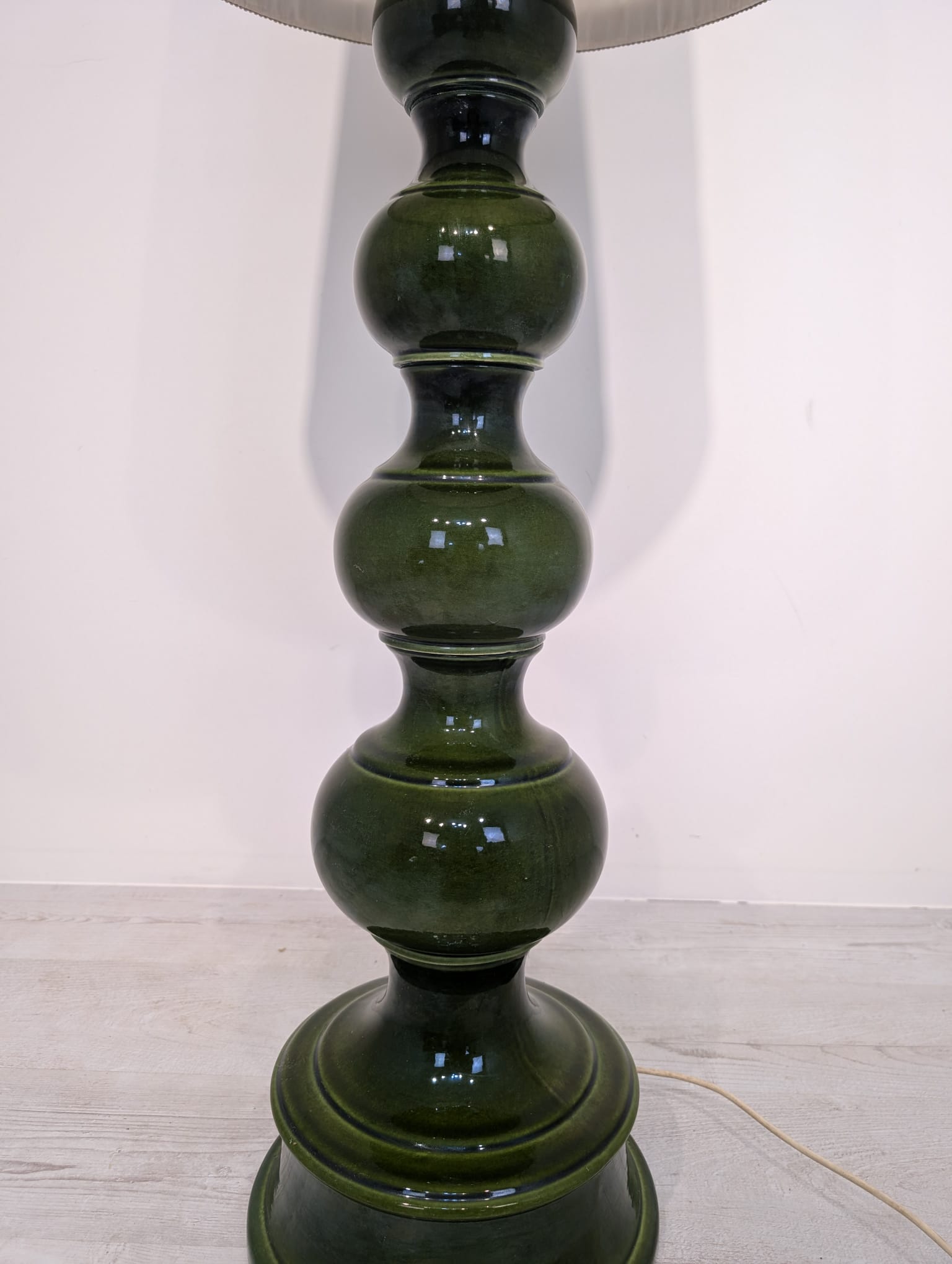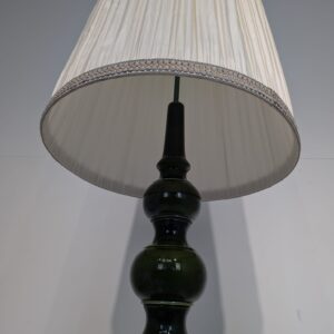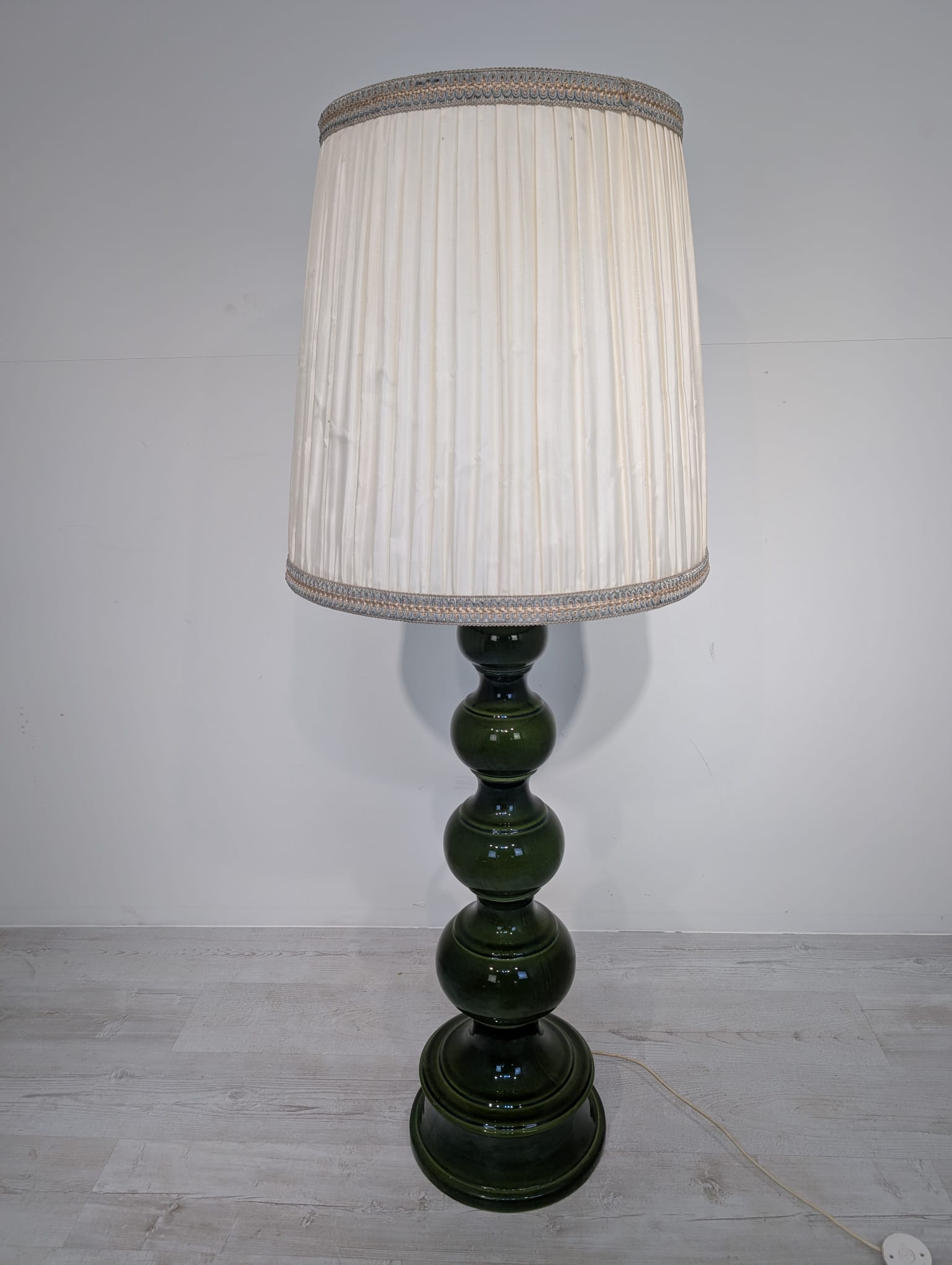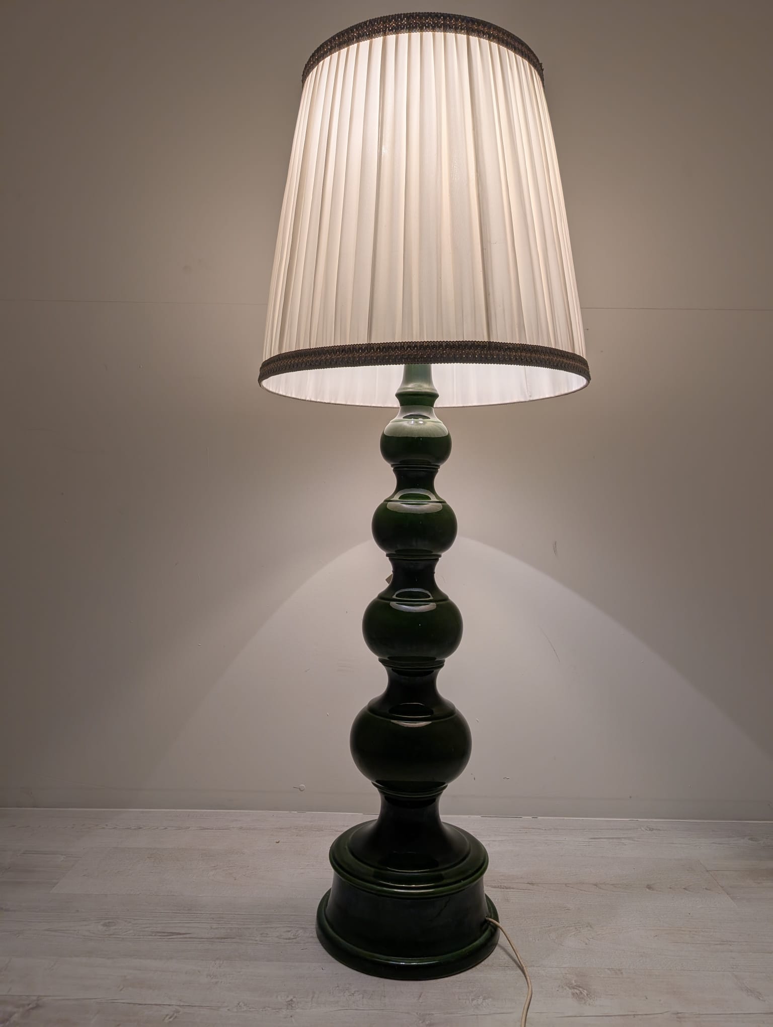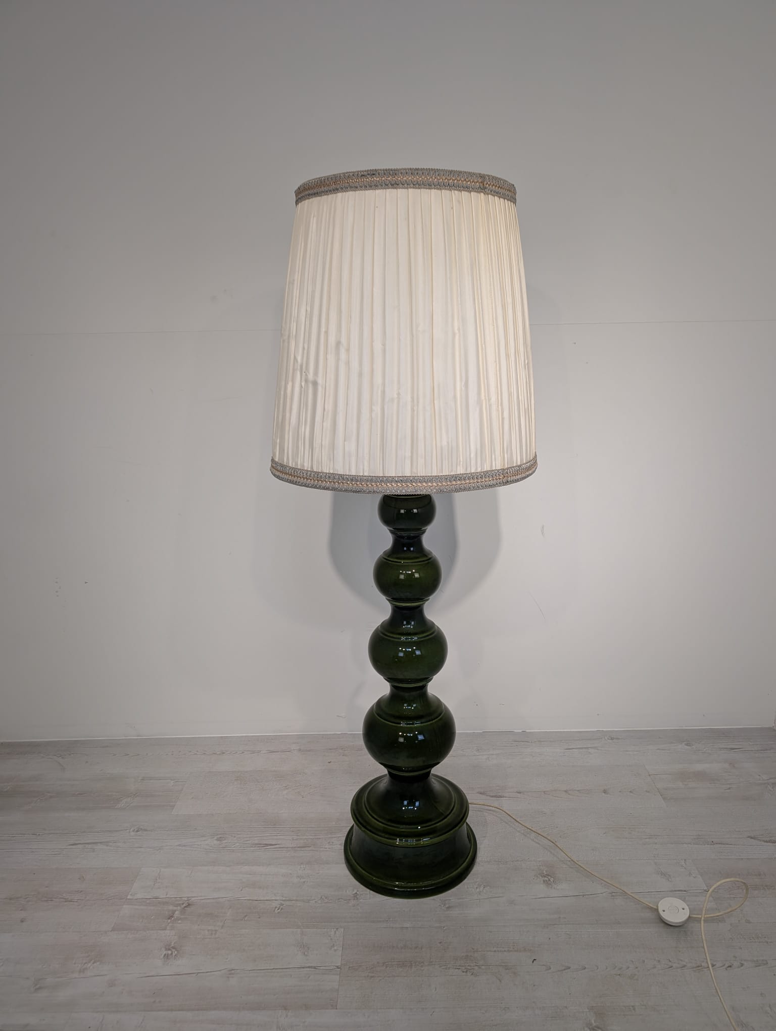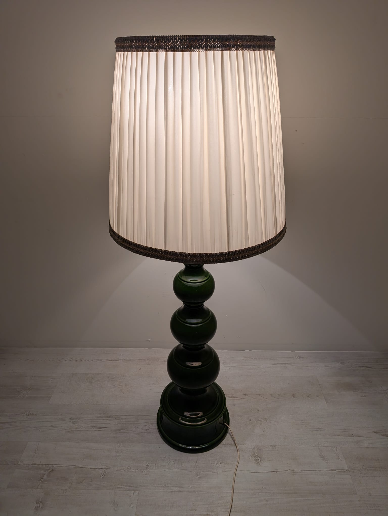 Stylowy, vintage’owy lampka podłogowa z lat 60. Wykonana z ceramiki w kolorze zielonym, z dużym, plisowanym abażurem. Świetny dodatek do każdego wnętrza w stylu retro.