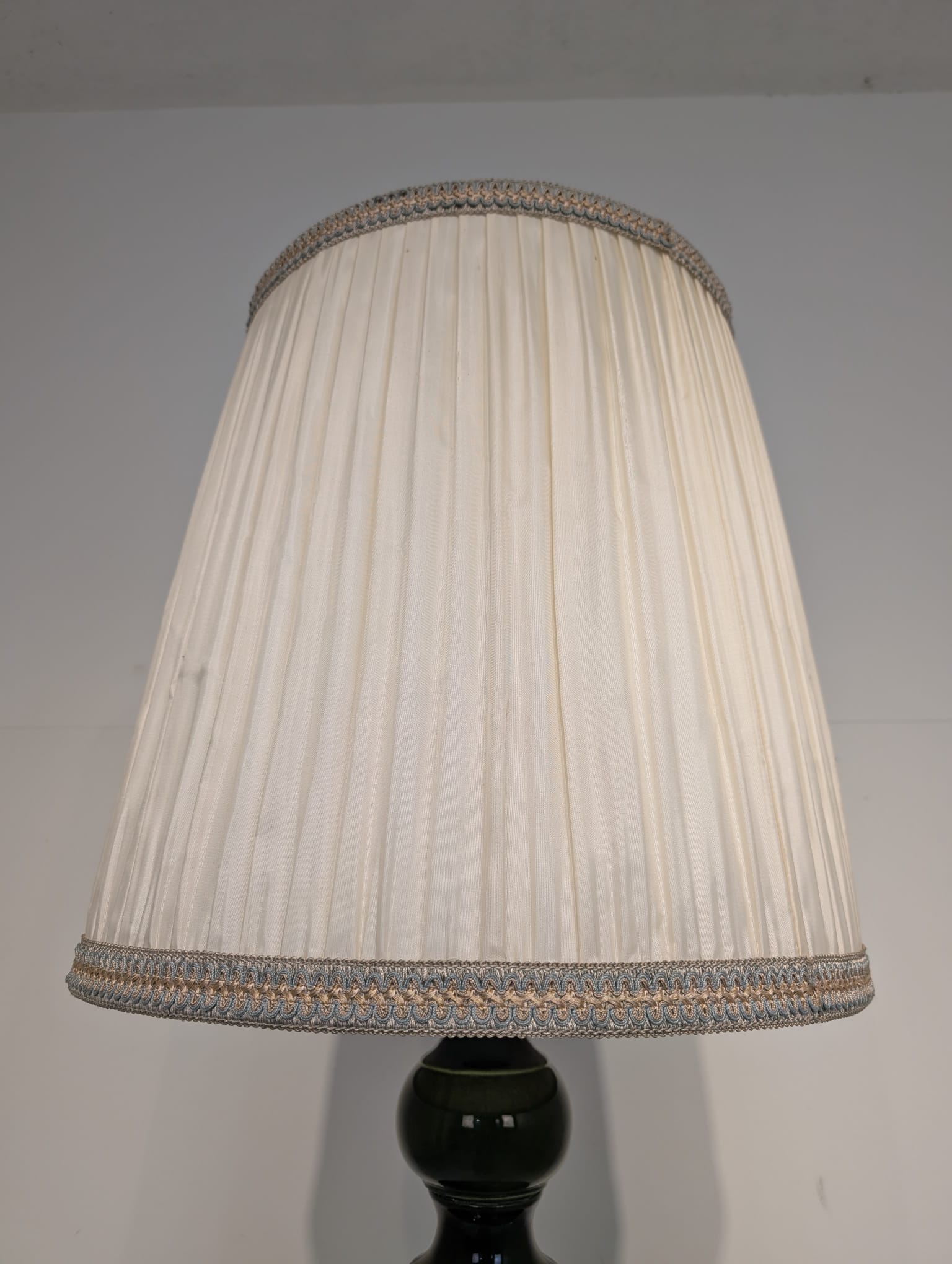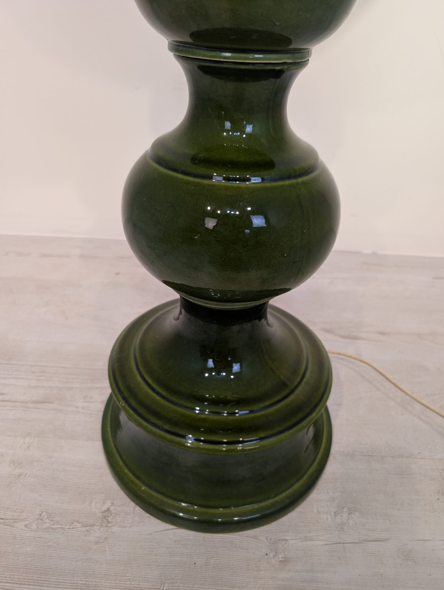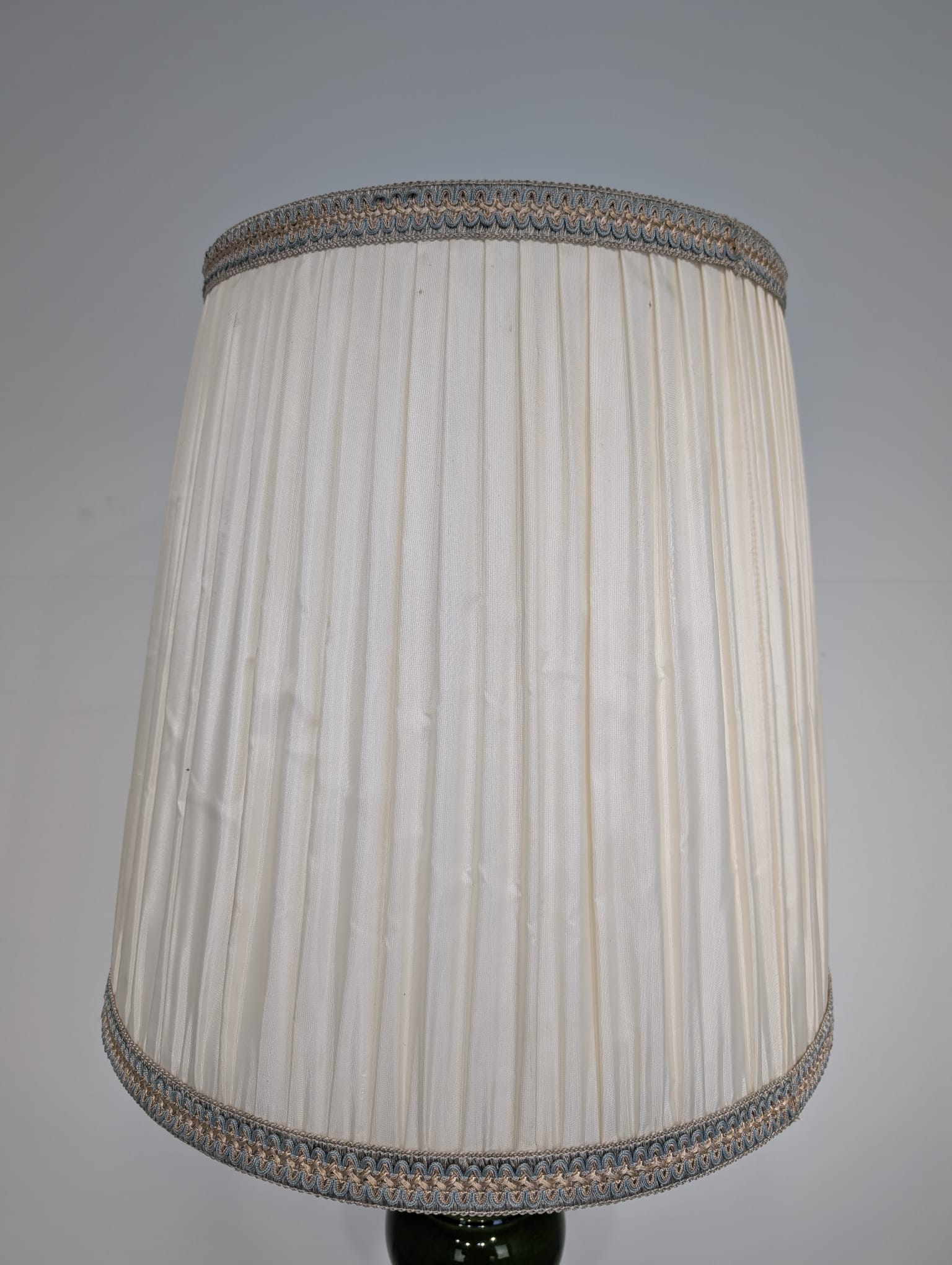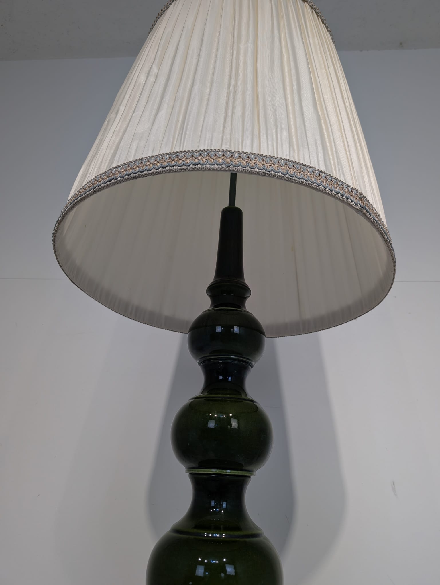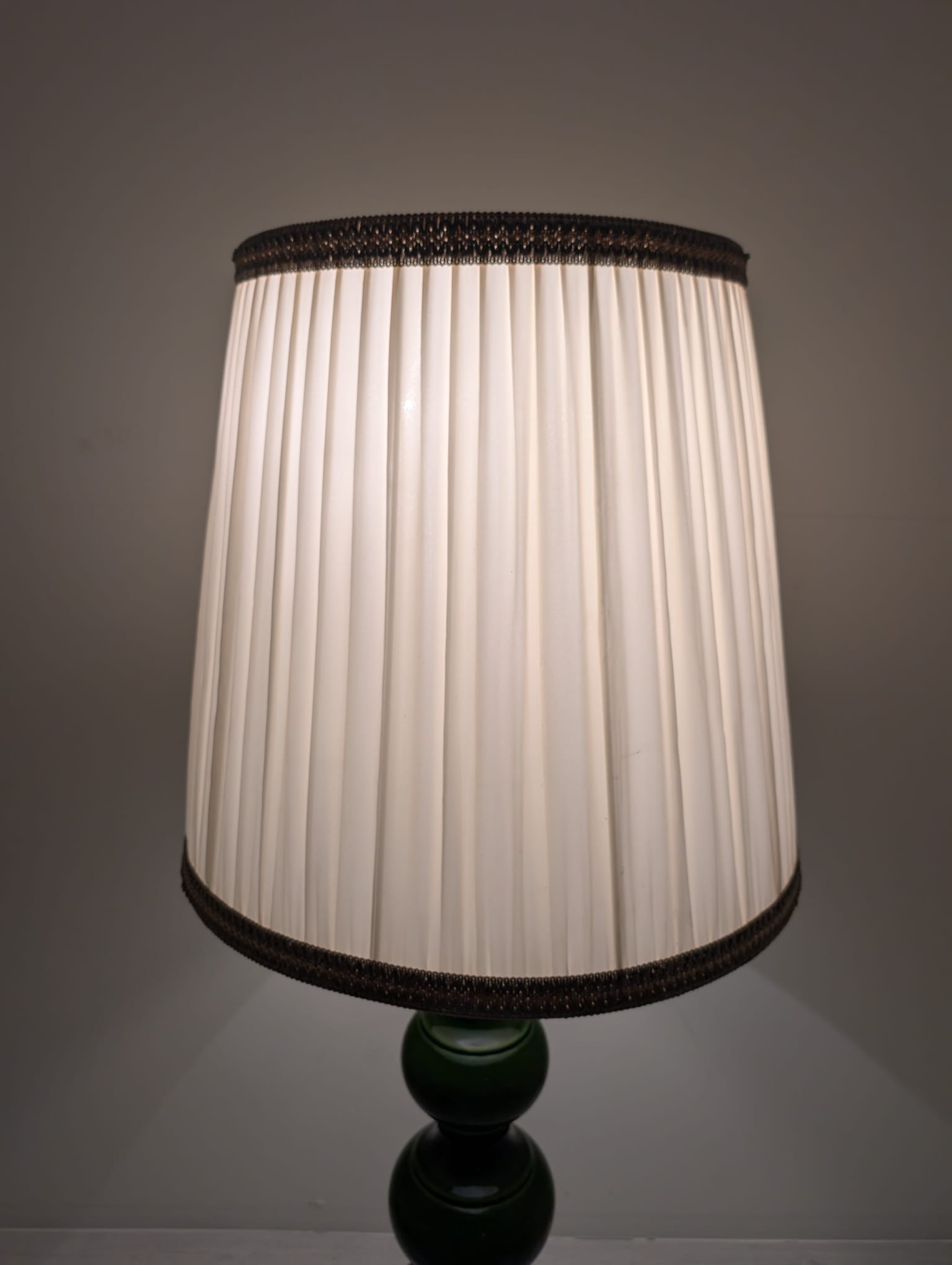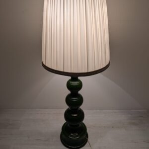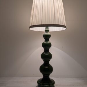 Stylowy, vintage’owy lampka podłogowa z lat 60. Wykonana z ceramiki w kolorze zielonym, z dużym, plisowanym abażurem. Świetny dodatek do każdego wnętrza w stylu retro.
