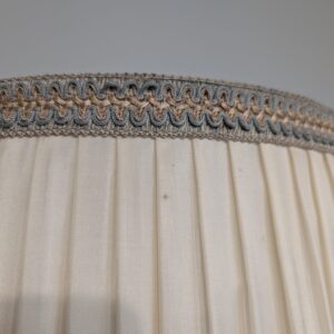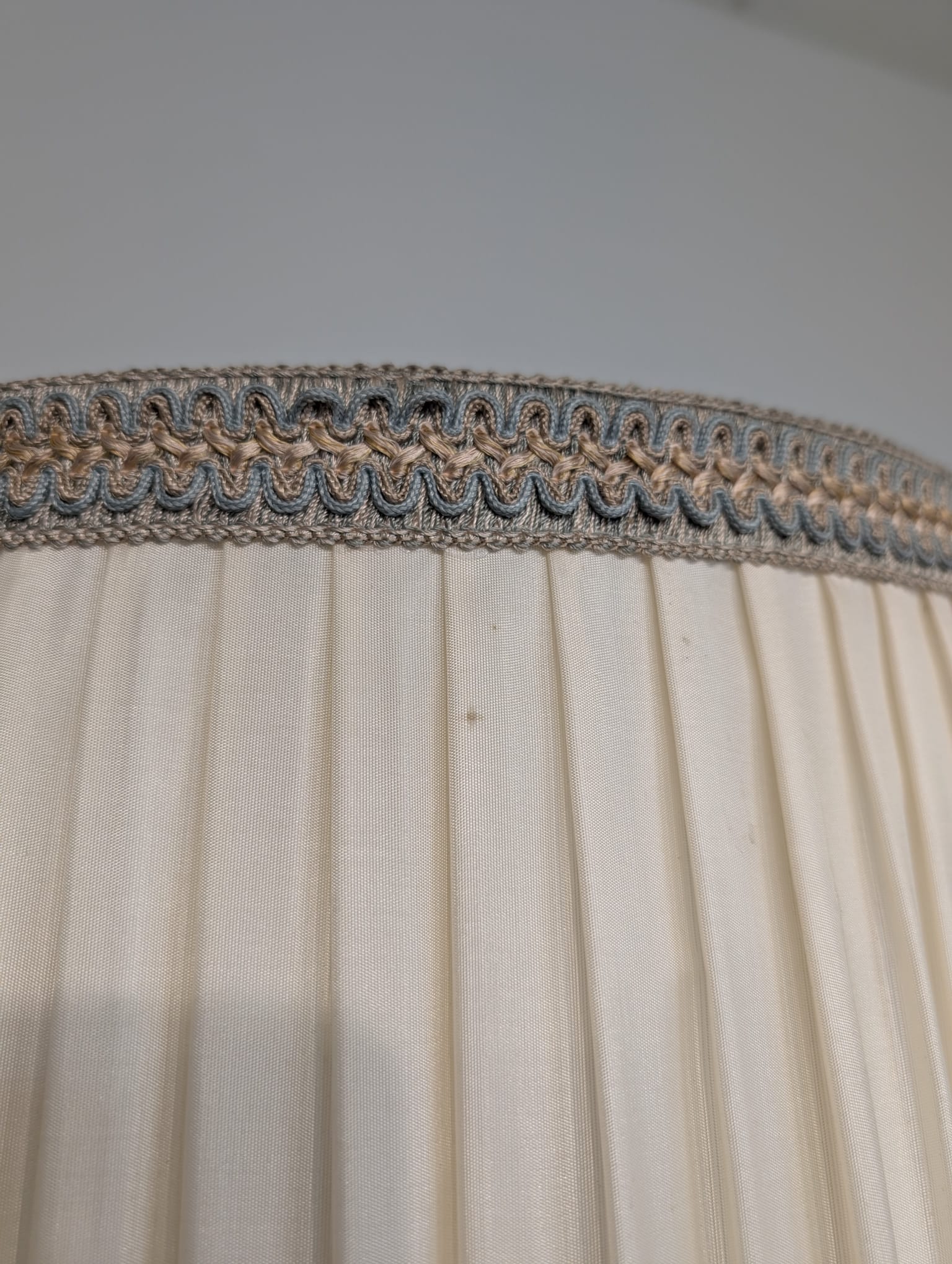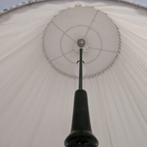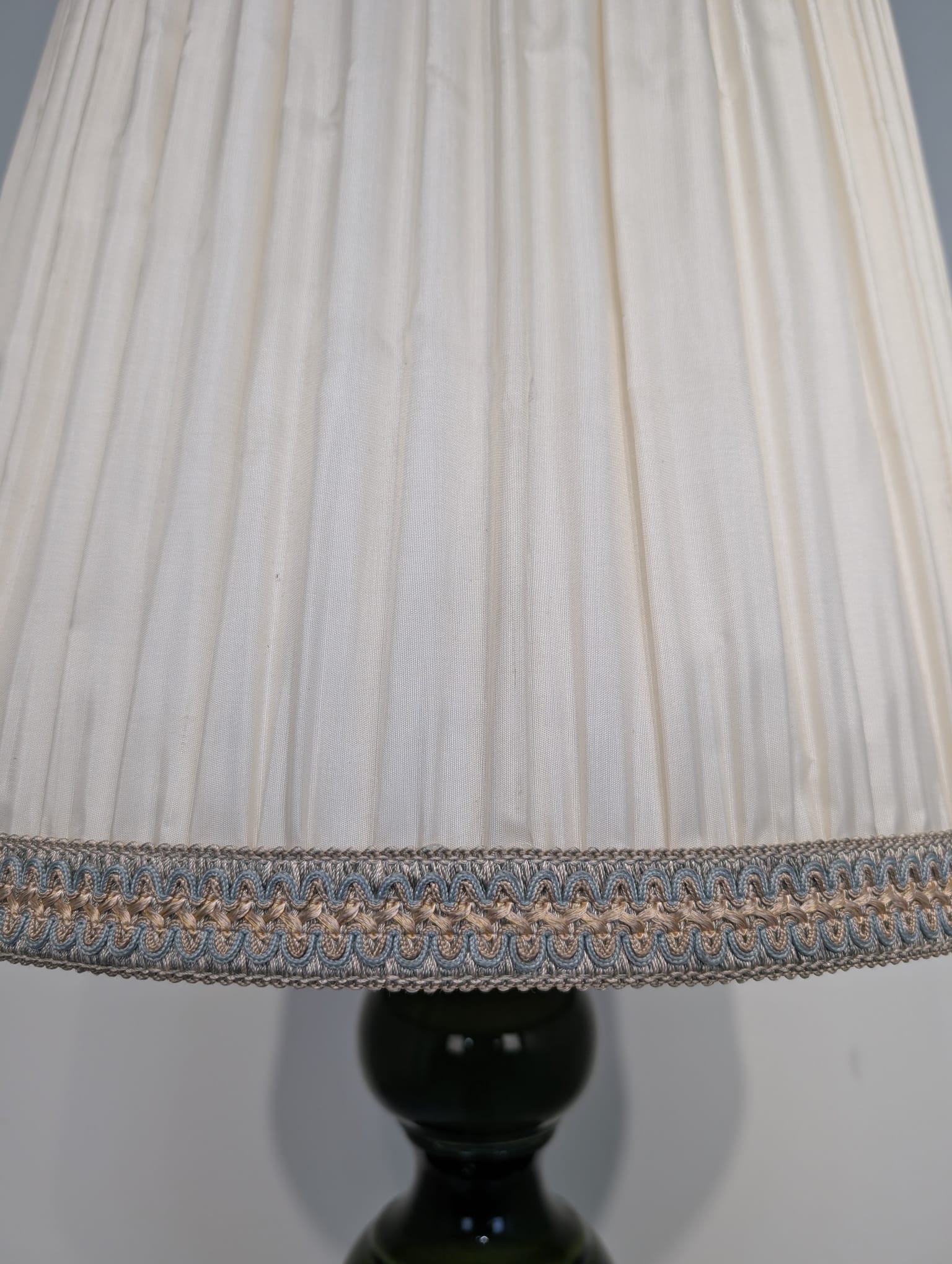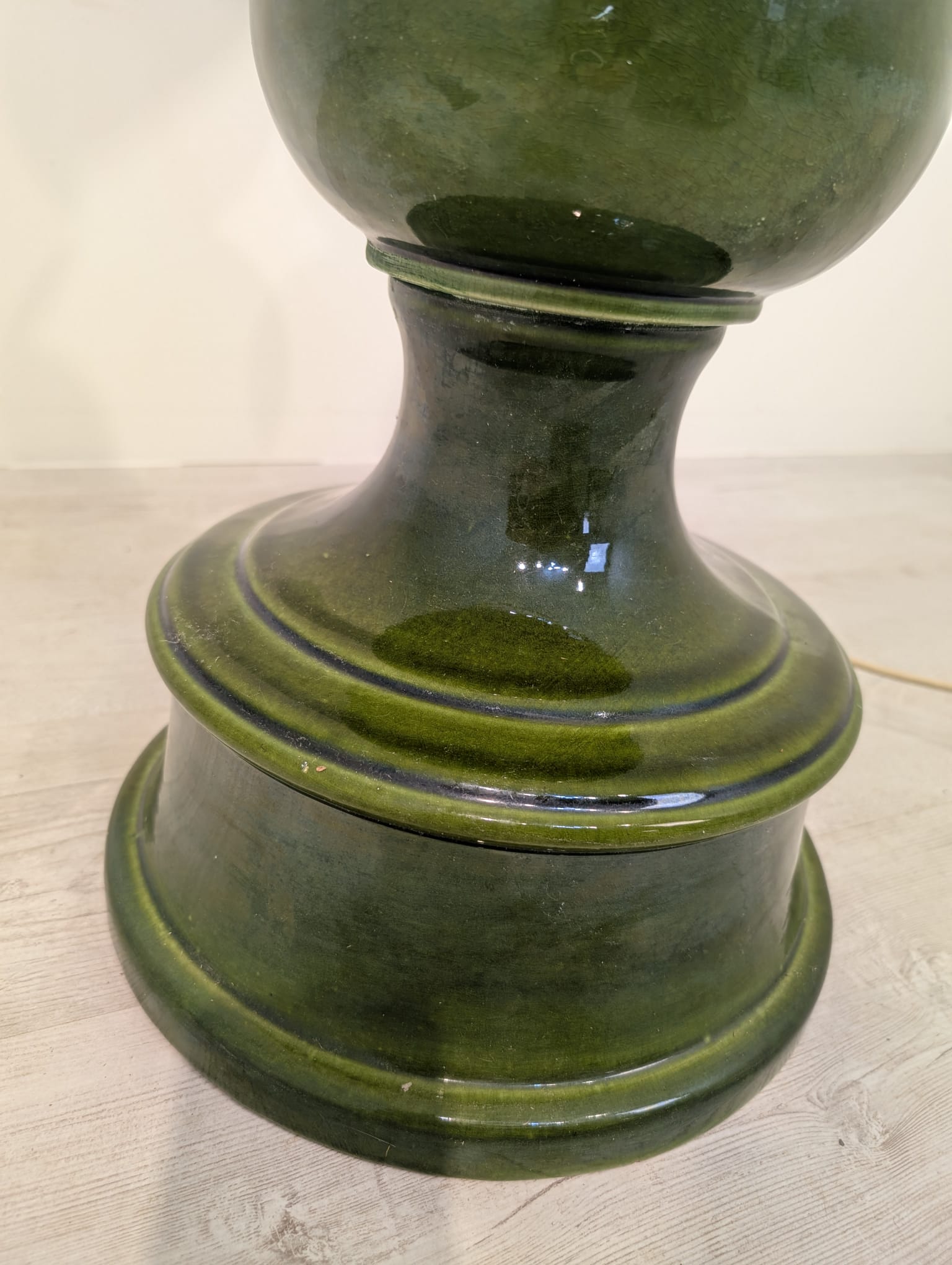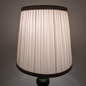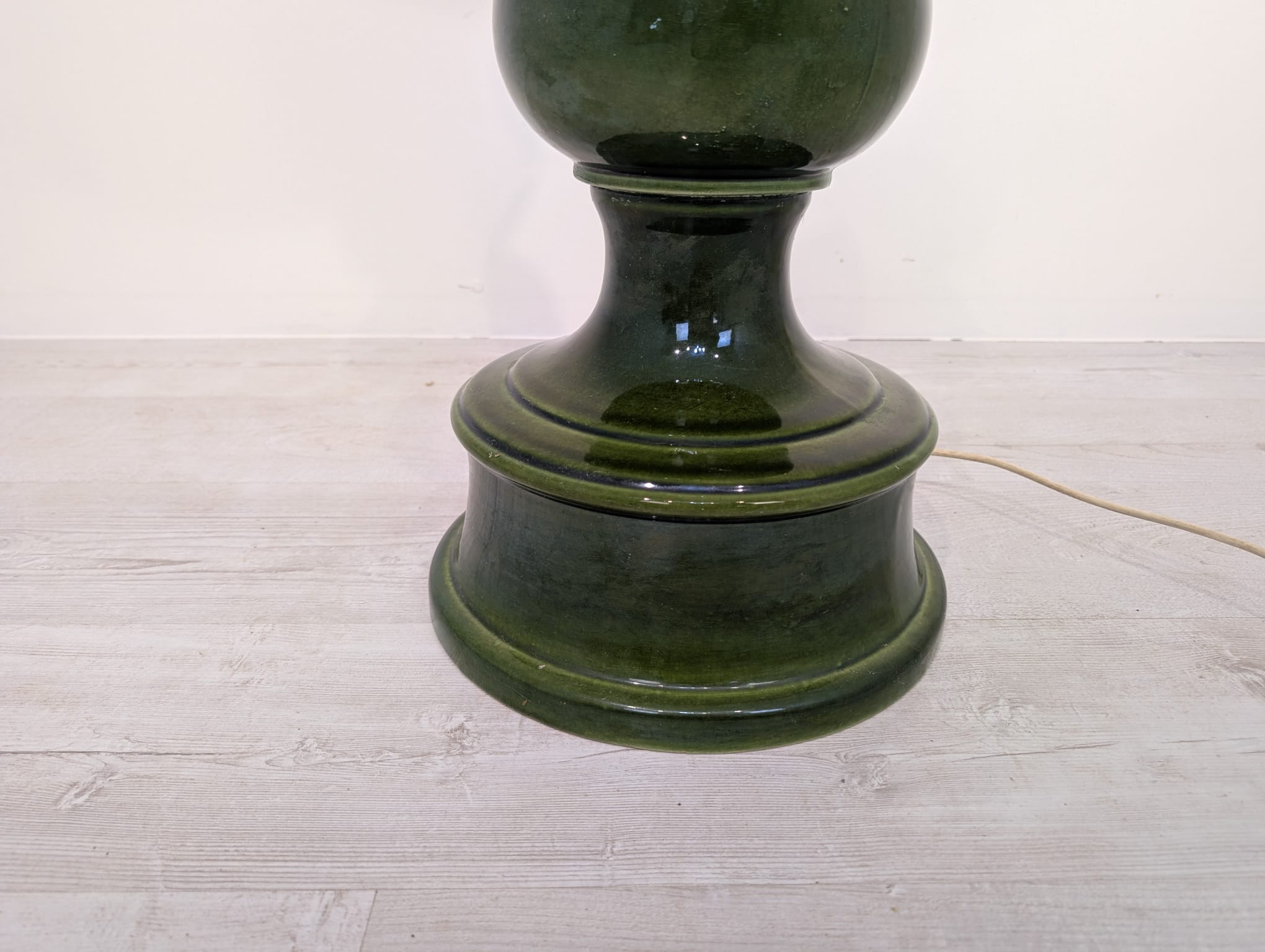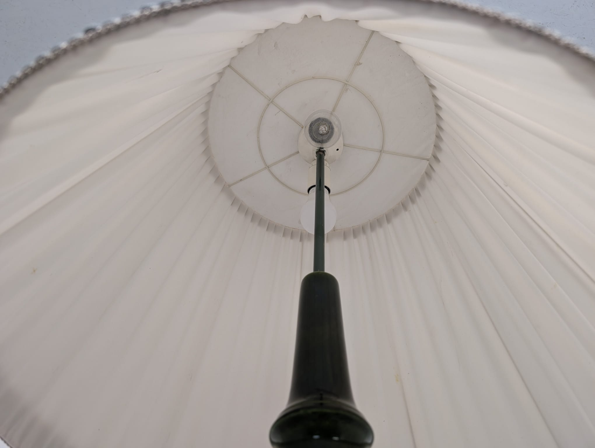 Stylowy, vintage’owy lampka podłogowa z lat 60. Wykonana z ceramiki w kolorze zielonym, z dużym, plisowanym abażurem. Świetny dodatek do każdego wnętrza w stylu retro.
