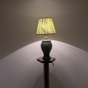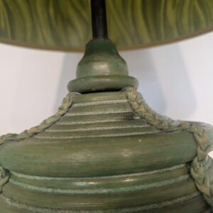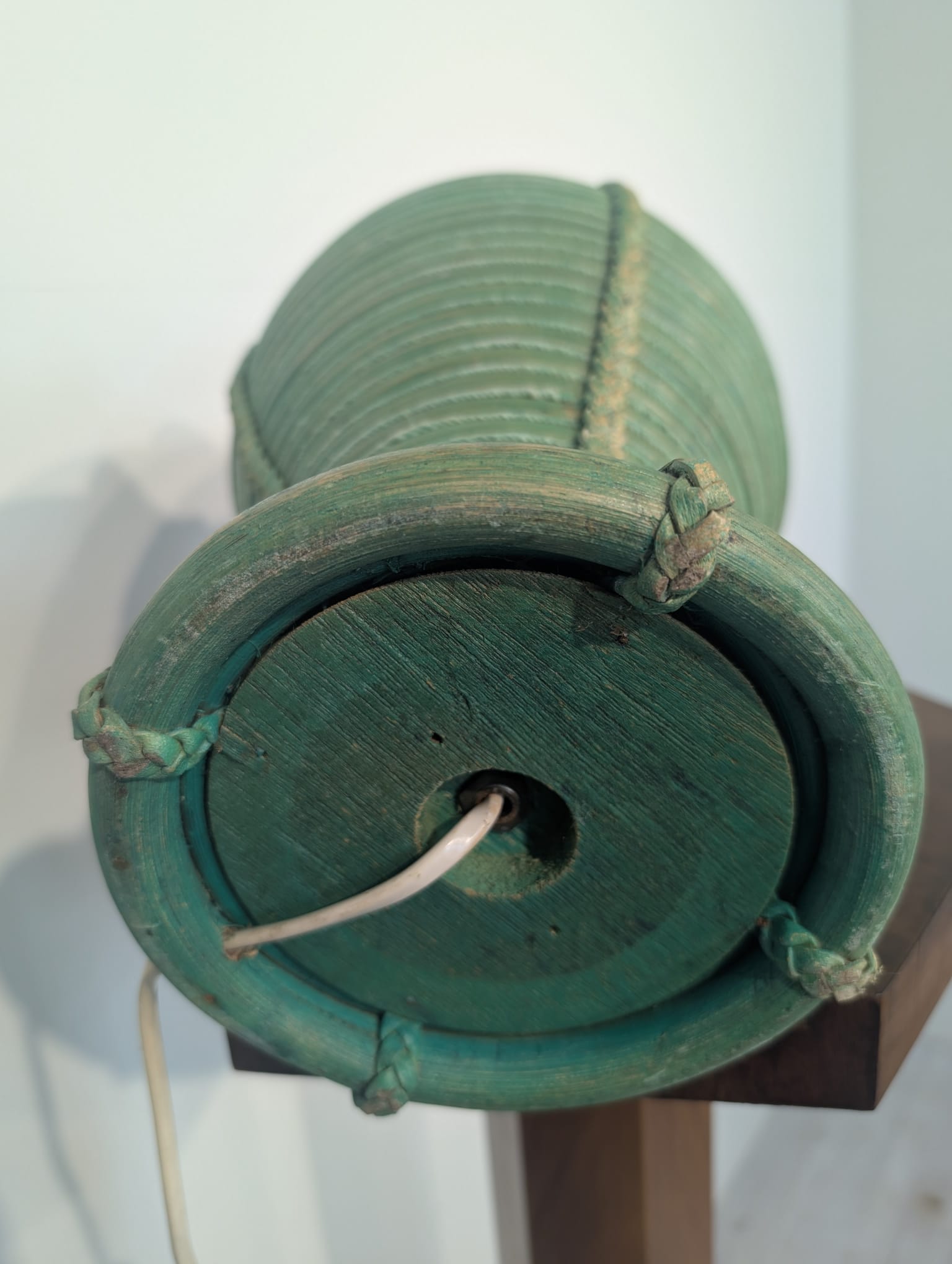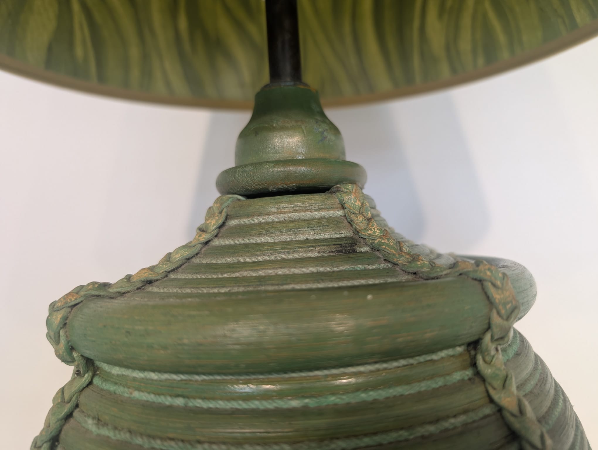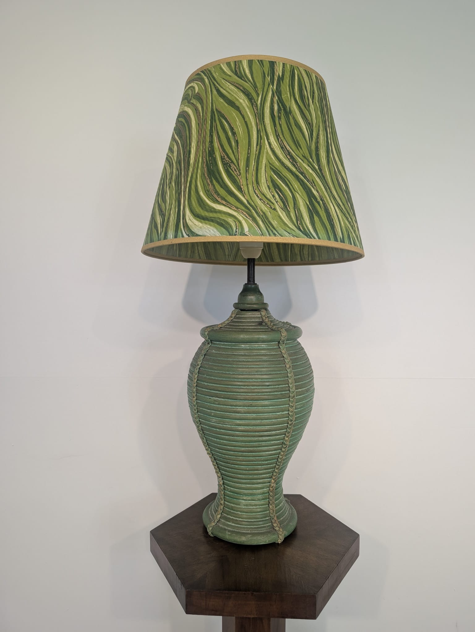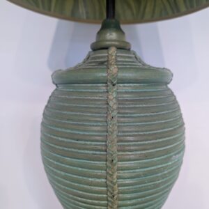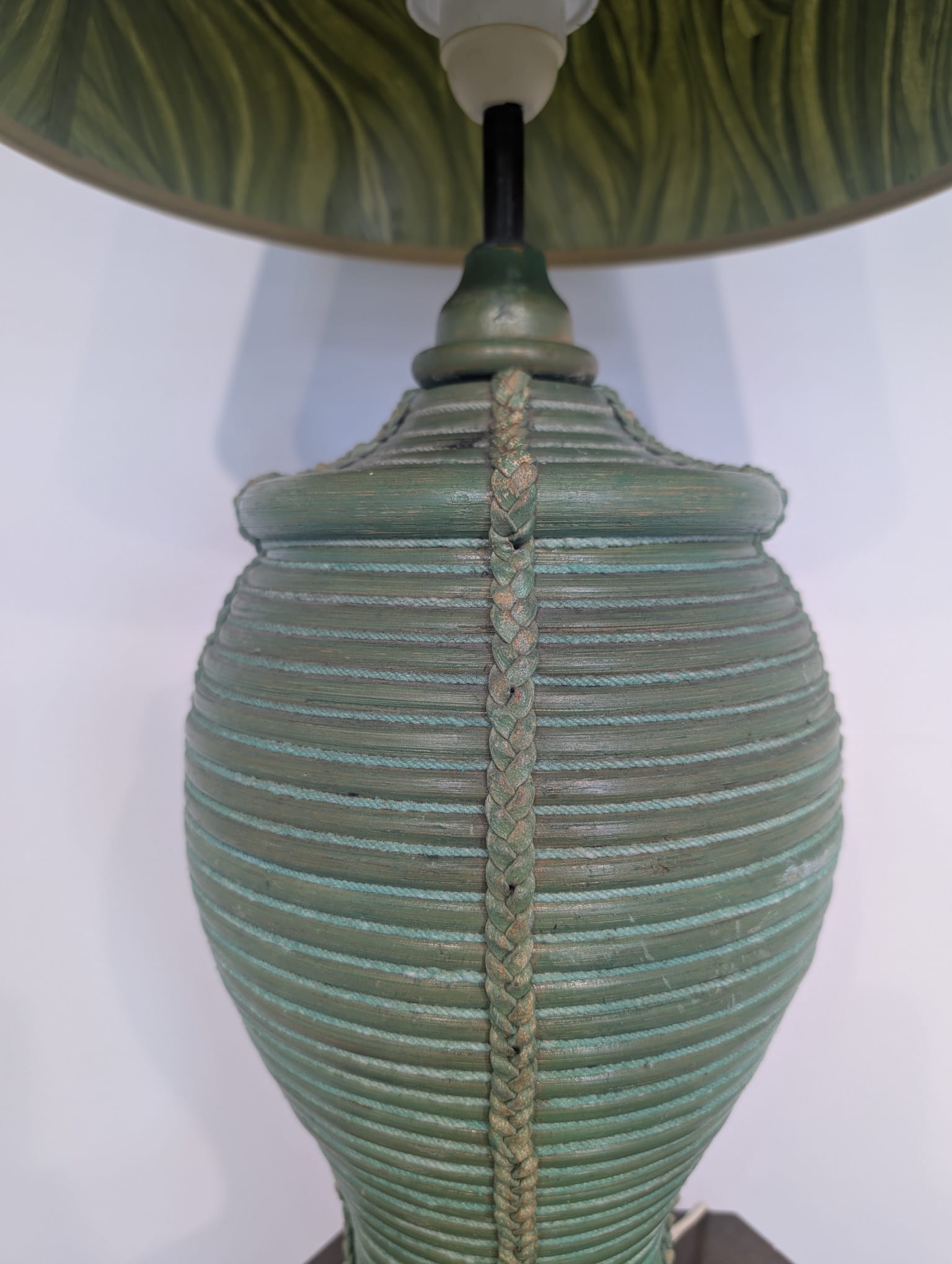 Lampa stołowa rattanowa zielona z pleciona skórą