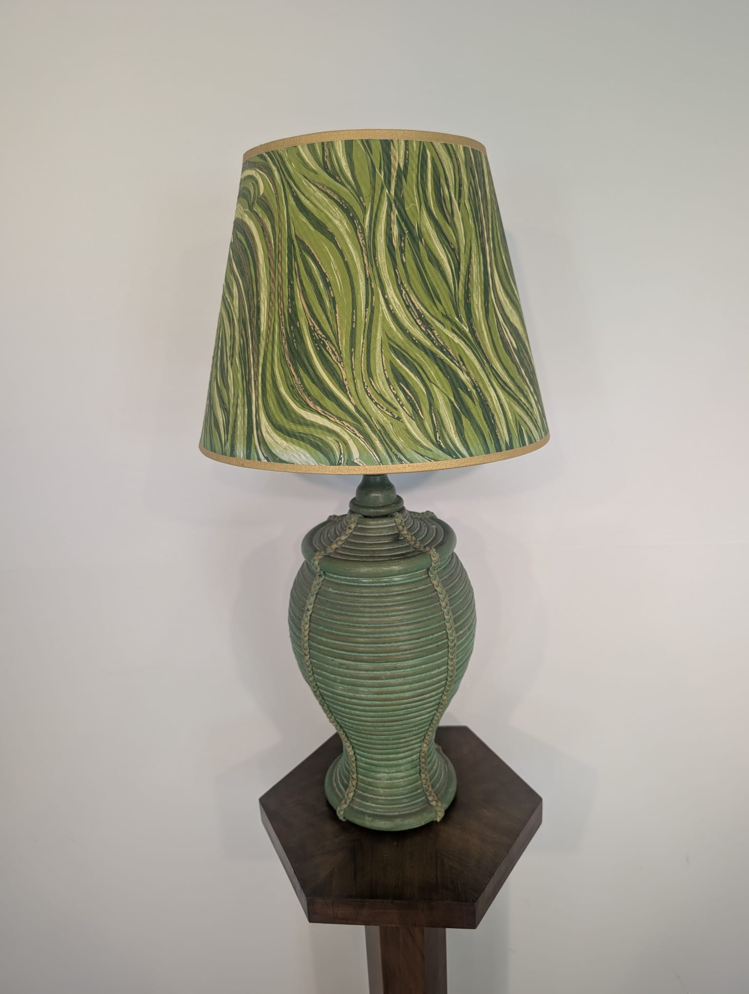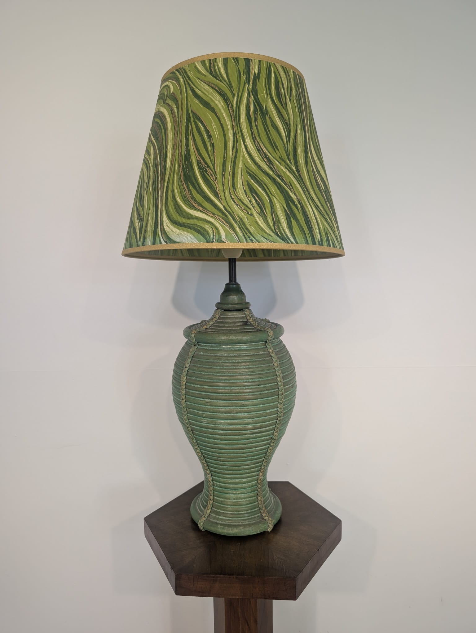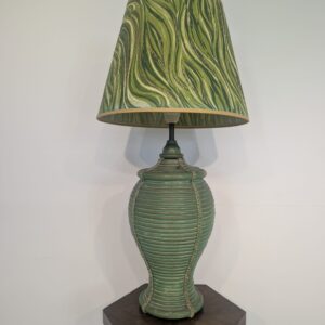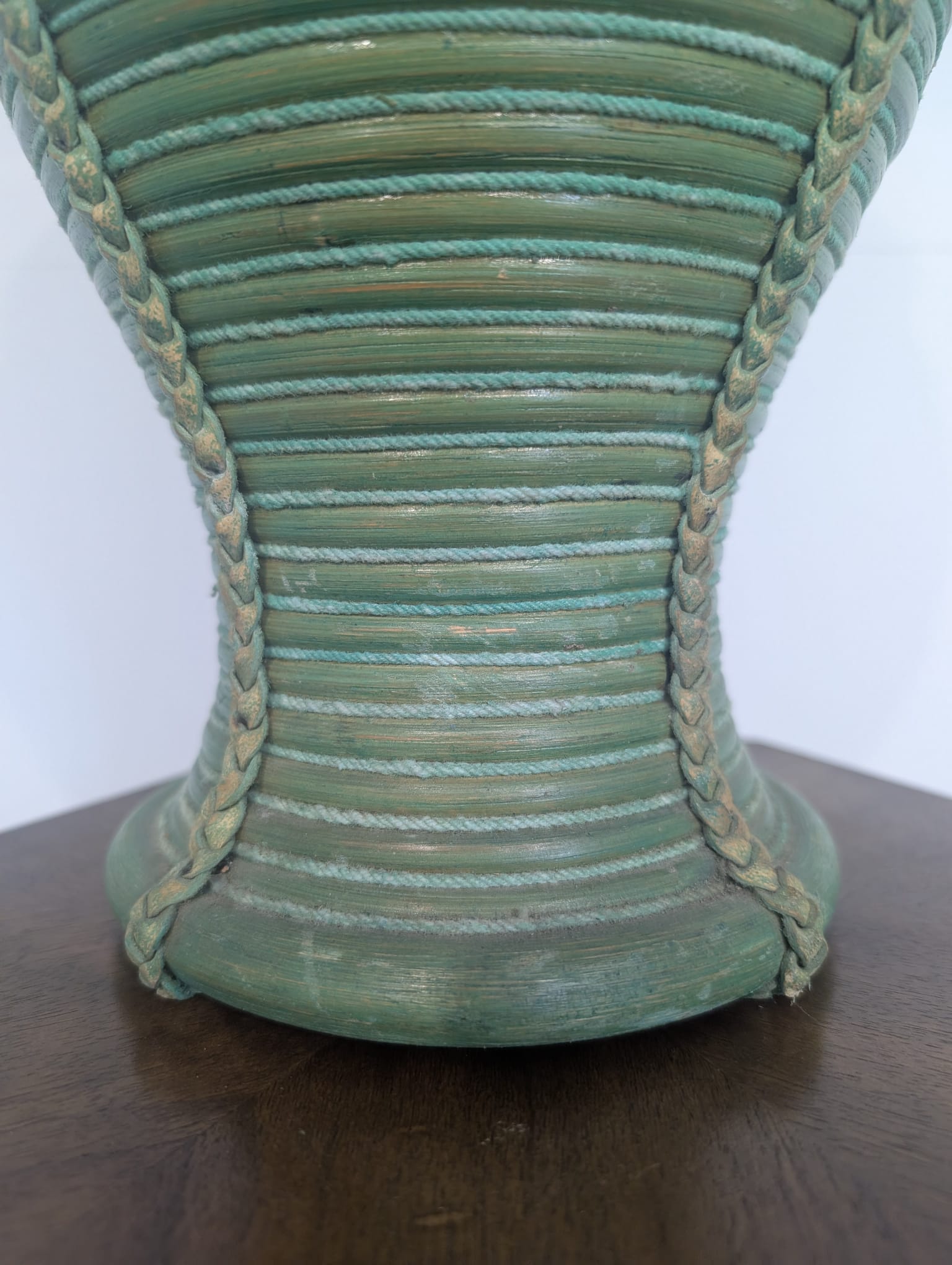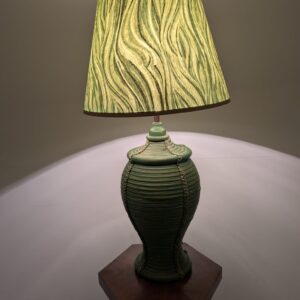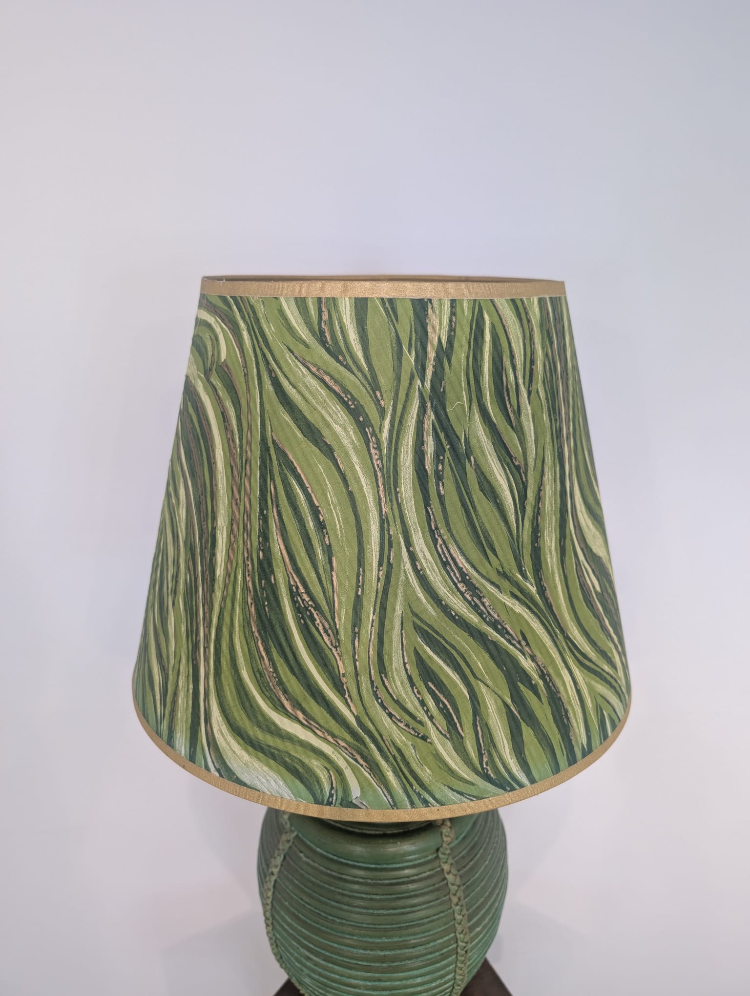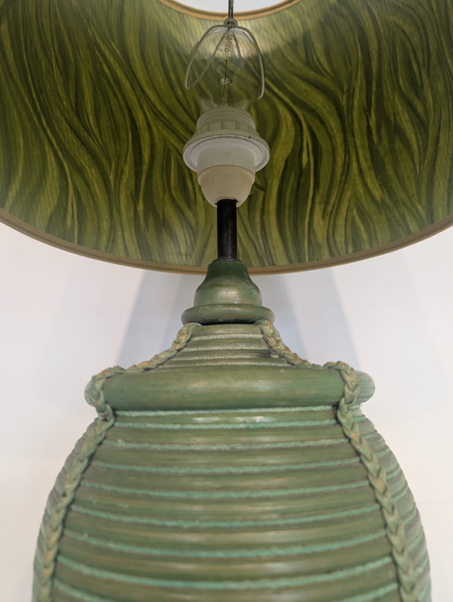 Lampa stołowa rattanowa zielona z pleciona skórą