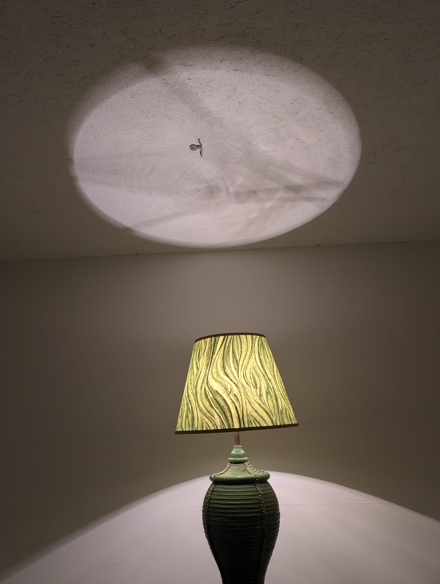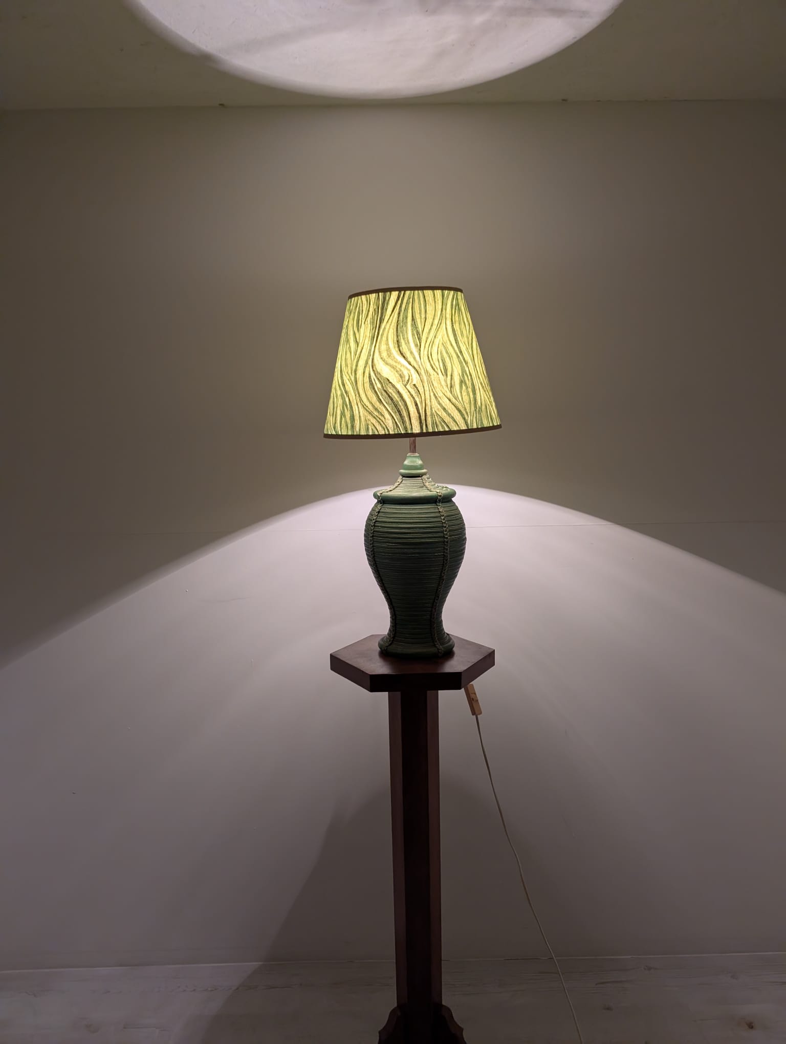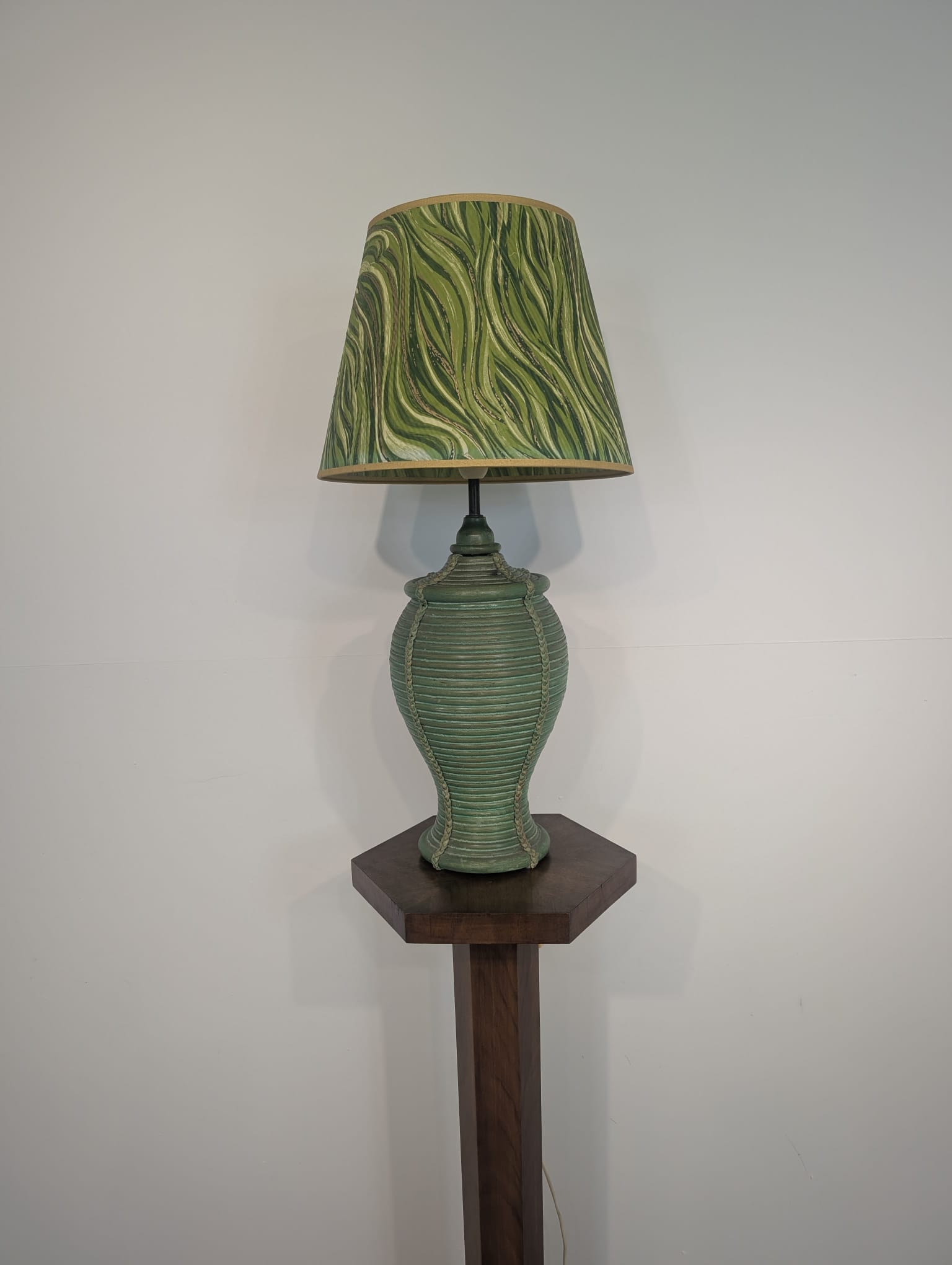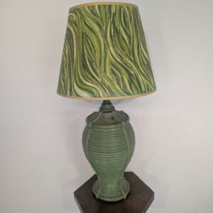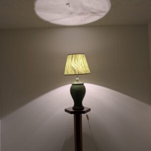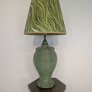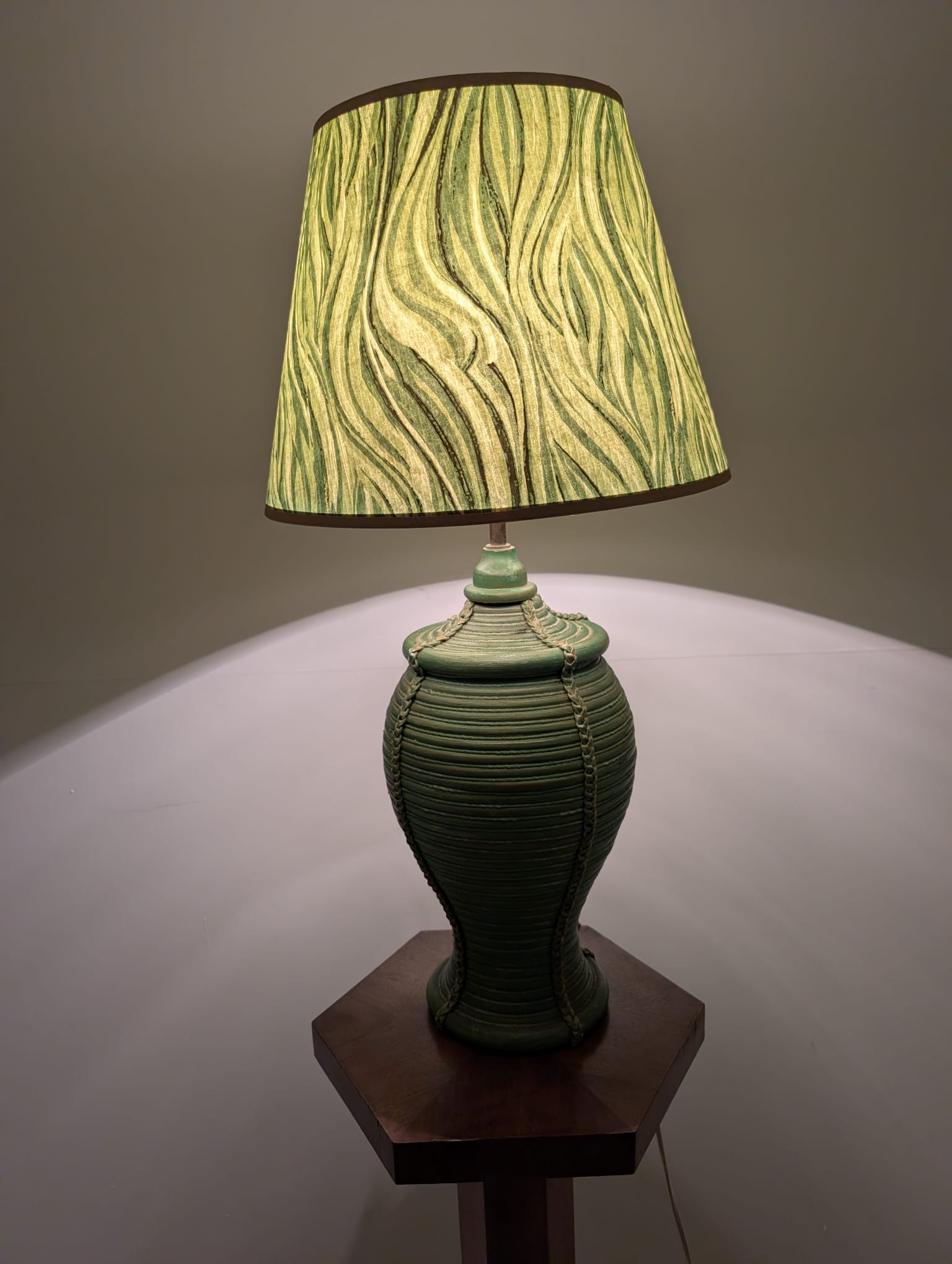 Lampa stołowa rattanowa zielona z pleciona skórą