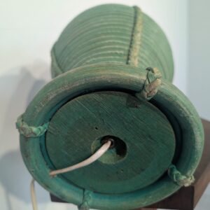 Elegancka, zielona lampa stołowa z rattanu z plecionym skórzanym warkoczem. Unikalna i stylowa ozdoba, która doda ciepła i przytulności każdemu wnętrzu.
