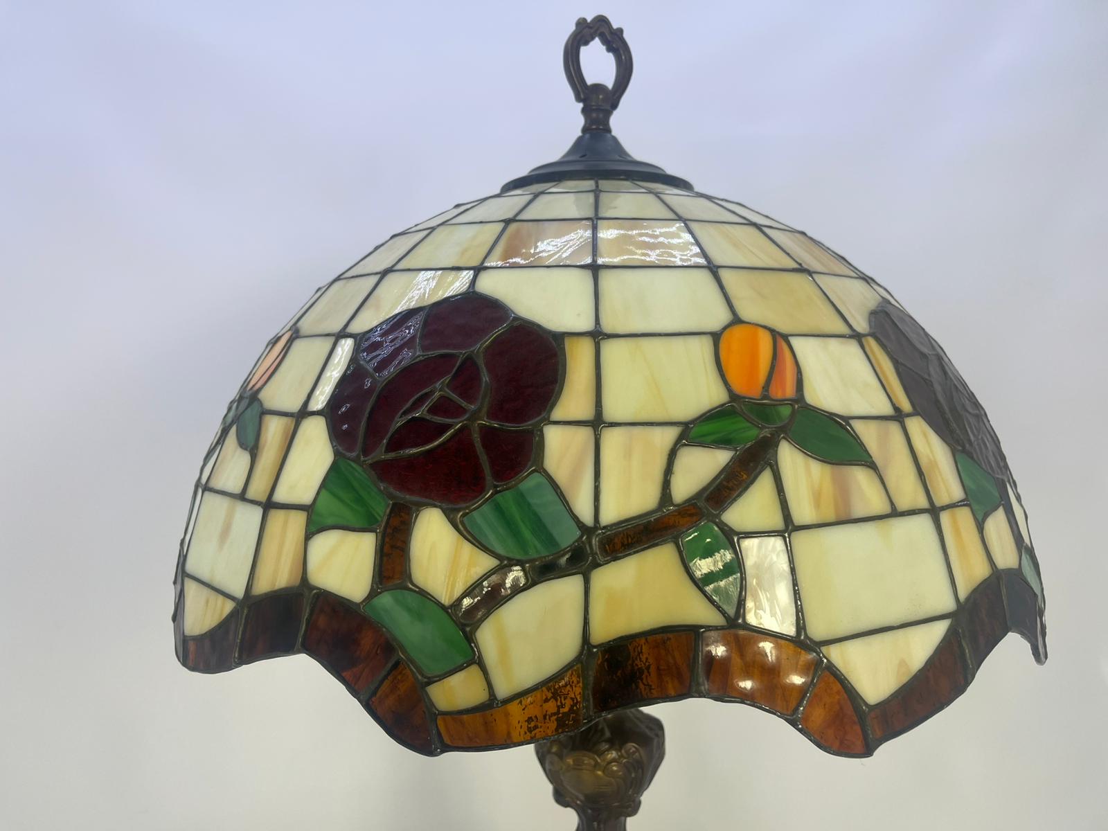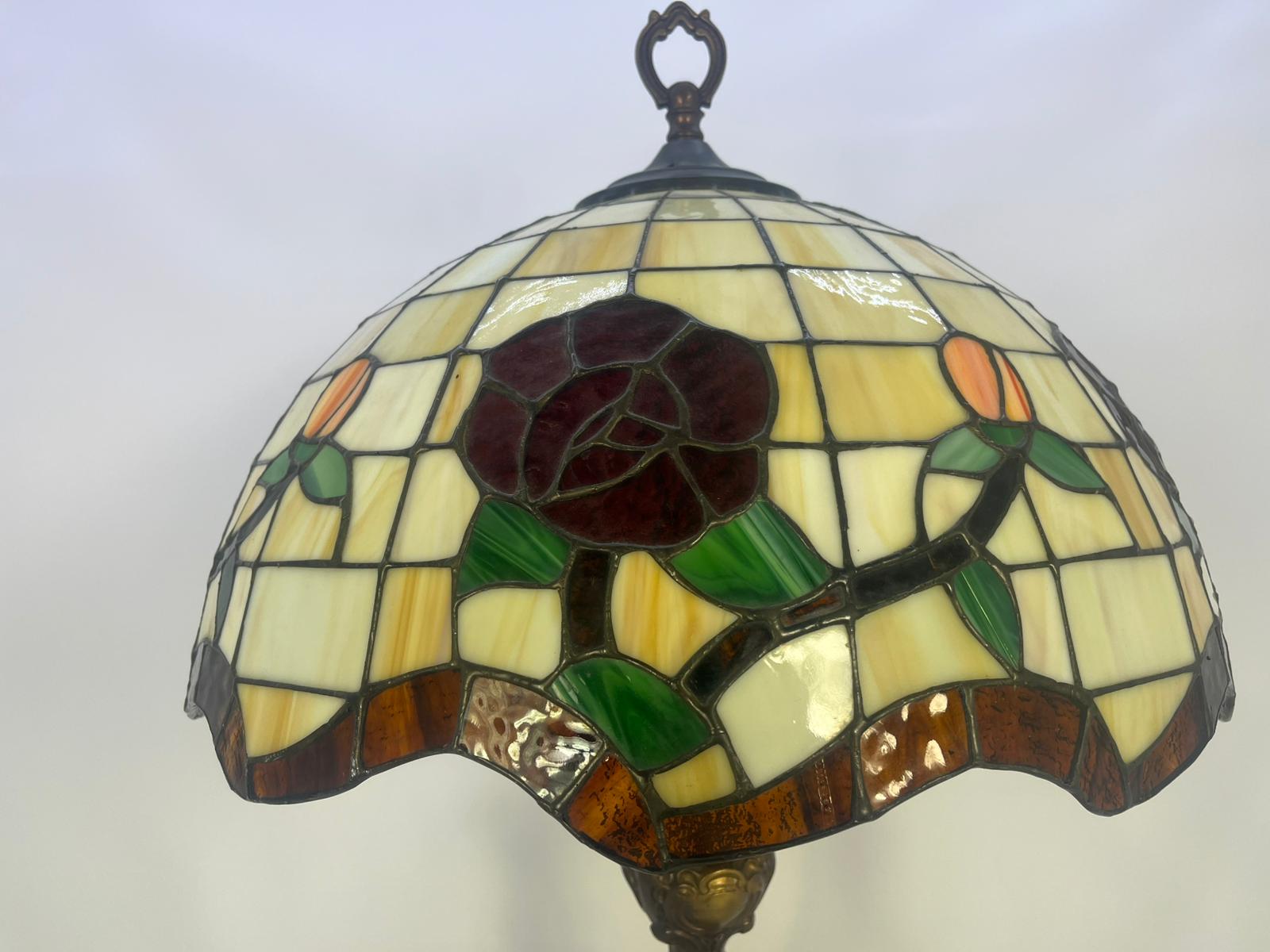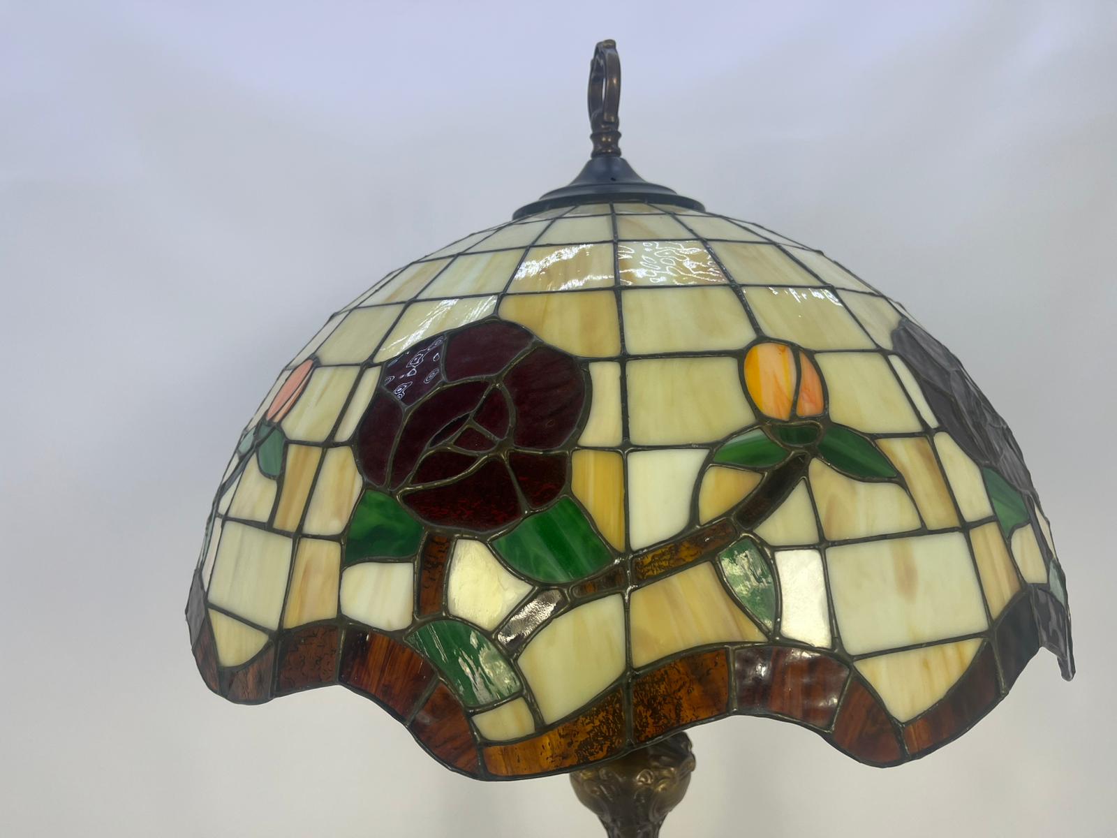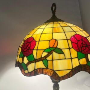 Lampa witrażowa z pięknym kloszem kwiatowym w styllu Tiffanenigo.