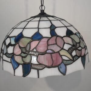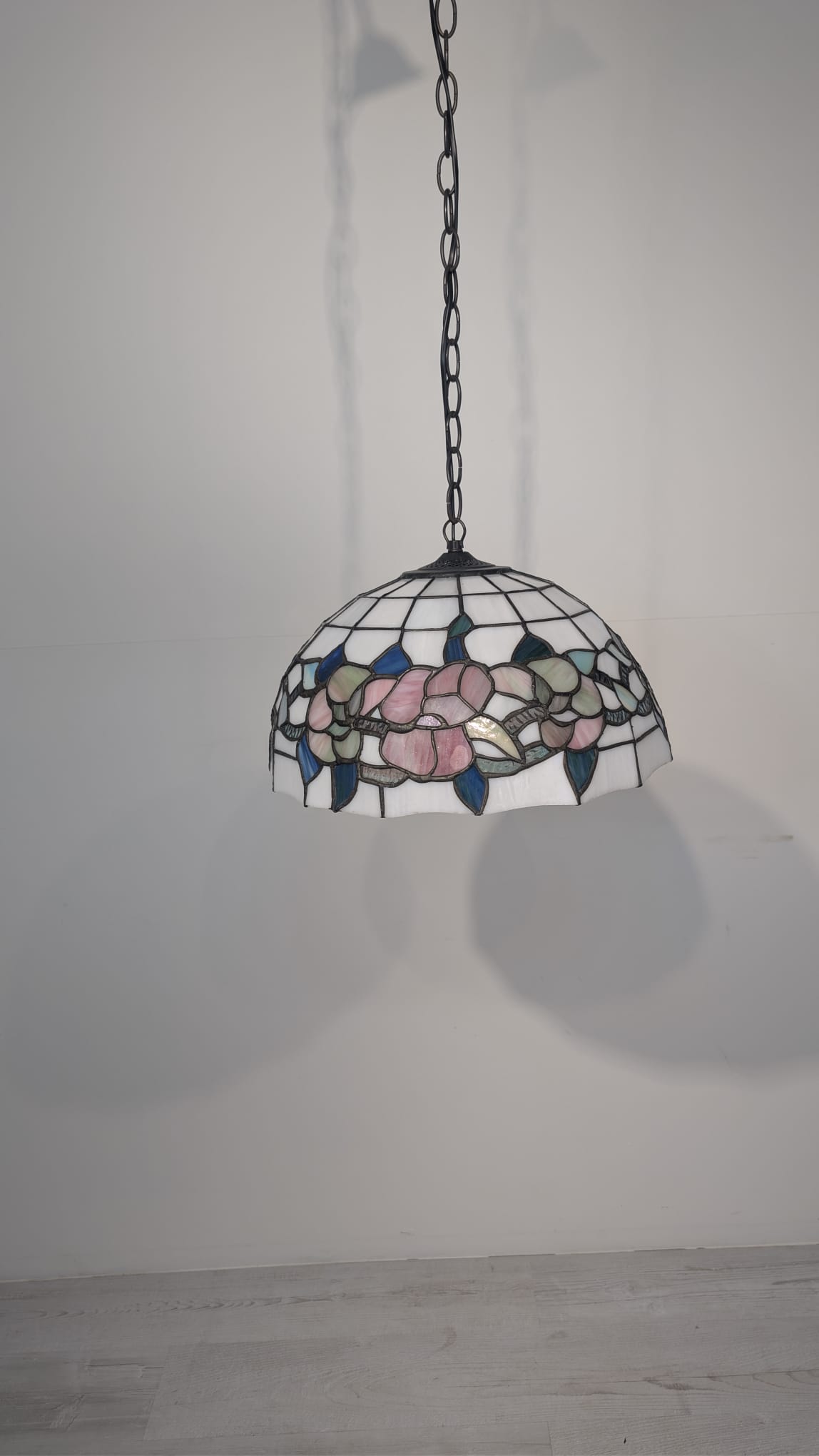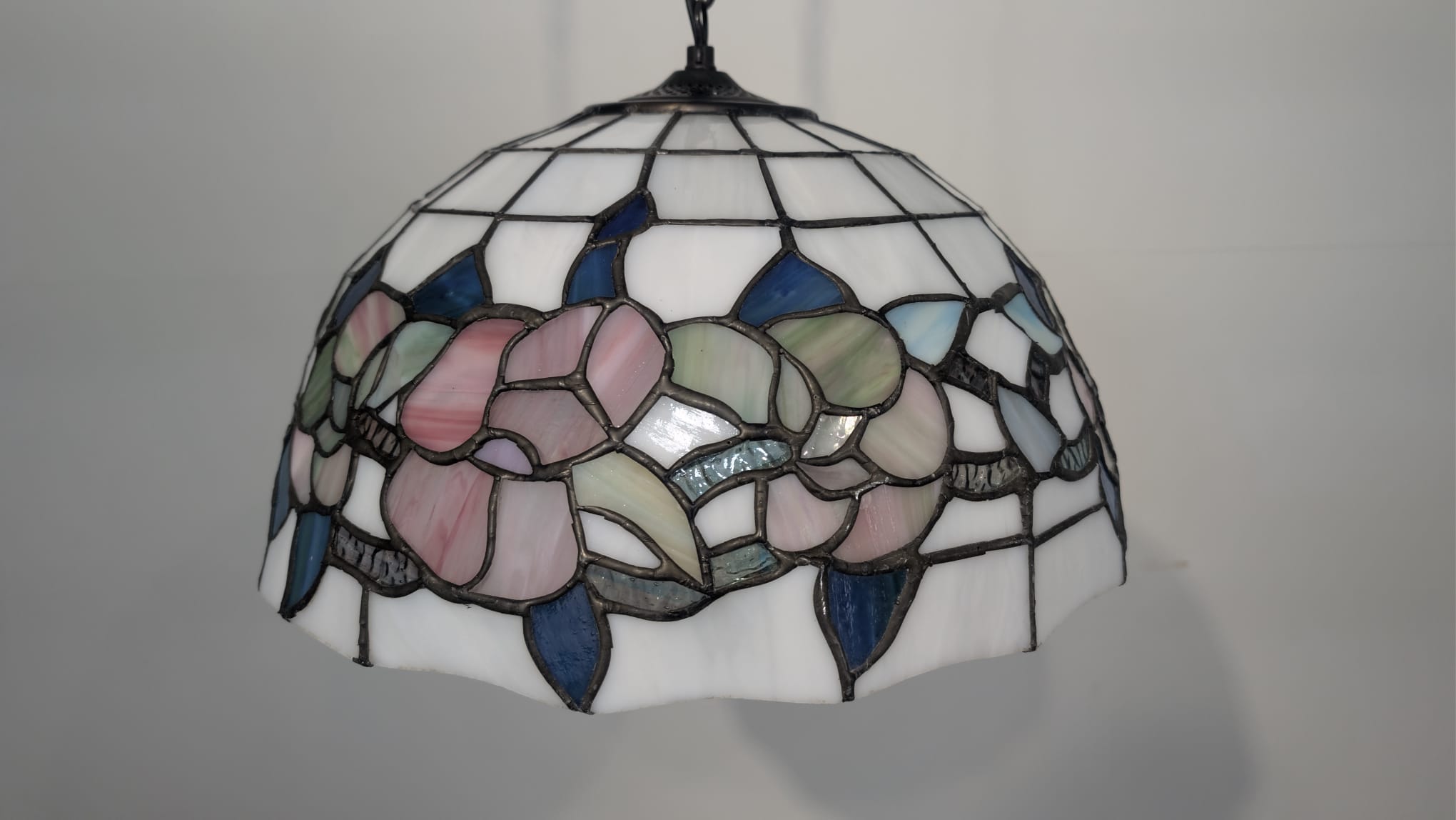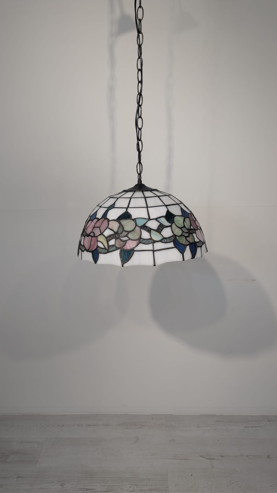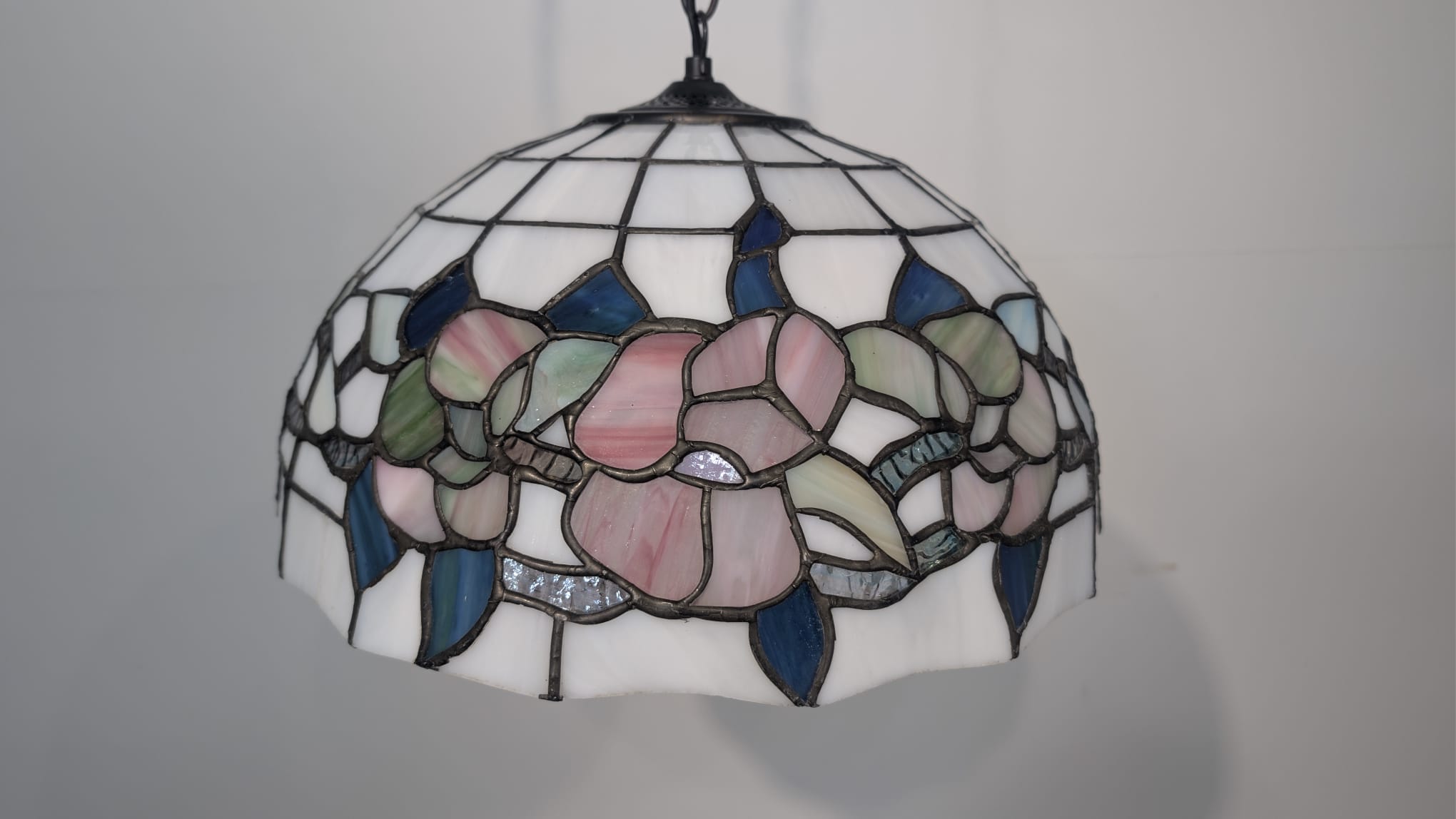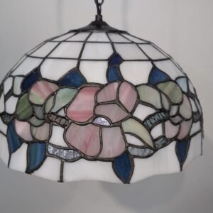 Lampa wiszącą, witrażowa w stylowy Tiffany w kwiaty