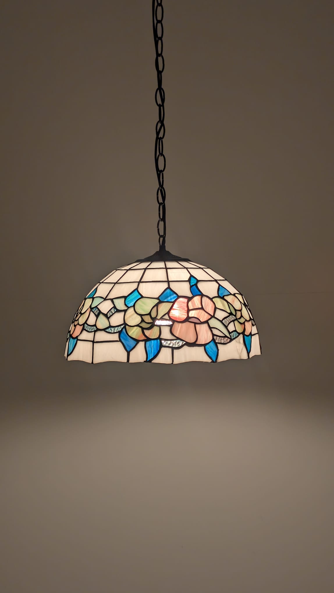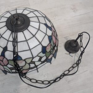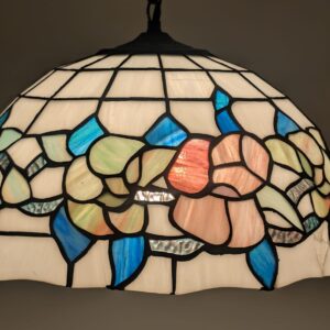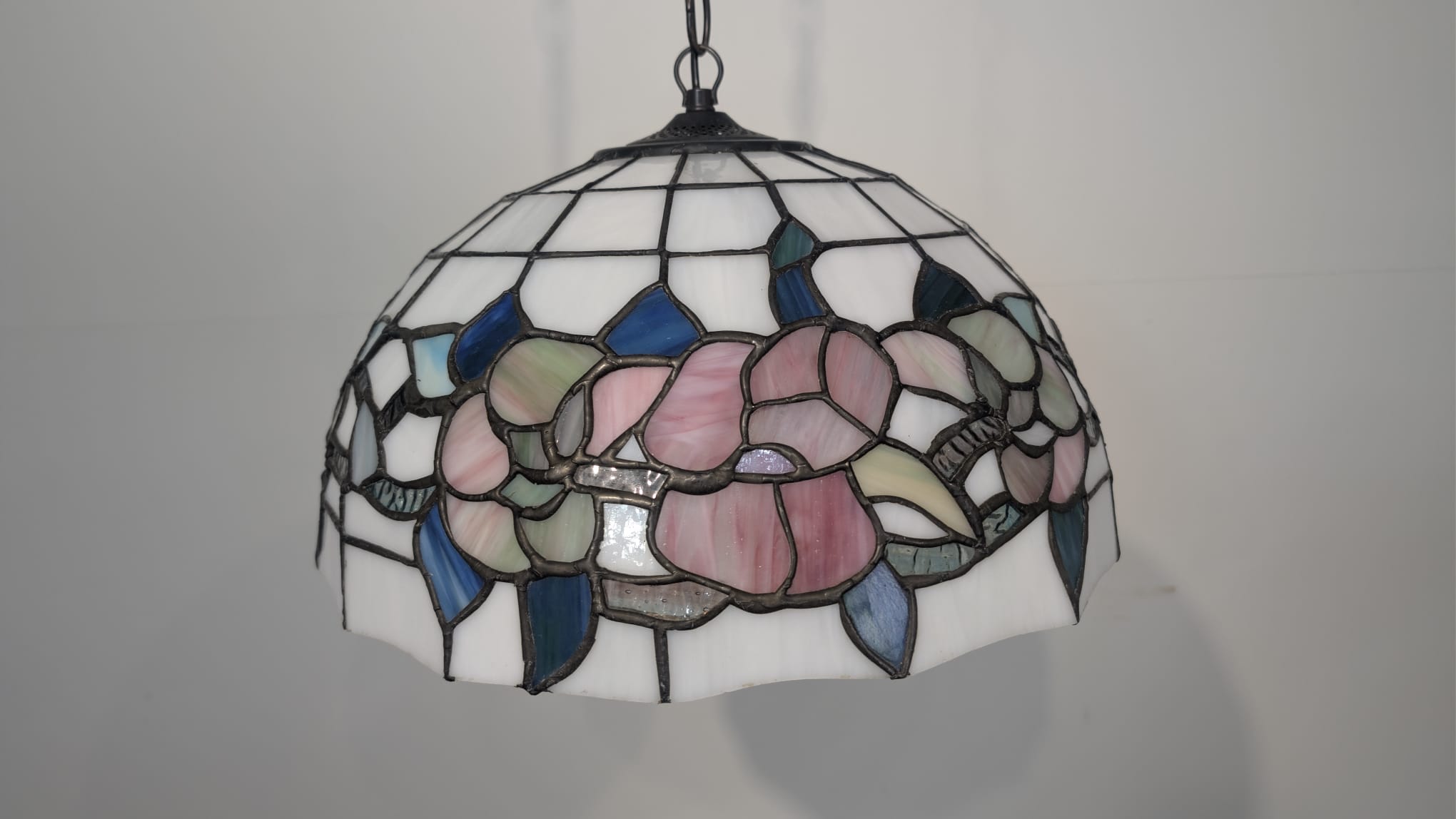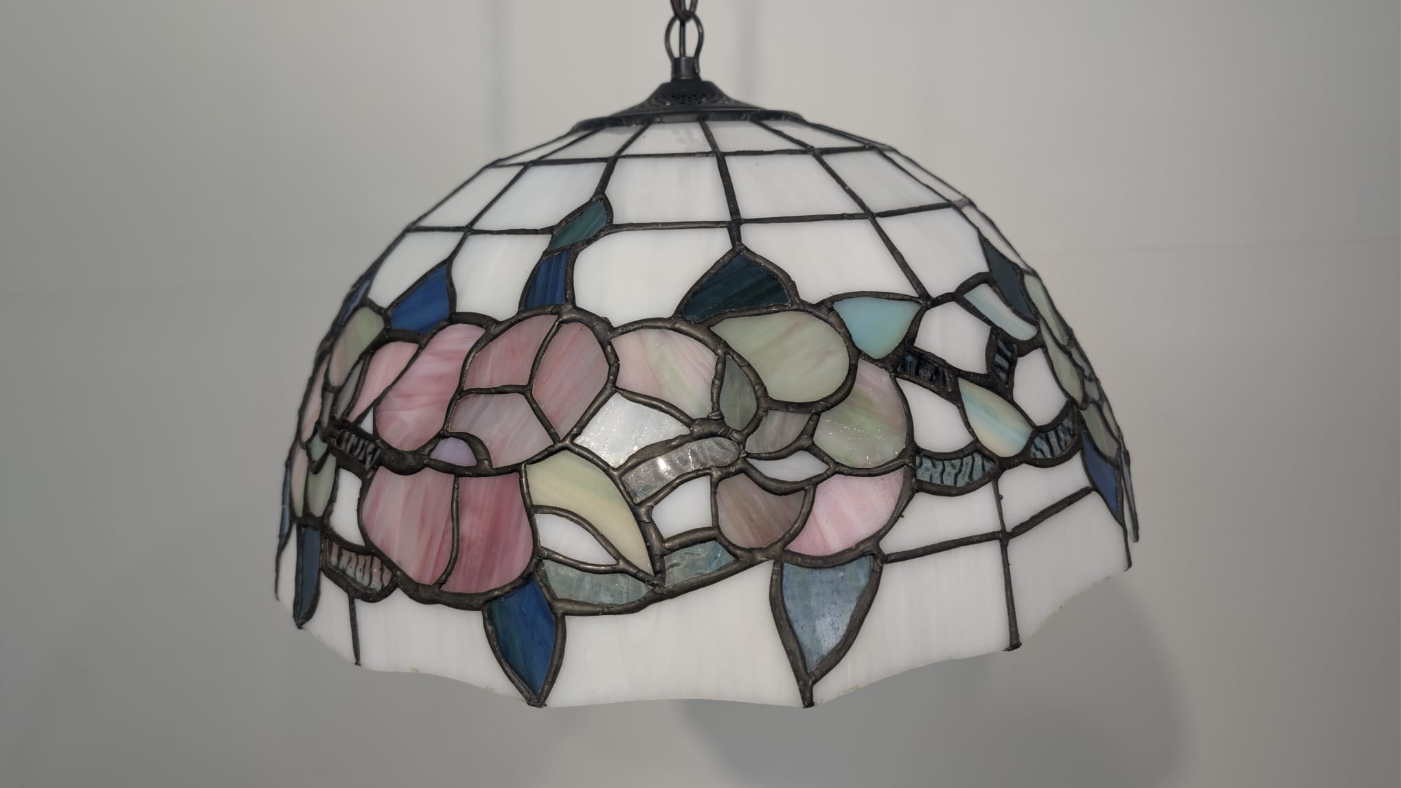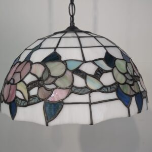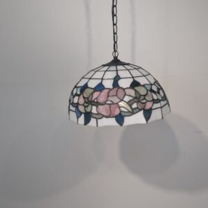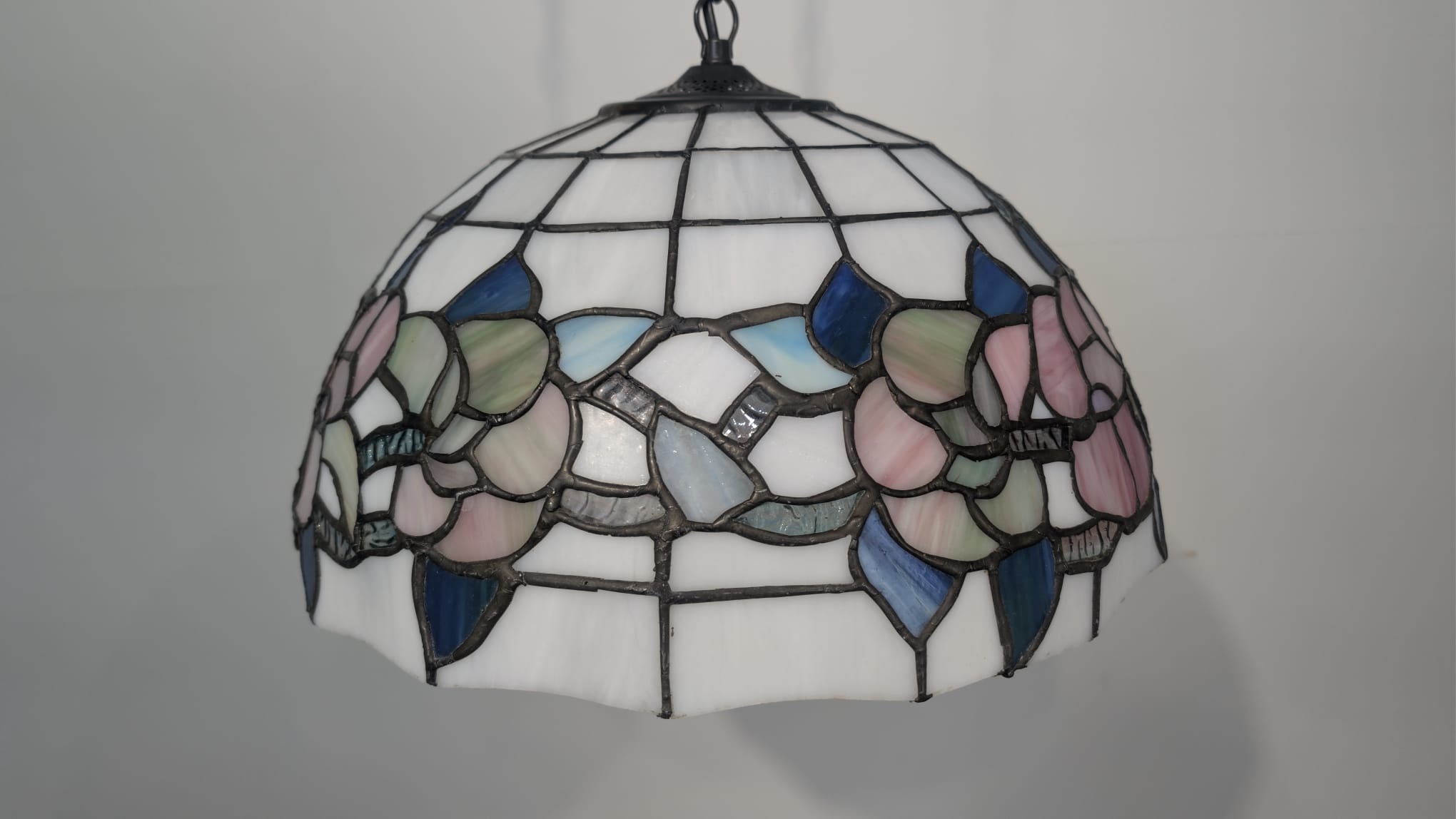 Lampa wiszącą, witrażowa w stylowy Tiffany w kwiaty