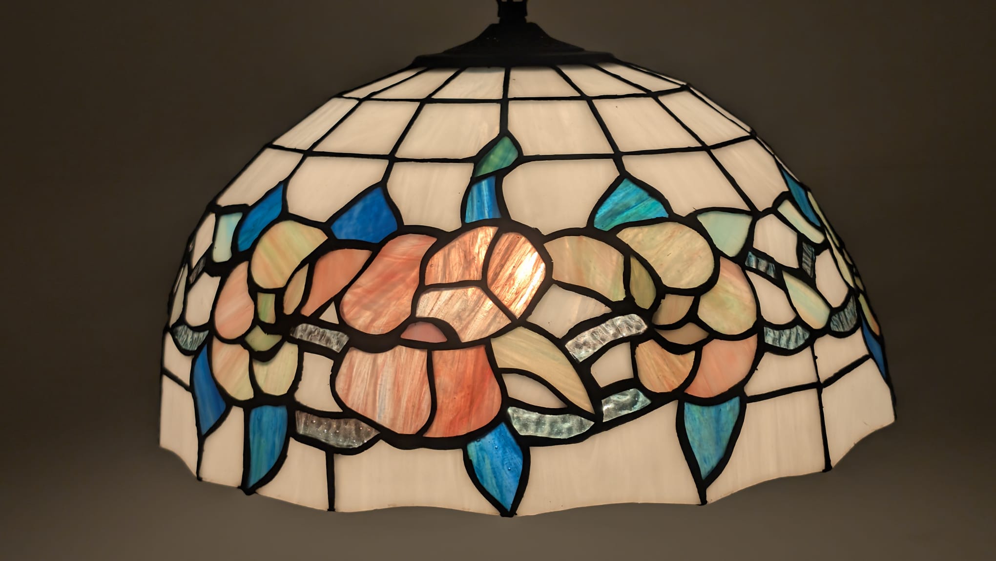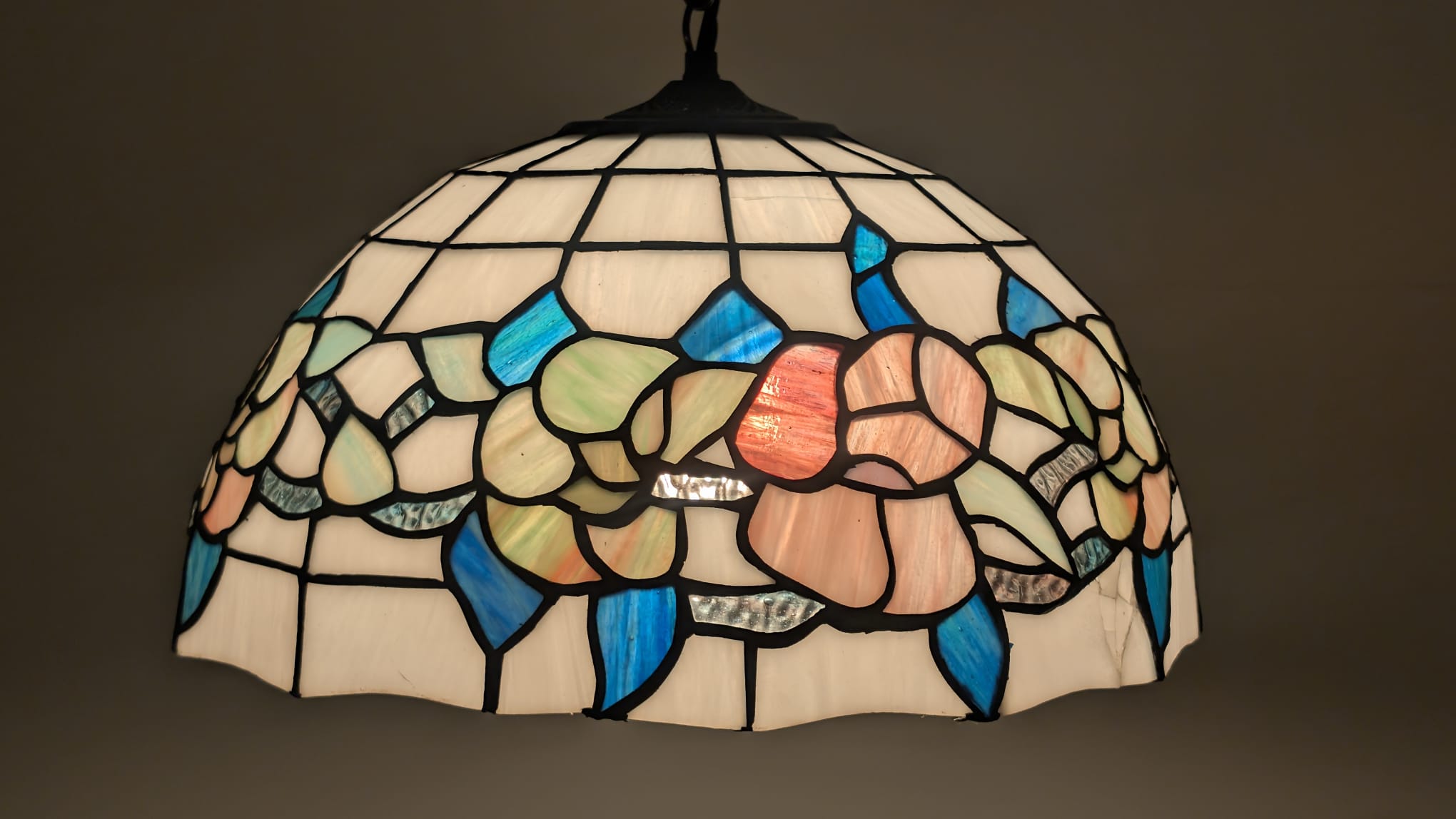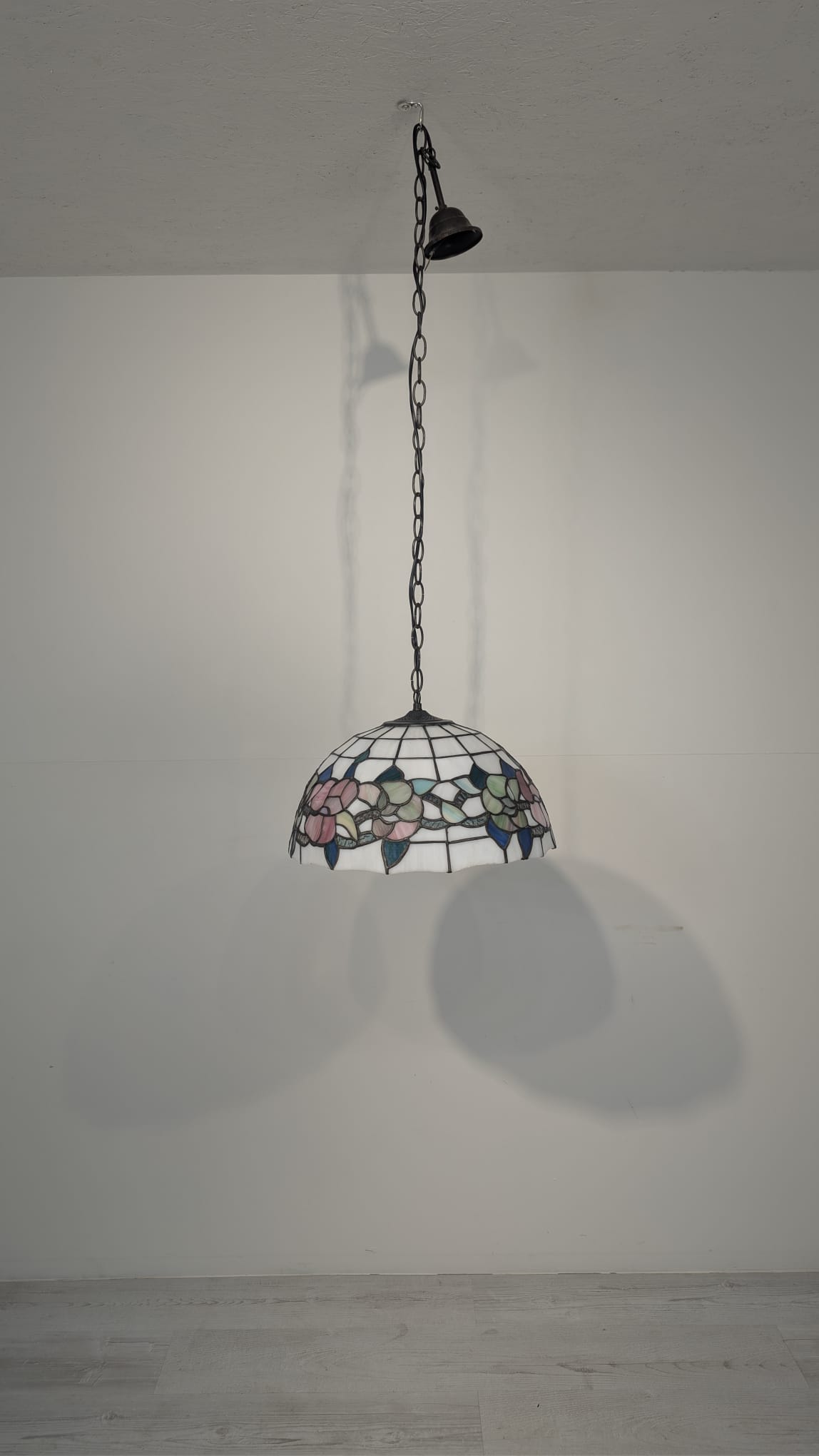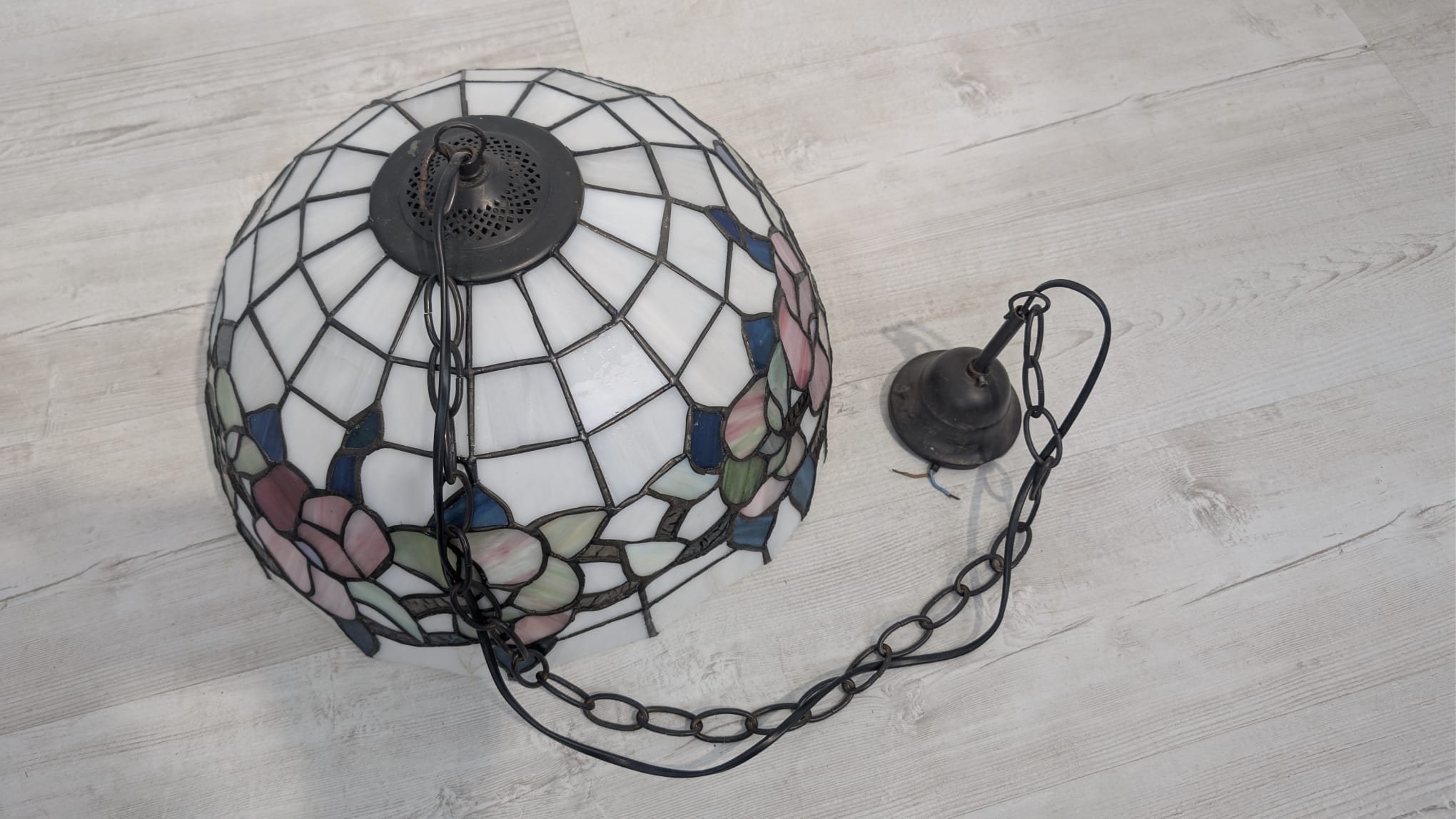 Lampa wiszącą, witrażowa w stylowy Tiffany w kwiaty