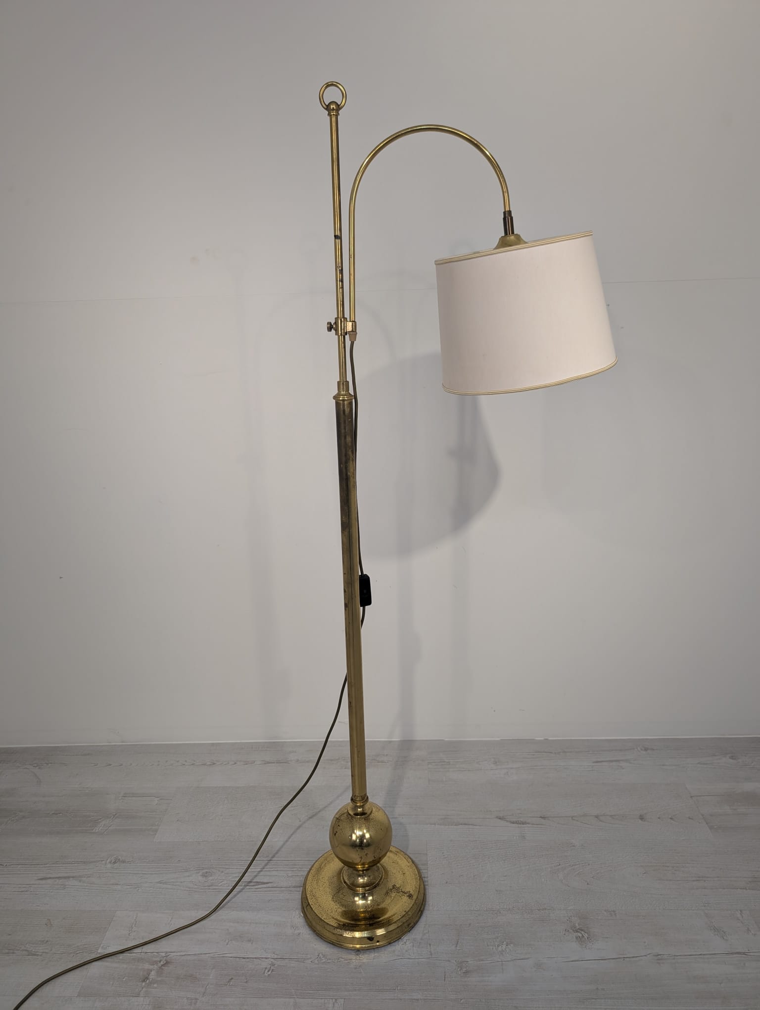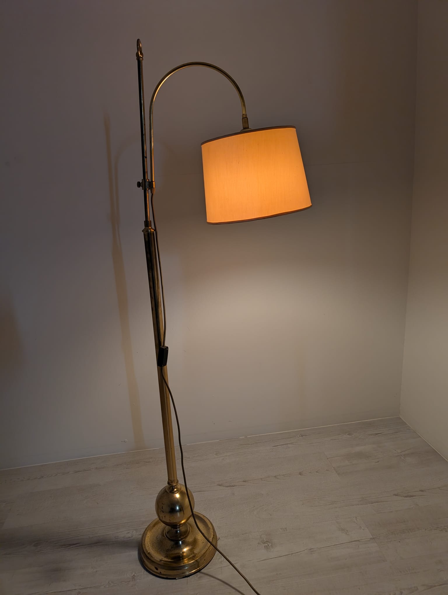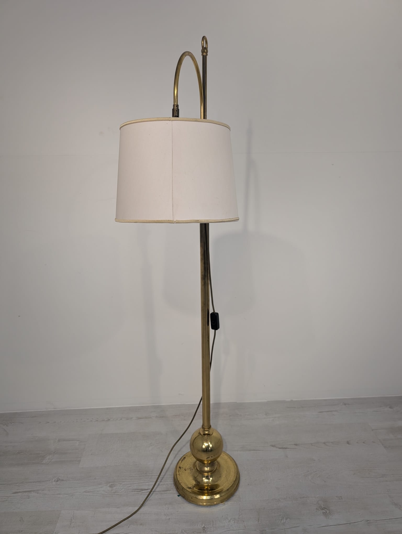 Stylowa lampa podłogowa z mosiądzu z lat 70. Posiada elegancki, klasyczny design.