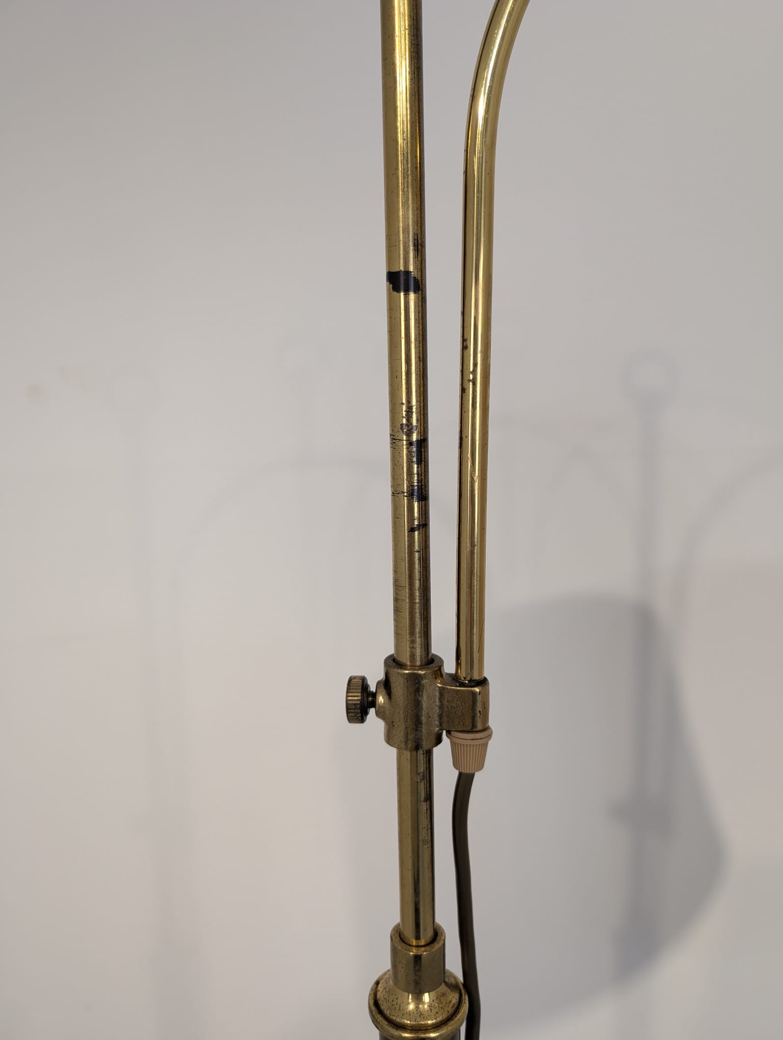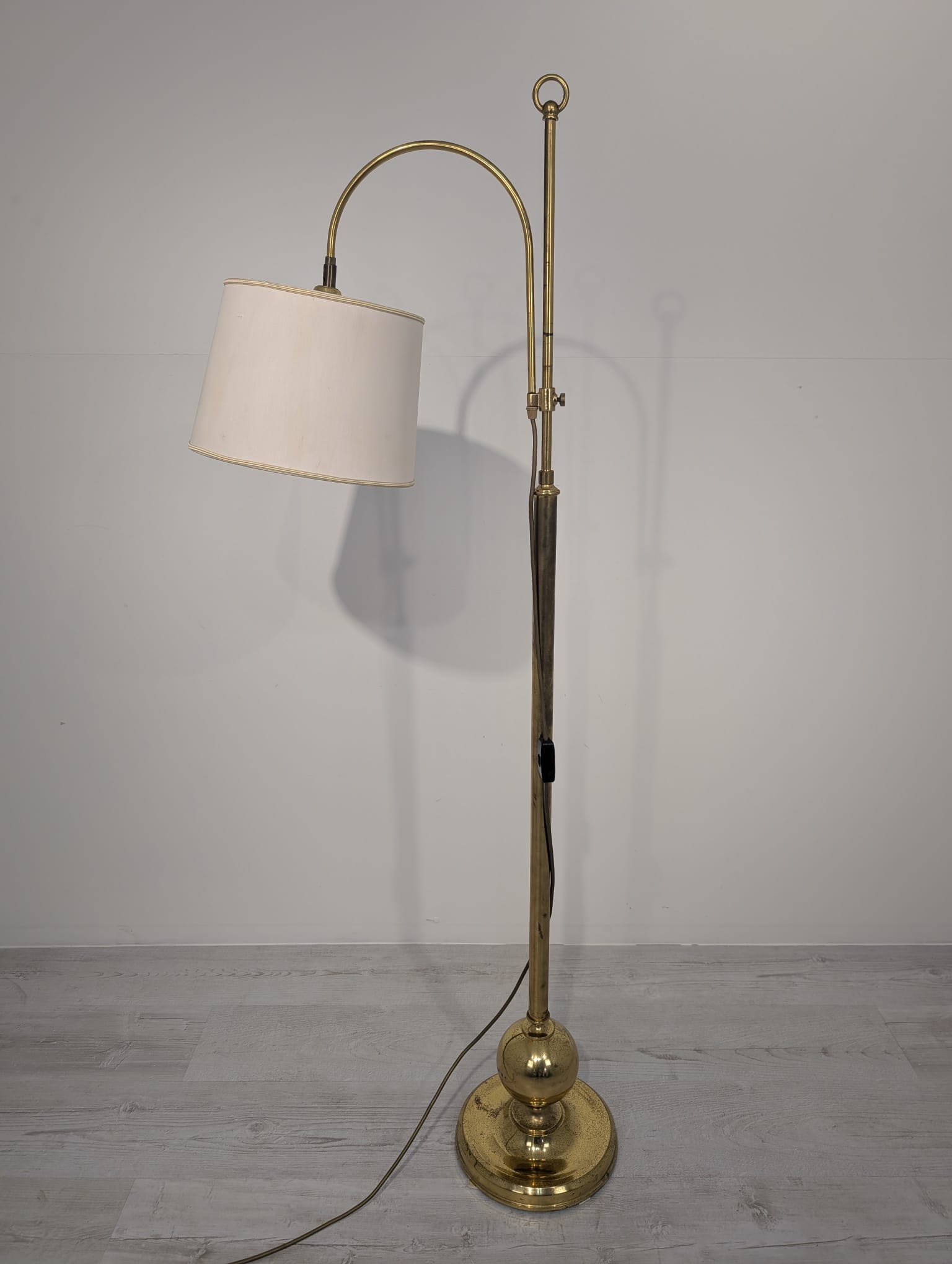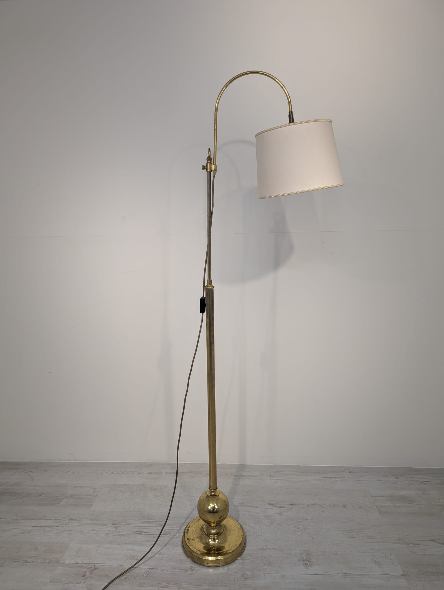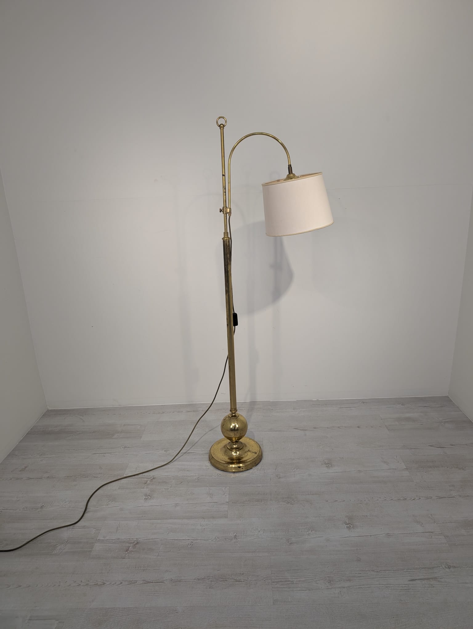 Stylowa lampa podłogowa z mosiądzu z lat 70. Posiada elegancki, klasyczny design.